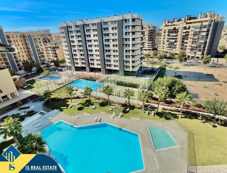 4-ių kambarių apartamentas su bendru baseinu, Ispanijoje, Alicante provincija, Alicante mieste, bendras plotas 138 m², 900 metrų iki jūros, 18 kilometrų iki Alicante miesto oro uosto. Netoli turto yra parduotuvės, restoranai, vaistinės, autobusų stotelės, degalinės, žalios zonos, kavinės