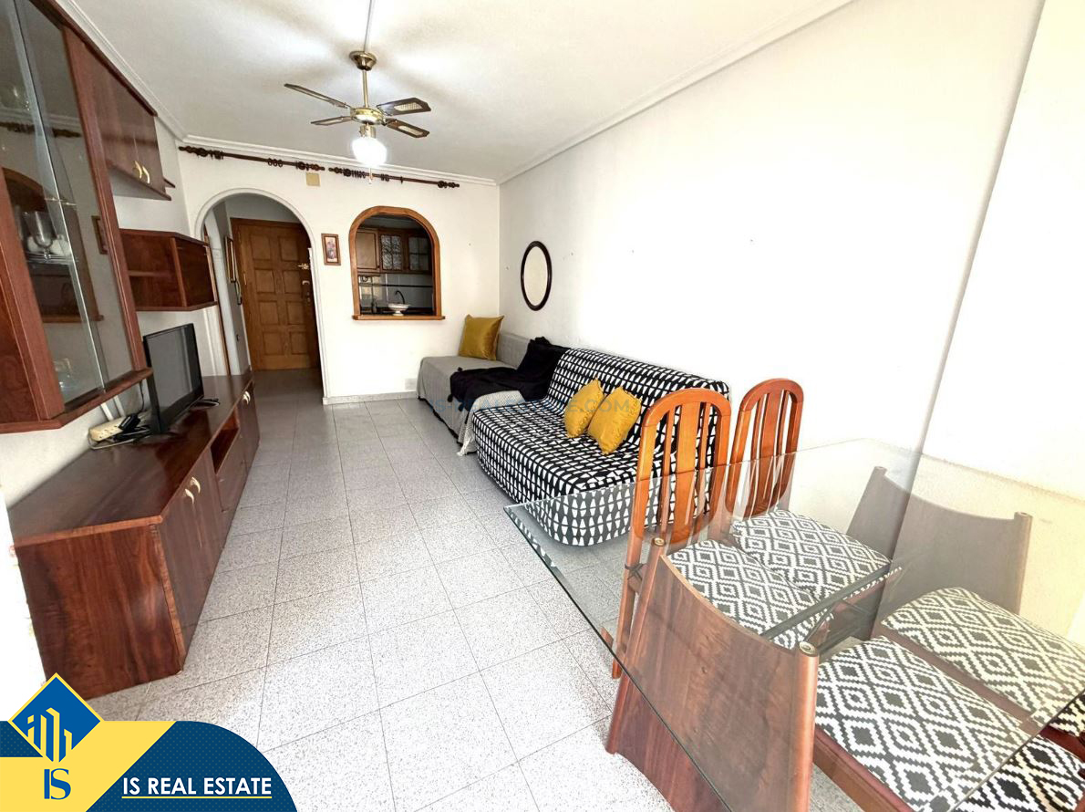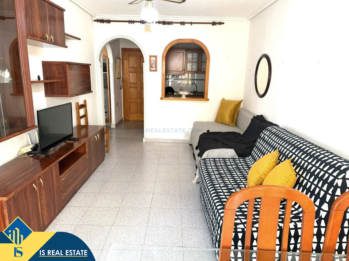 2-jų kambarių apartamentas su bendru baseinu, Ispanijoje, Alicante provincijoje, Torrevieja mieste, bendras plotas 66 m², 350 metrų iki jūros, 45 kilometrai iki Alicante oro uosto. Turtui priklauso bendras baseinas, terasa, liftas. Netoli turto yra parduotuvės, restoranai, vaistinės, autobusų stotelės, degalinės, žalios zonos, kavinės