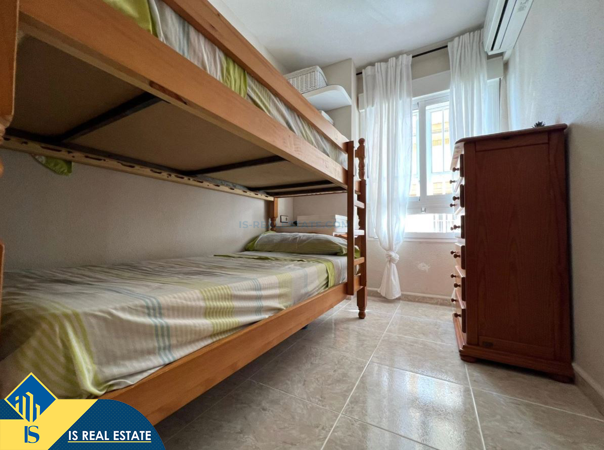 3-jų kambarių apartamentas netoli jūros, Ispanijoje, Alicante provincijoje, Torrevieja mieste, Playa de los Náufragos rajone, bendras plotas 55 m², 50 metrų iki jūros, 45 kilometrai iki Alicante oro uosto. Turtui priklauso liftas. Netoli turto yra parduotuvės, restoranai, vaistinės, autobusų stotelės, degalinės, žalios zonos, kavinės