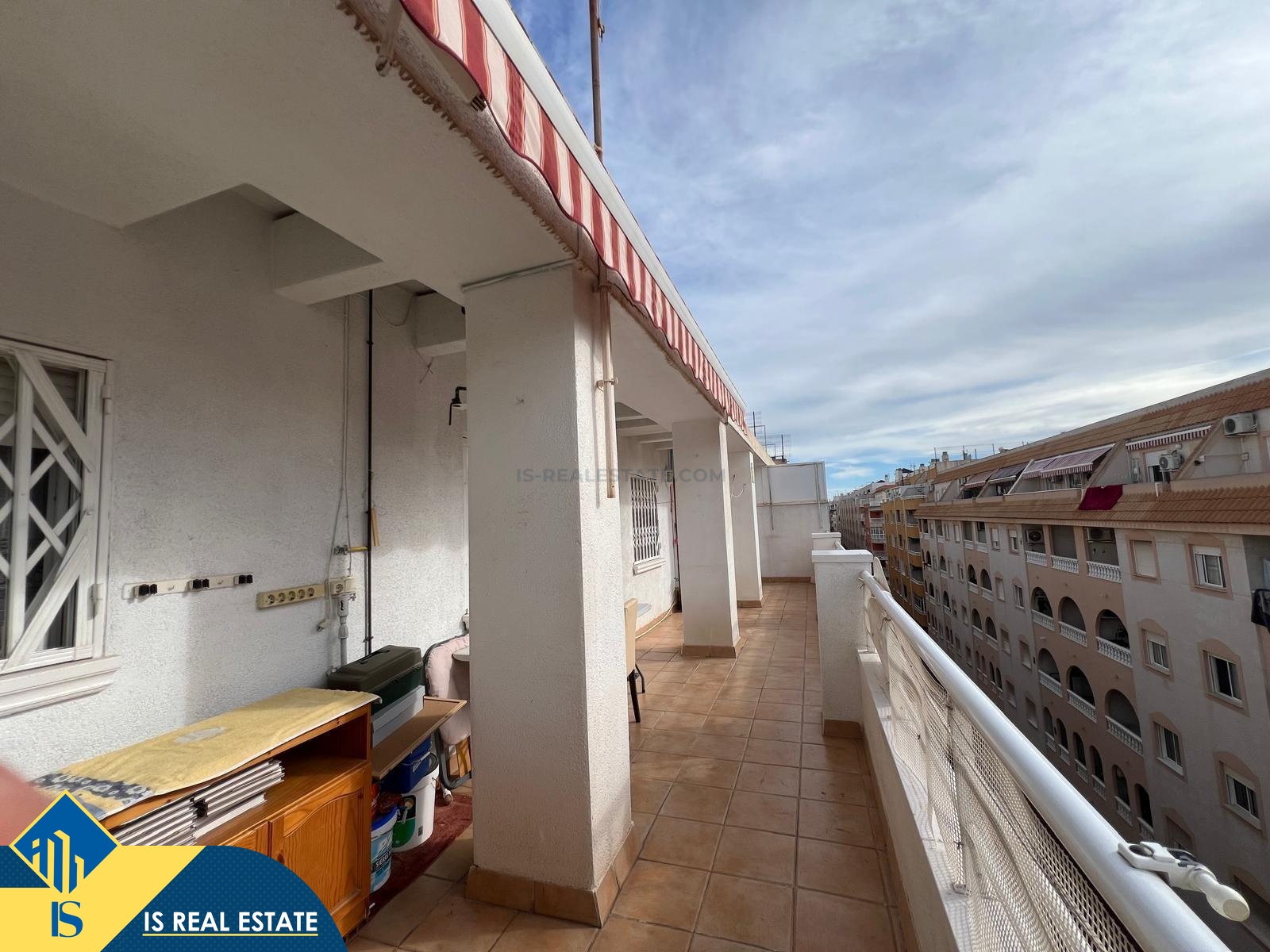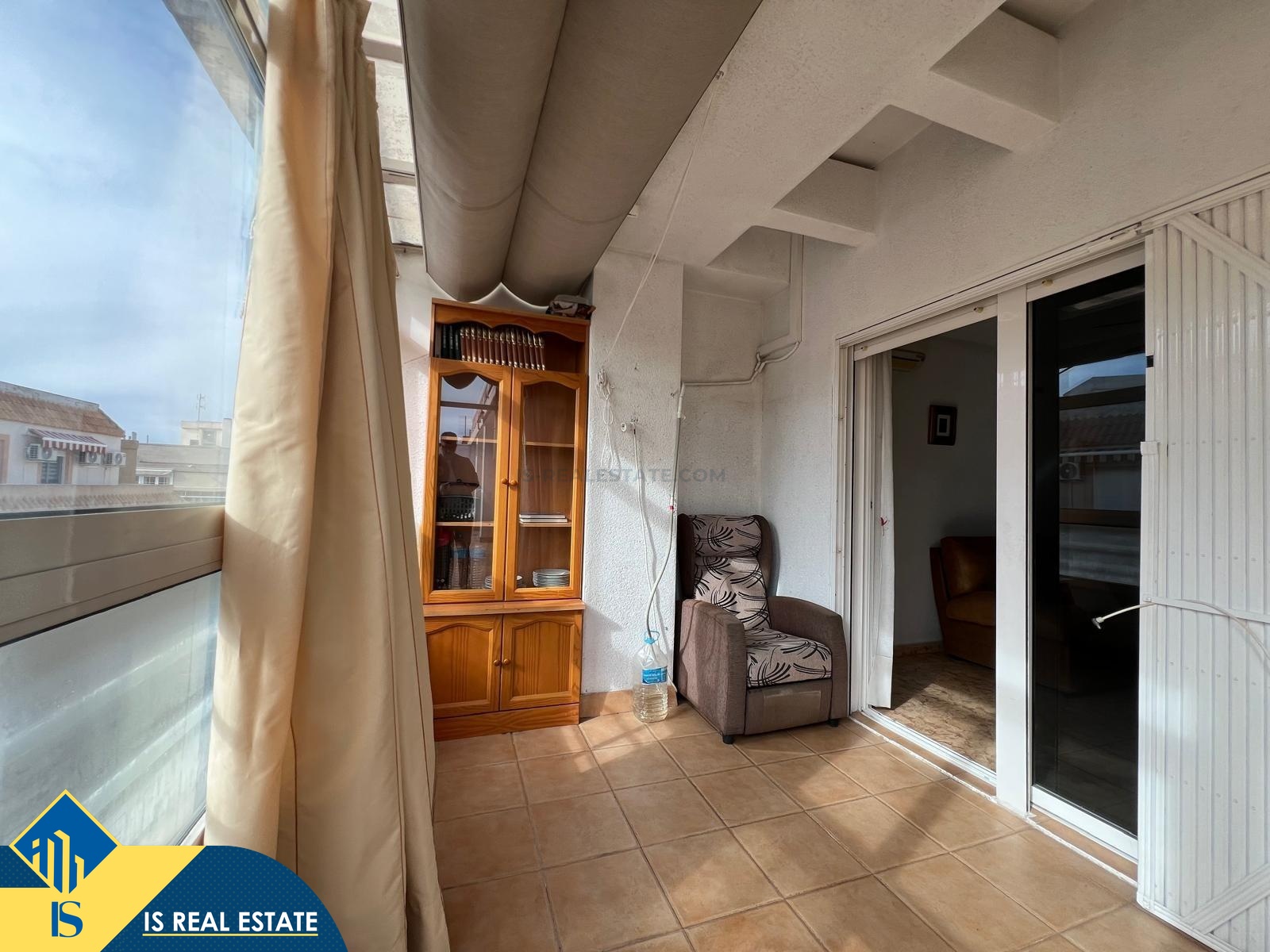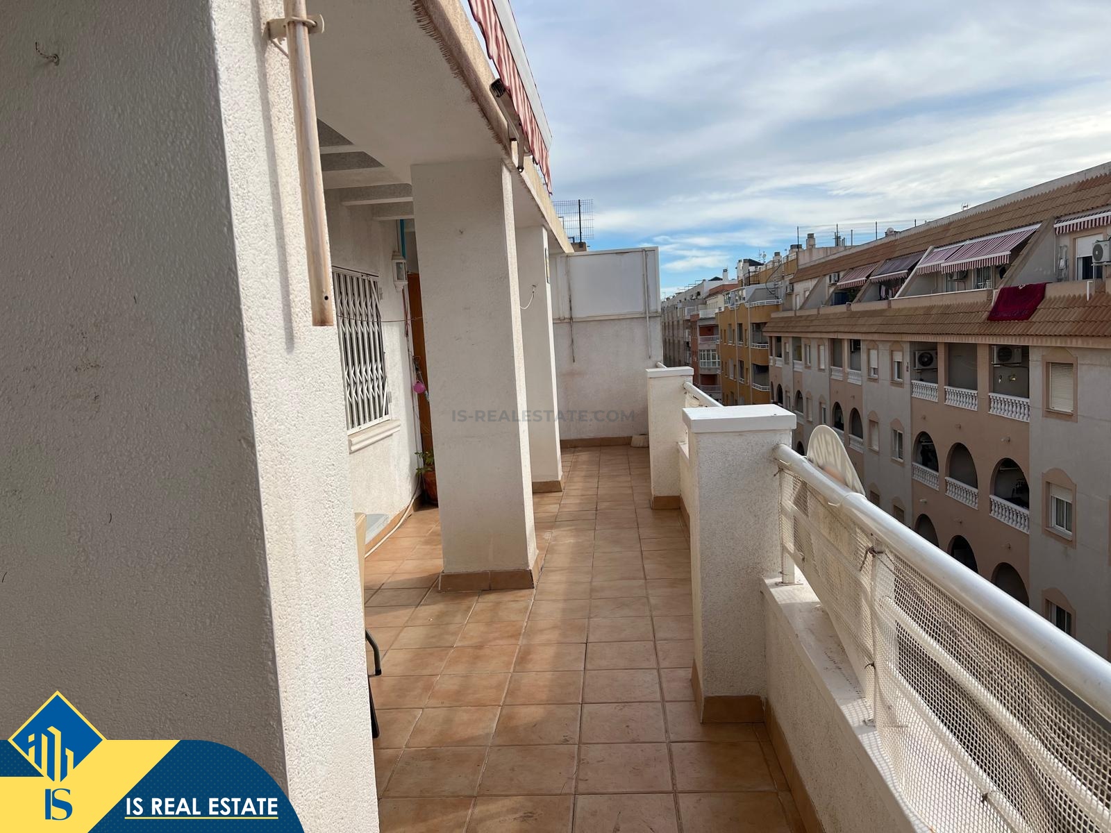 4-ių kambarių penthouse apartamentas su bendru baseinu, Ispanijoje, Alicante provincijoje, Torrevieja mieste, Playa del Cura rajone, bendras plotas 110 m², 700 metrų iki jūros, 45 kilometrai iki Alicante miesto oro uosto. Turtui priklauso bendras baseinas, terasa, liftas. Netoli turto yra parduotuvės, restoranai, autobusų stotelės, degalinės, žalios zonos, kavinės, vaistinės