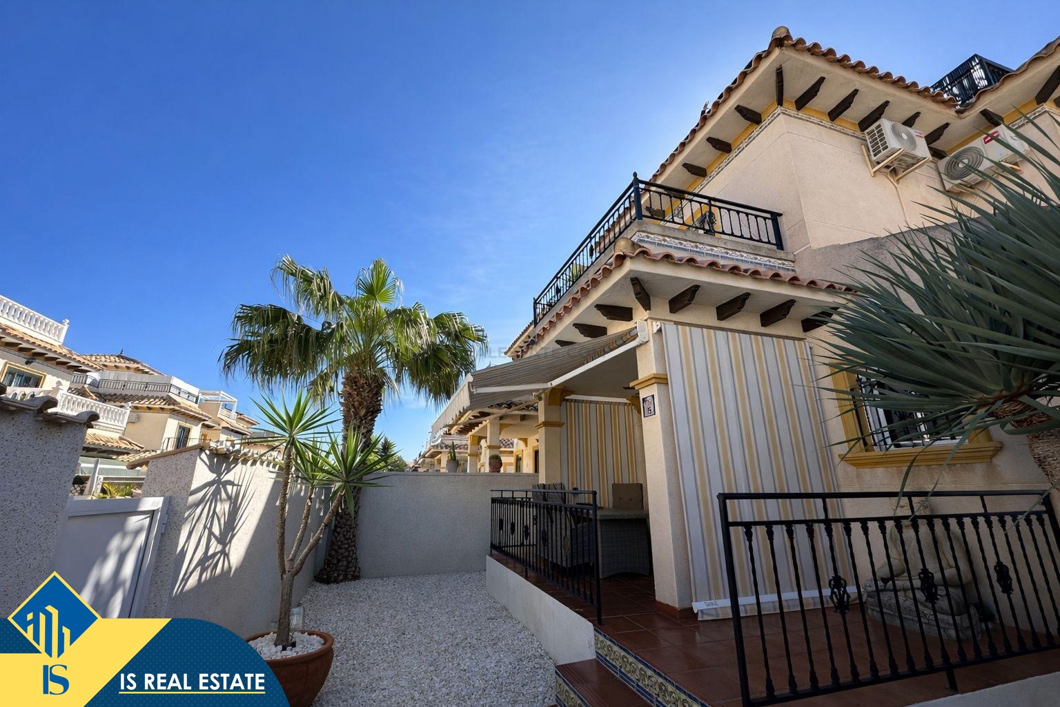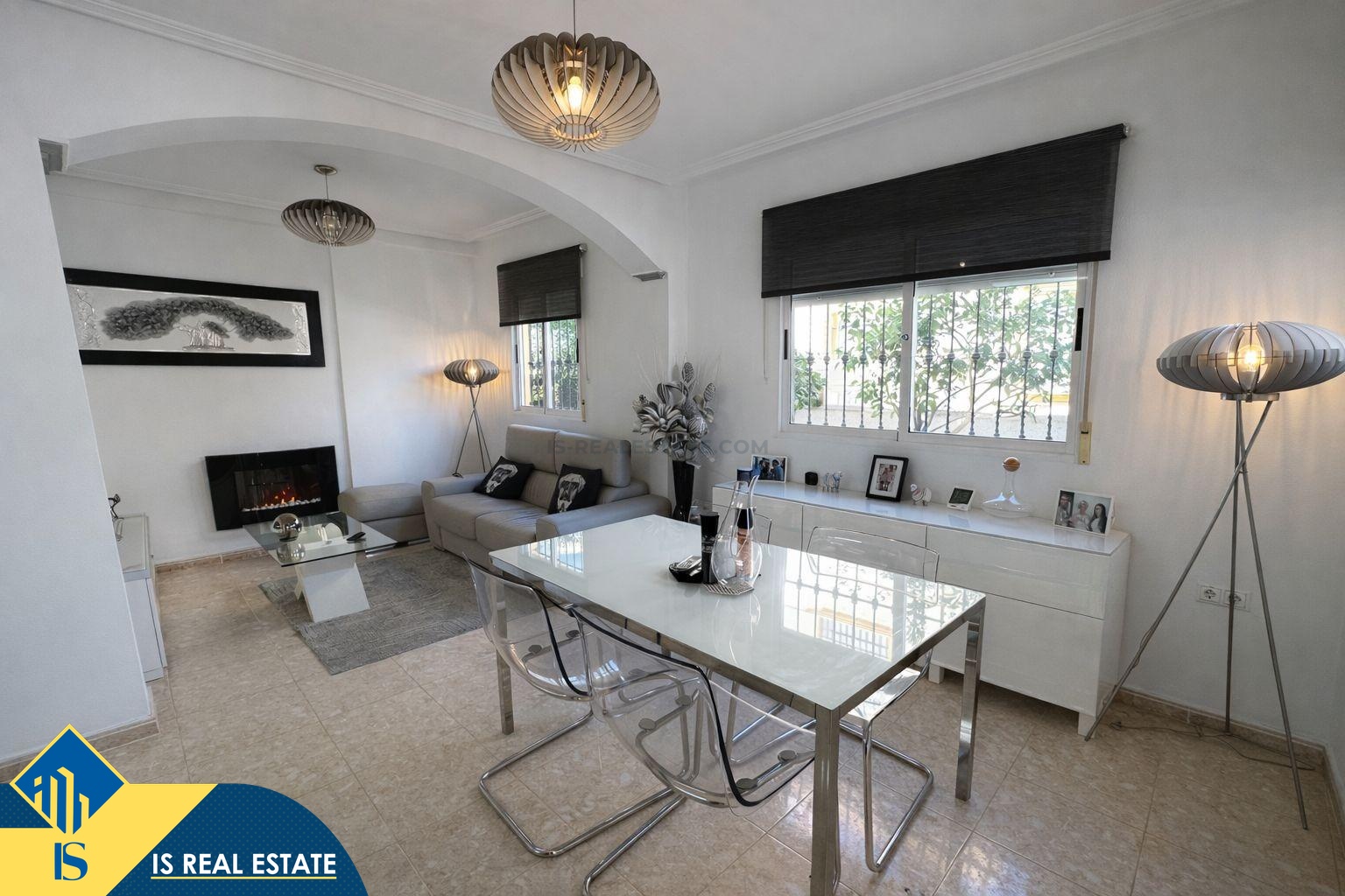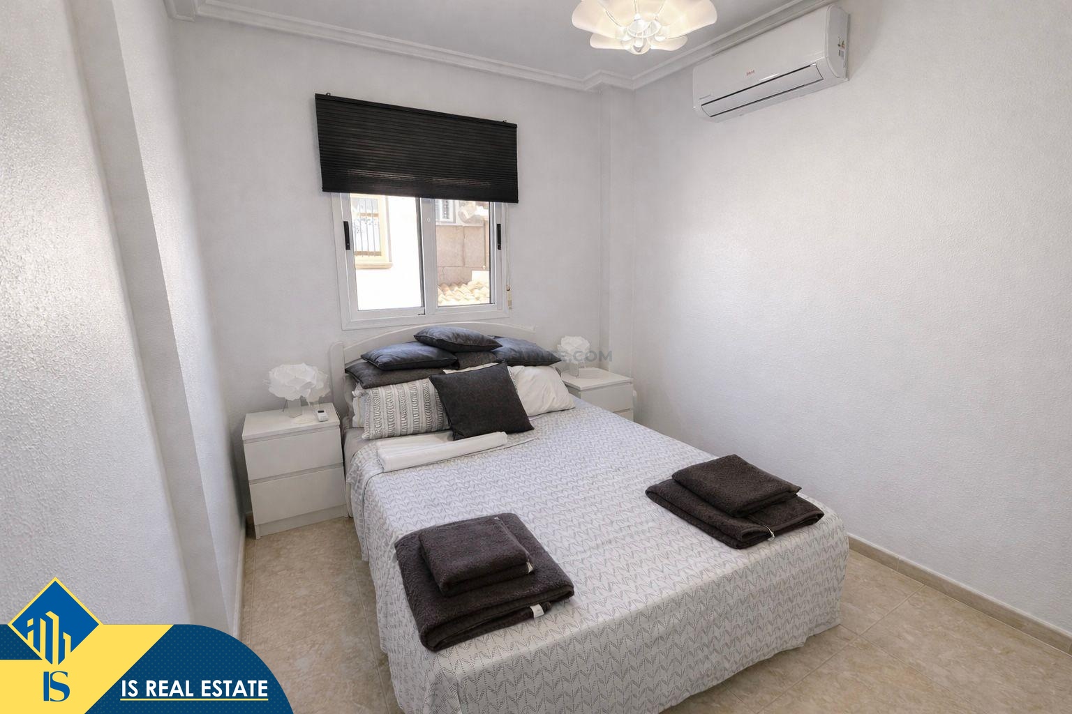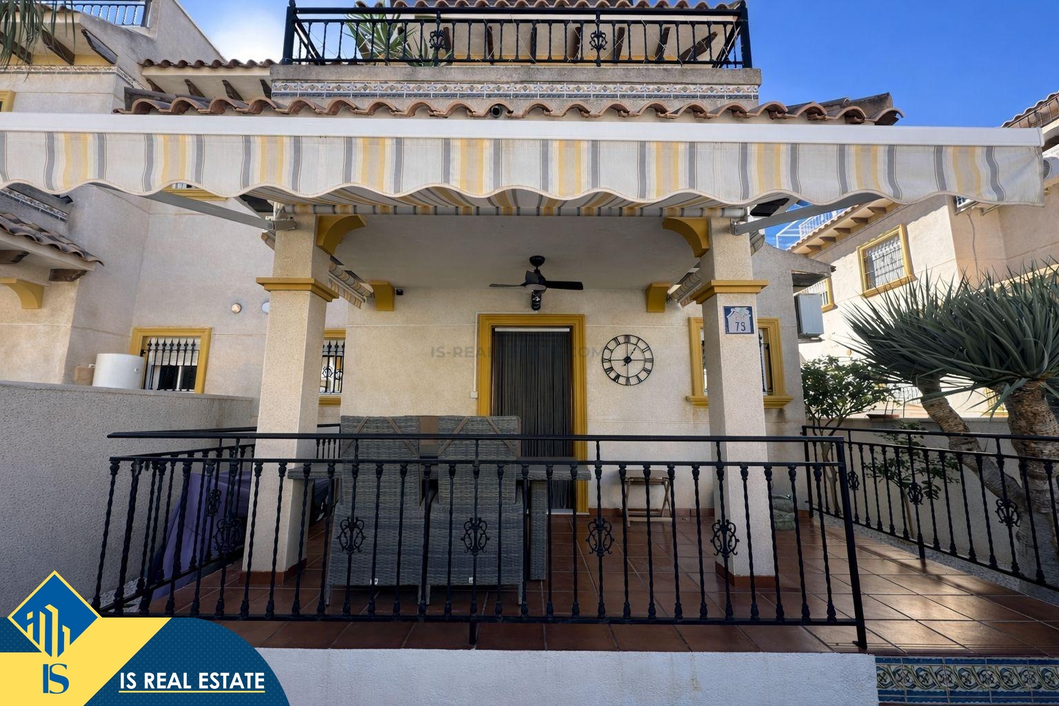 3-jų kambarių namas su terasa, Ispanijoje, Alicante provincijoje, Torrevieja mieste, Torreta rajone, bendras plotas 65 m², 1.5 kilometrai iki jūros, 45 kilometrai iki Alicante oro uosto. Turtui priklauso terasa. Netoli turto yra parduotuvės, restoranai, autobusų stotelės, vaikų zonos, degalinės, žalios zonos, kavinės, vaistinės