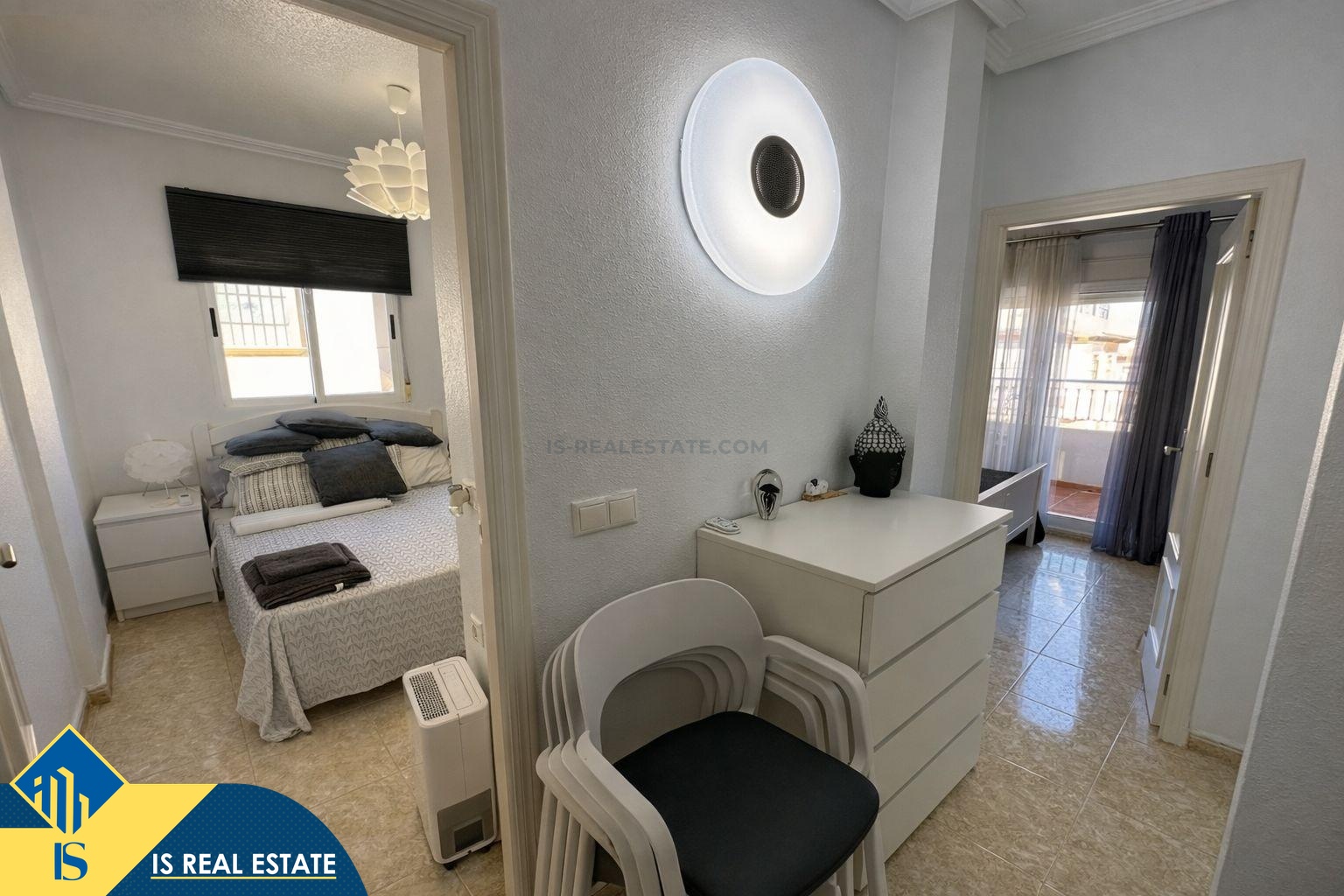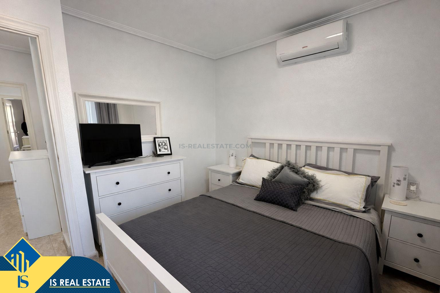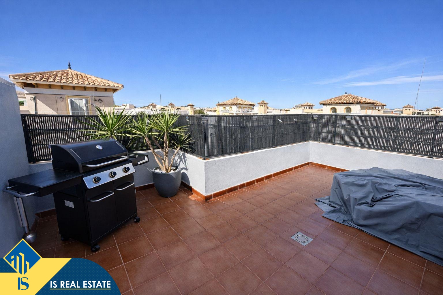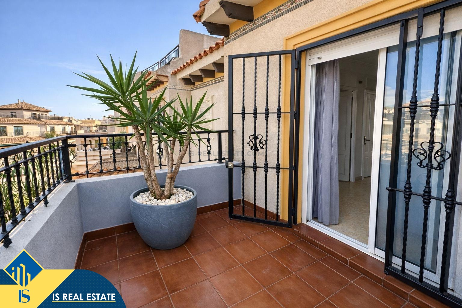3-jų kambarių namas su terasa, Ispanijoje, Alicante provincijoje, Torrevieja mieste, Torreta rajone, bendras plotas 65 m², 1.5 kilometrai iki jūros, 45 kilometrai iki Alicante oro uosto. Turtui priklauso terasa. Netoli turto yra parduotuvės, restoranai, autobusų stotelės, vaikų zonos, degalinės, žalios zonos, kavinės, vaistinės