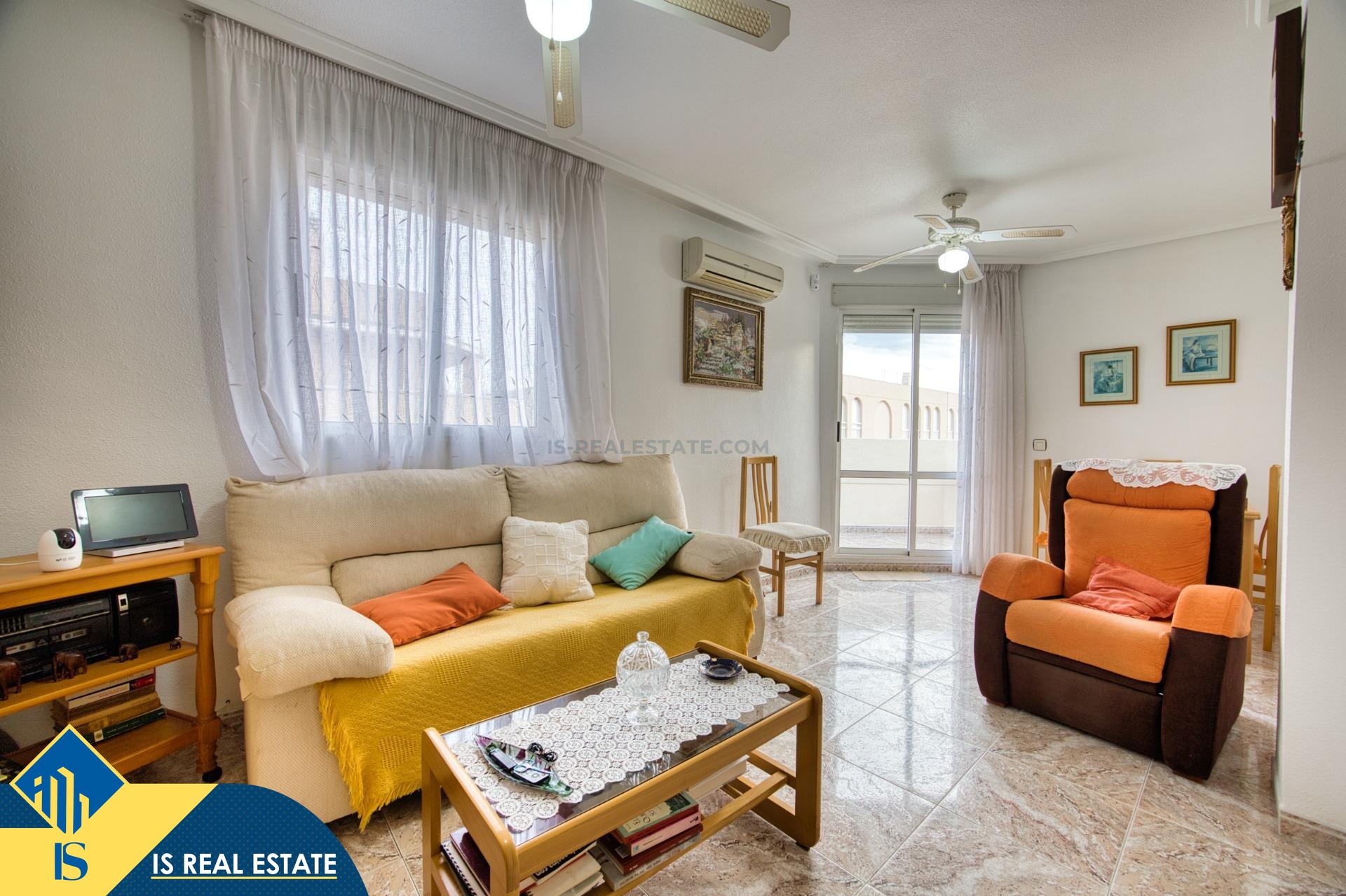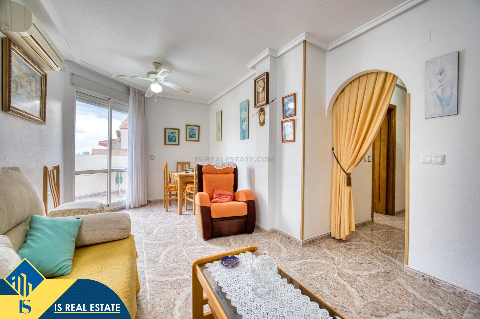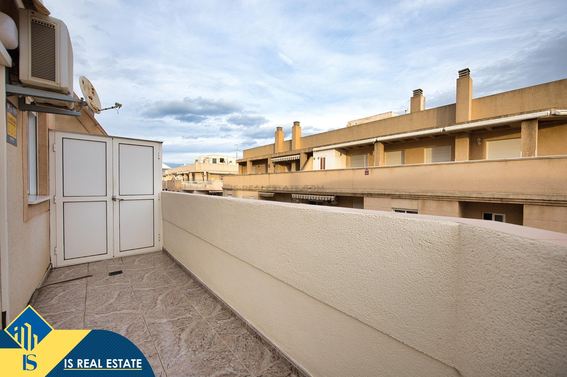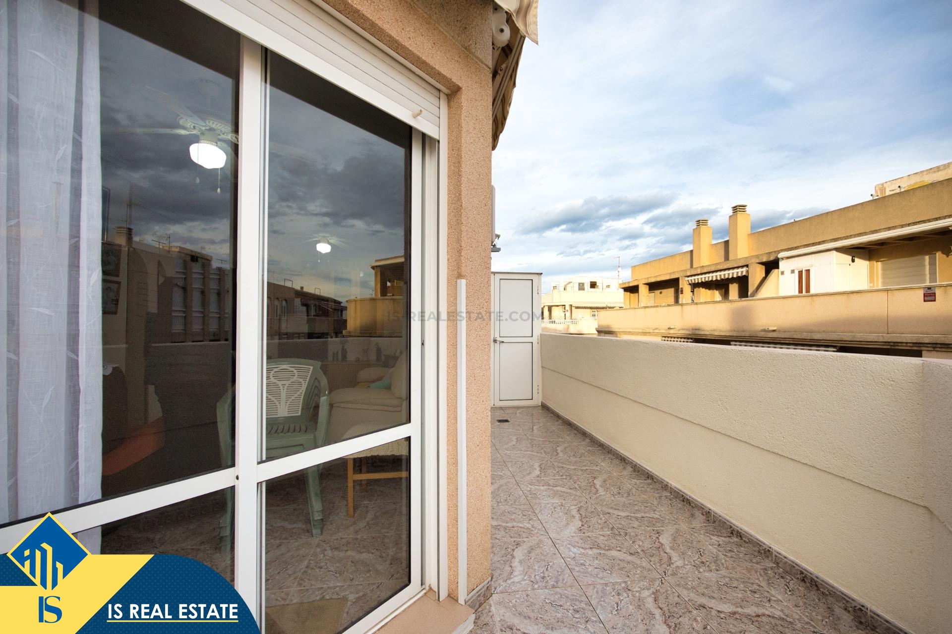 4-ių kambarių penthouse apartamentas su terasa, Ispanijoje, Alicante provincija, Torrevieja mieste, Playa del Acequión rajone, bendras plotas 73 m², 200 metrų iki jūros, 45 kilometrai iki Alicante miesto oro uosto. Netoli turto yra parduotuvės, restoranai, vaistinės, autobusų stotelės, degalinės, žalios zonos, kavinės