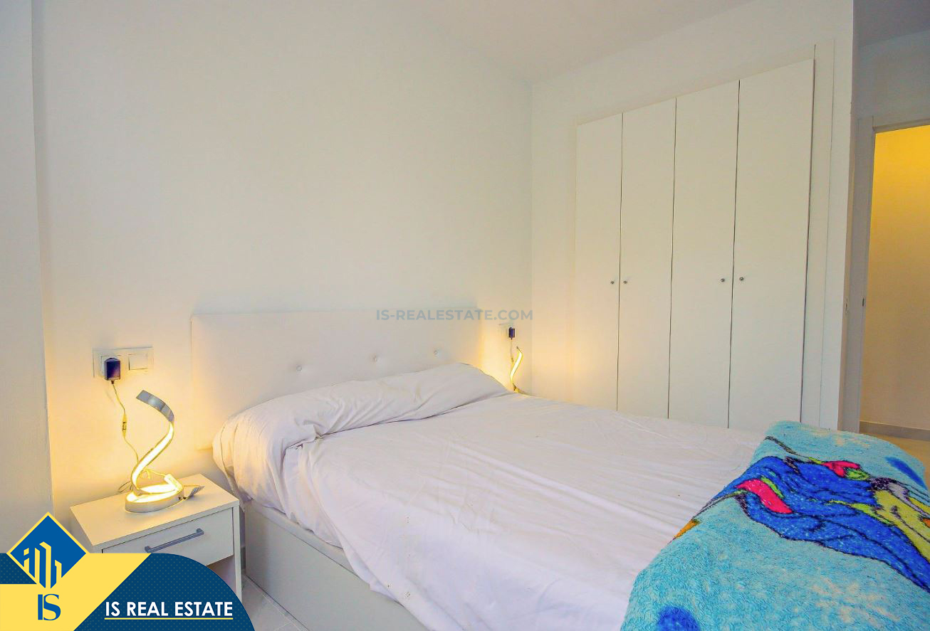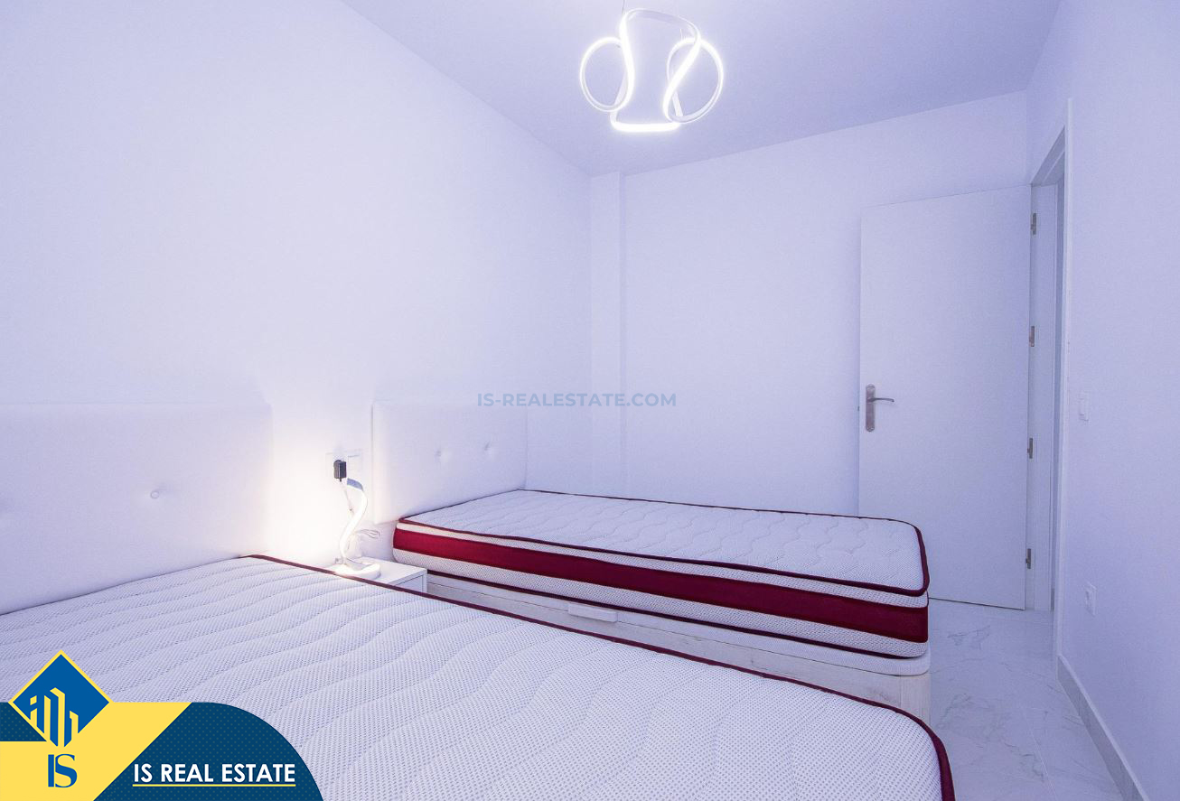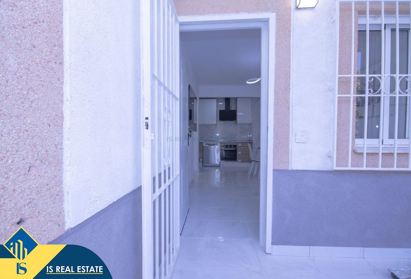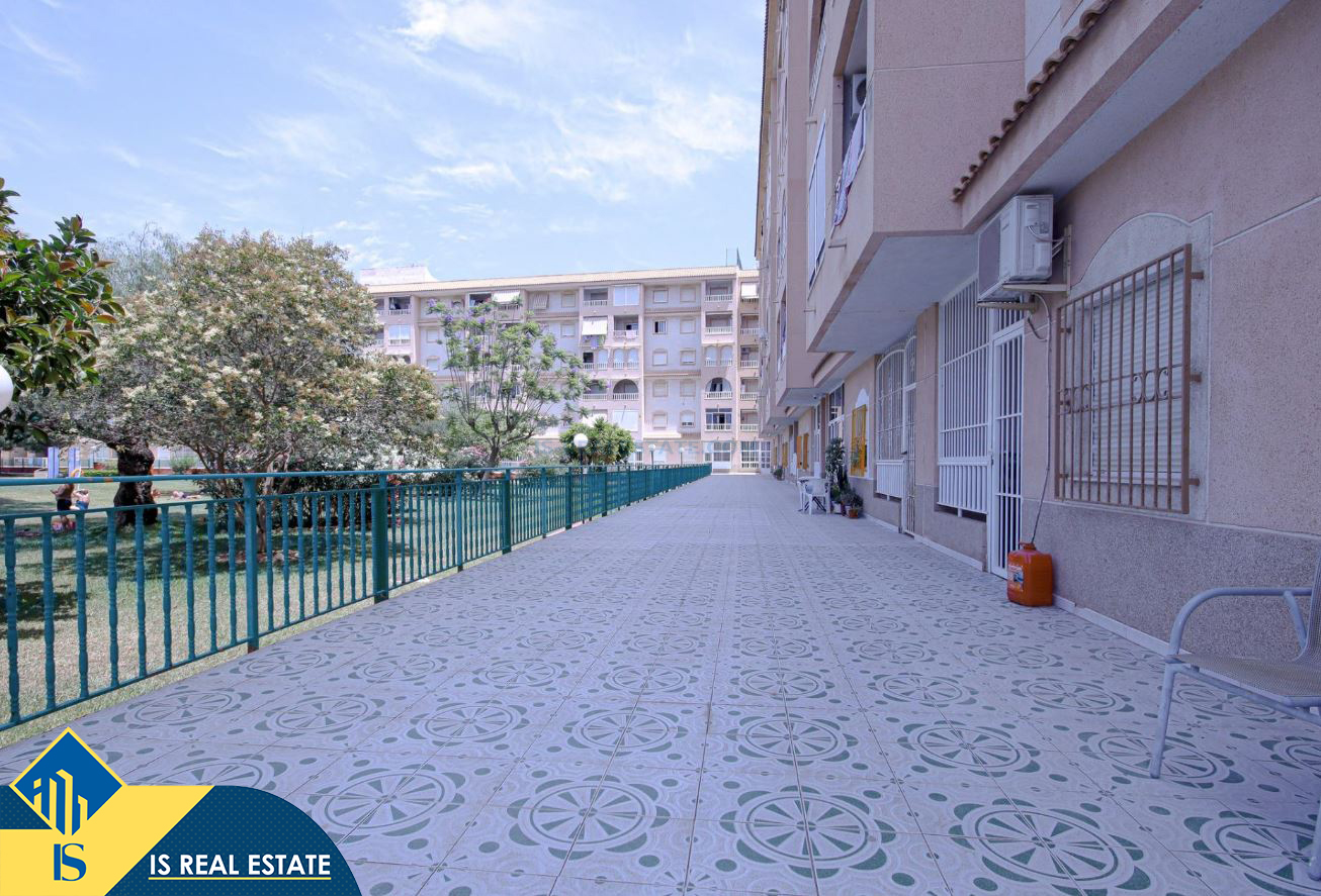 3-jų kambarių renovuotas apartamentas su bendru baseinu, Ispanijoje, Alicante provincijoje, Torrevieja mieste, bendras plotas 52 m², 750 metrų iki jūros, 45 kilometrai iki Alicante oro uosto. Turtui priklauso bendras baseinas, terasa, liftas. Netoli turto yra parduotuvės, restoranai, vaistinės, autobusų stotelės, degalinės, žalios zonos, kavinės