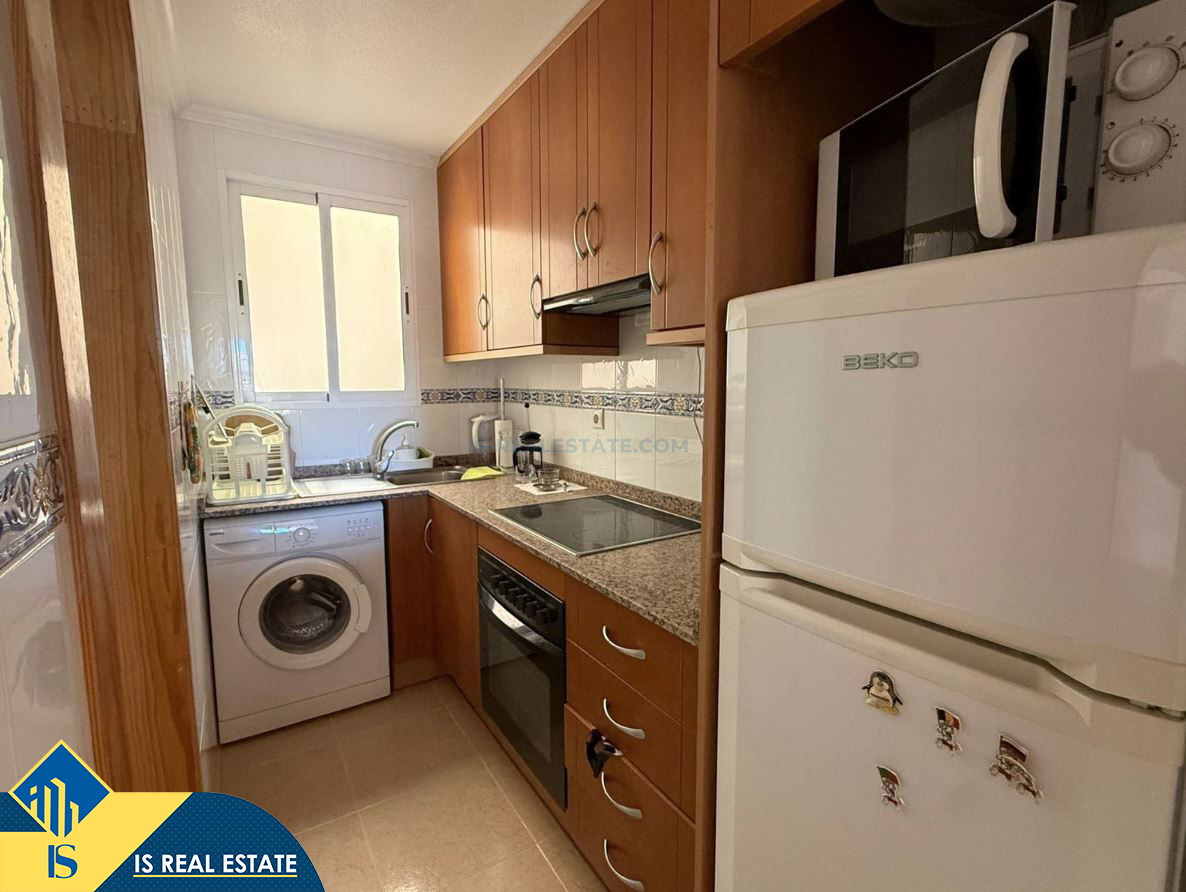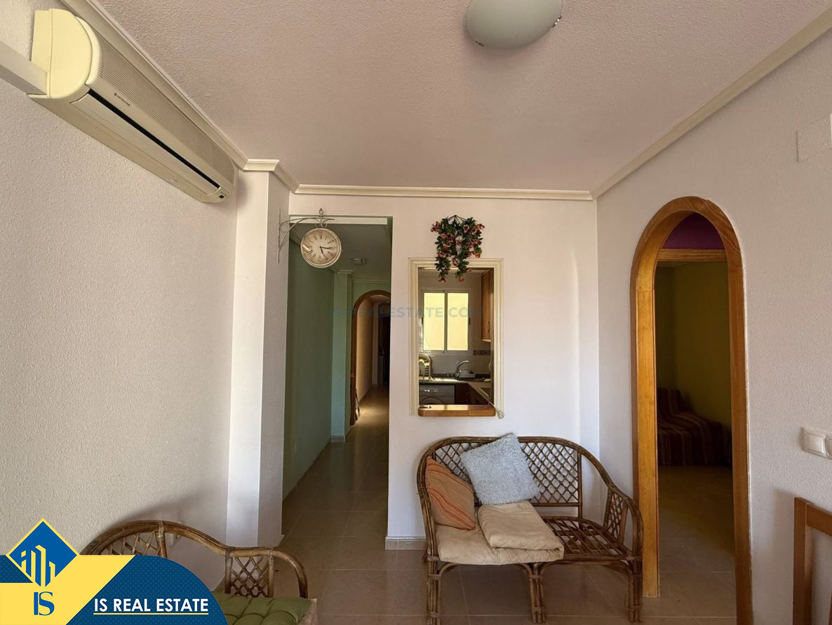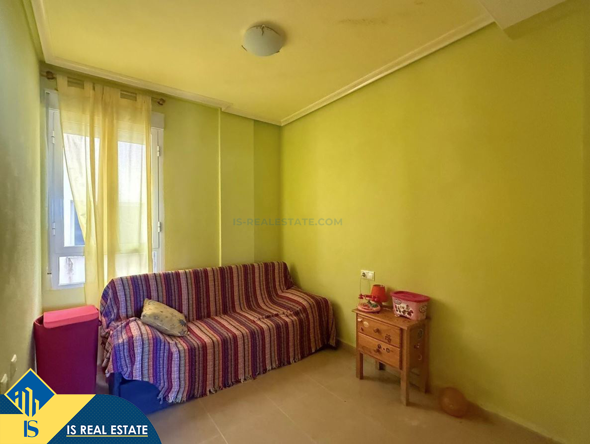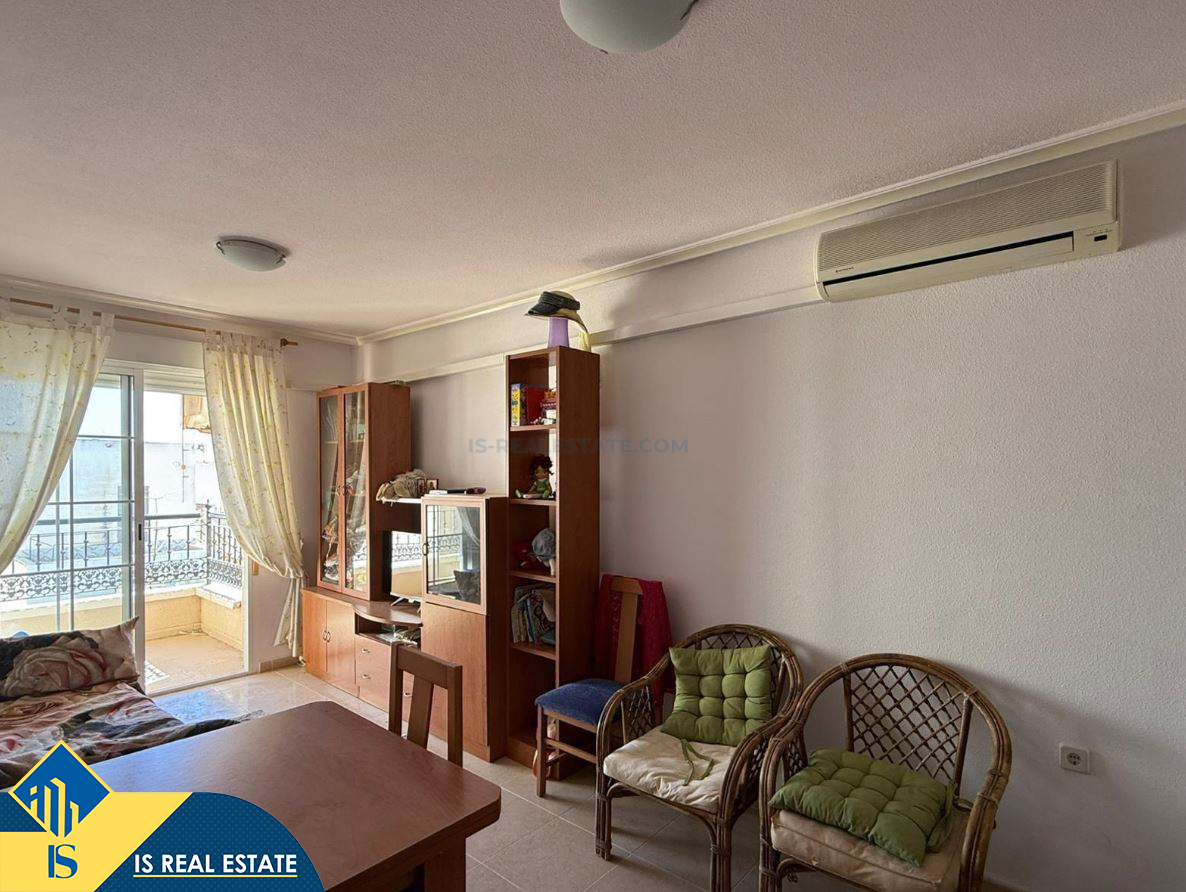 3-jų kambarių apartamentas su terasa, Ispanijoje, Alicante provincijoje, Torrevieja mieste, bendras plotas 75 m², 750 metrų iki jūros, 45 kilometrai iki Alicante oro uosto. Turtui priklauso terasa, liftas. Netoli turto yra parduotuvės, restoranai, vaistinės, autobusų stotelės, degalinės, žalios zonos, kavinės