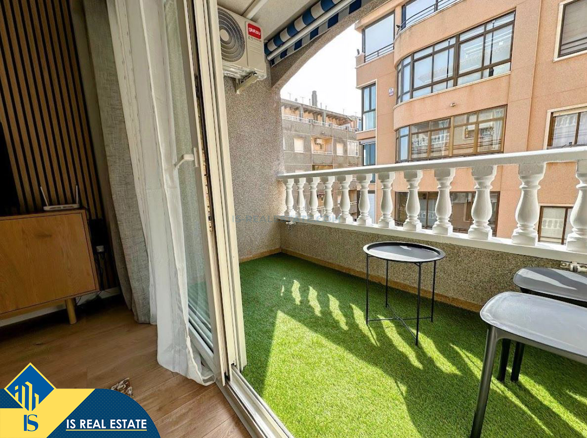 2-jų kambarių renovuotas apartamentas su terasa, Ispanijoje, Alicante provincijoje, Torrevieja mieste, Playa del Cura rajone, bendras plotas 41 m², 150 metrų iki jūros, 45 kilometrai iki Alicante oro uosto. Turtui priklauso terasa, liftas. Netoli turto yra parduotuvės, restoranai, vaistinės, autobusų stotelės, degalinės, žalios zonos, kavinės, Habaneras alėja