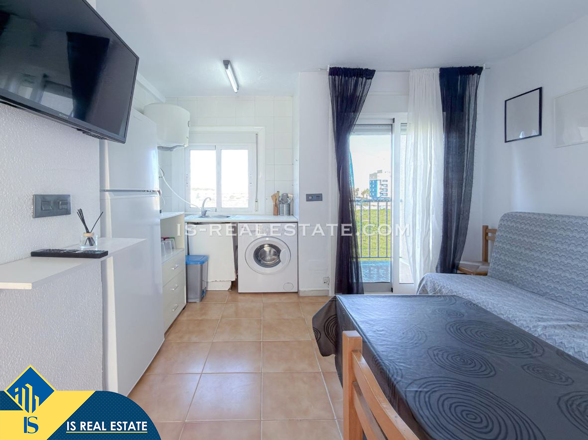 2-jų kambarių apartamentas su terasa, Ispanijoje, Alicante provincijoje, Torrevieja mieste, La Mata rajone, bendras plotas 37 m², 280 metrų iki jūros, 38 kilometrai iki Alicante oro uosto. Turtui priklauso terasa, liftas. Netoli turto yra parduotuvės, restoranai, autobusų stotelės, degalinės, žalios zonos, kavinės, vaistinės