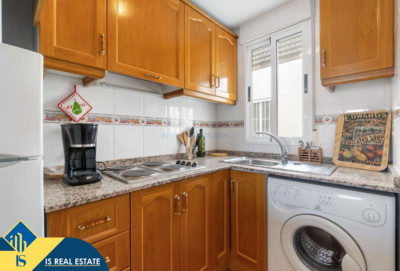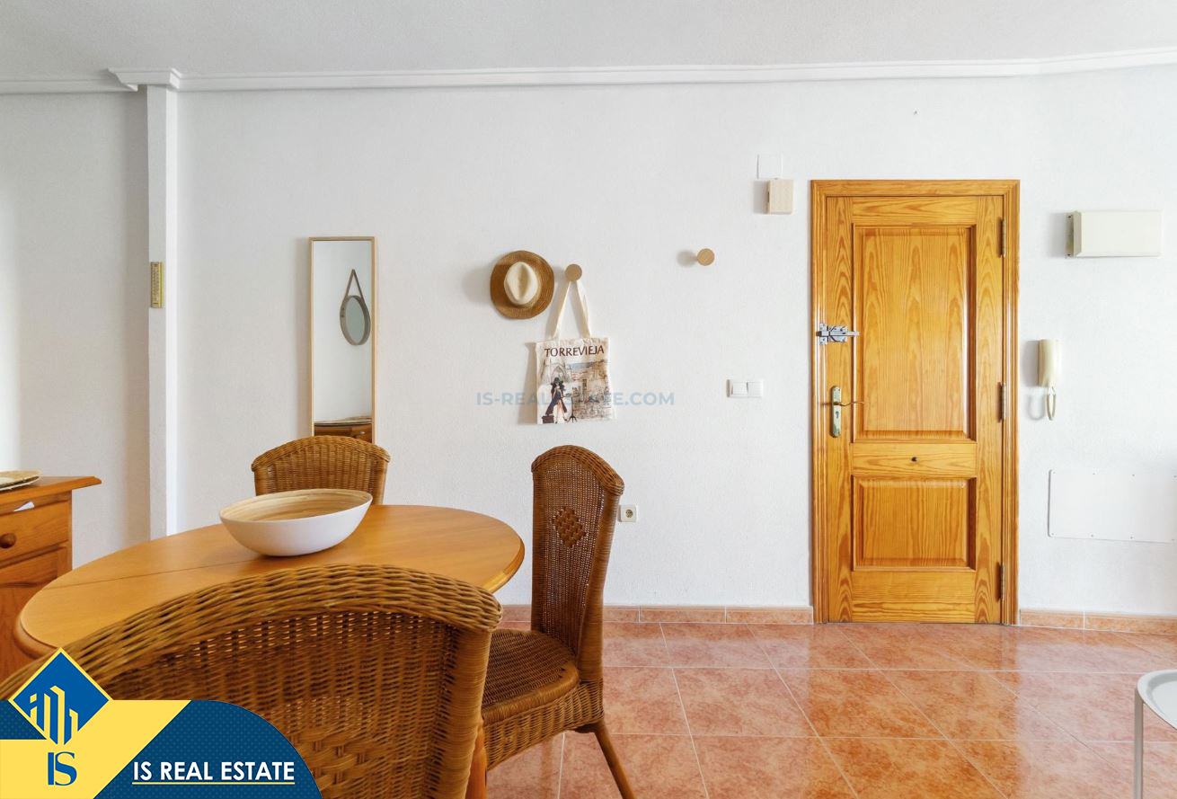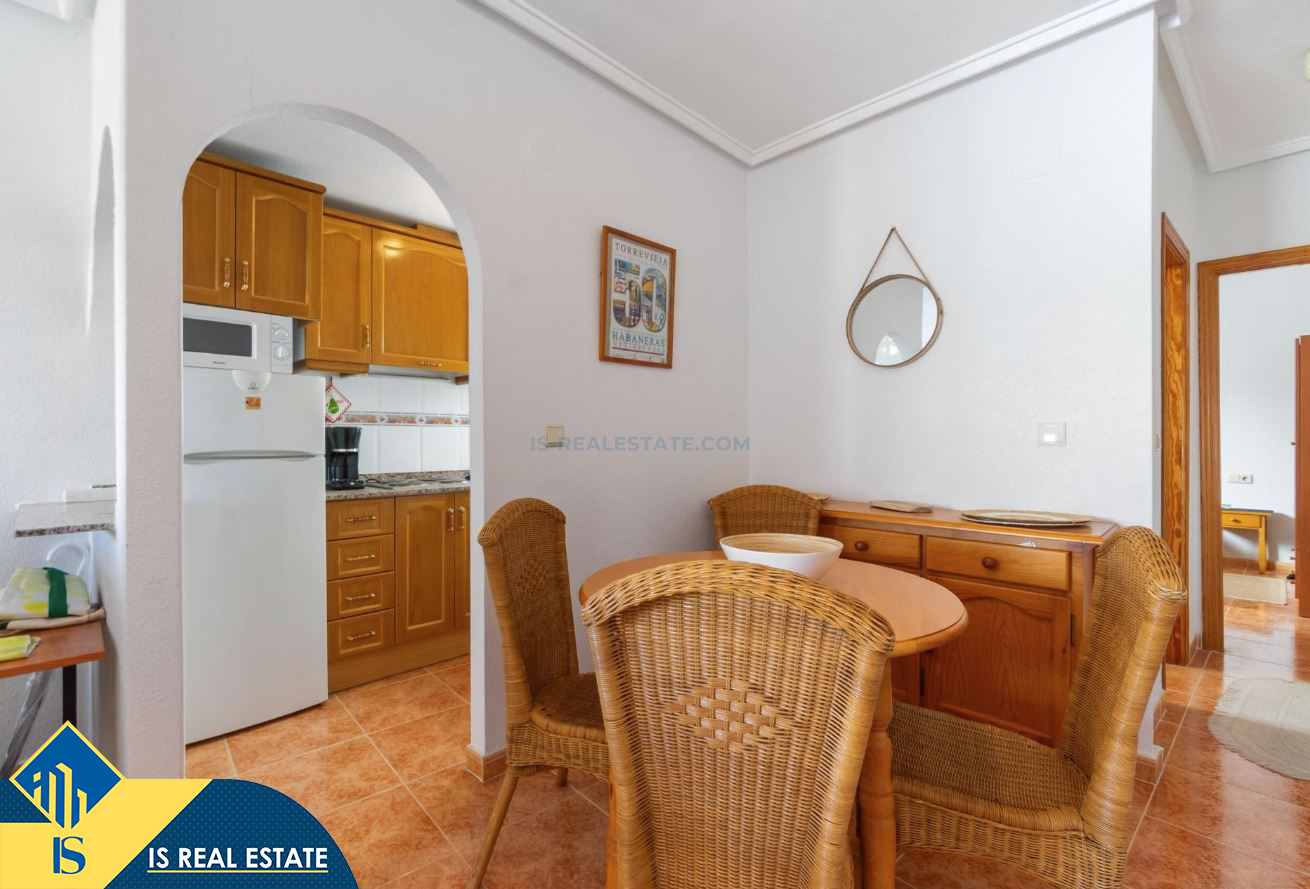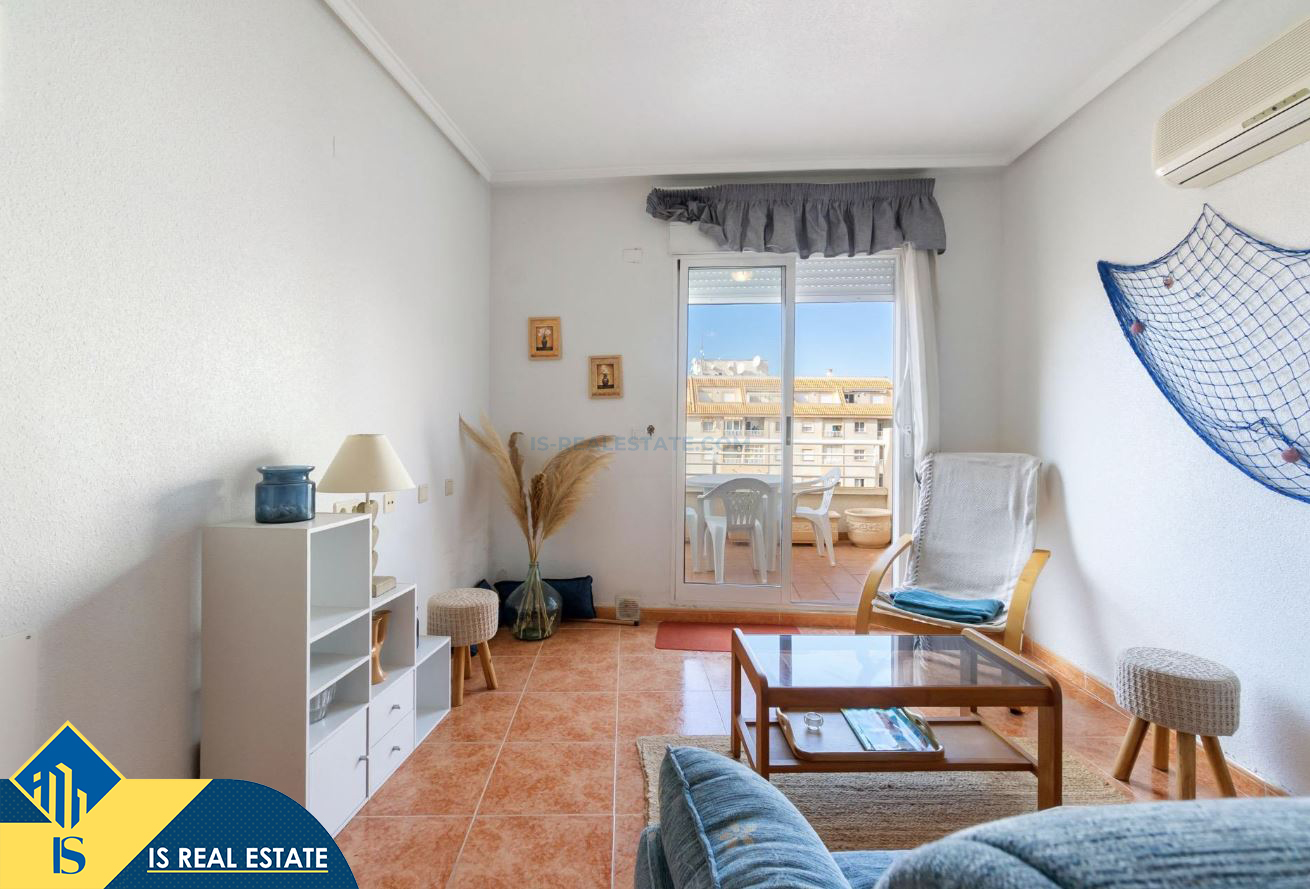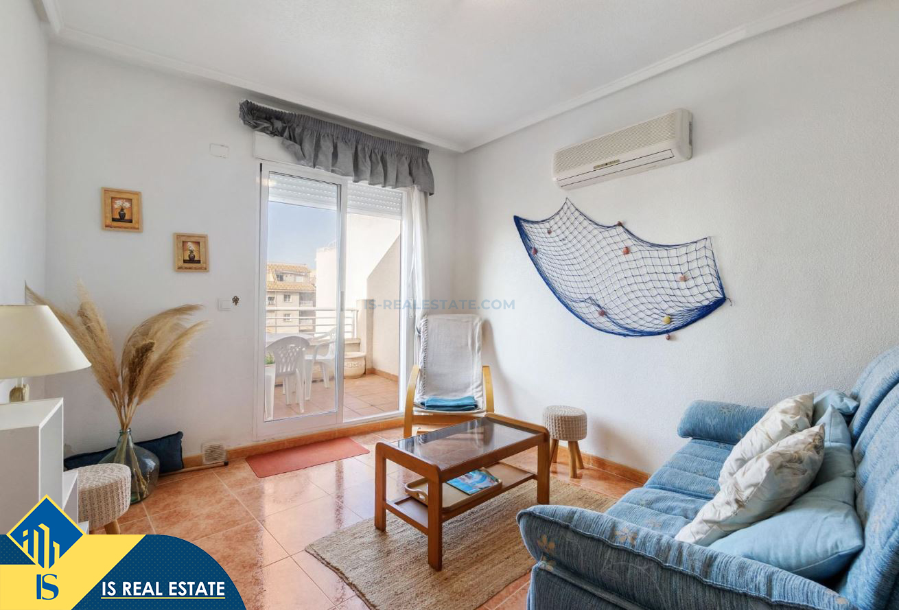 2-jų kambarių penthouse apartamentas su terasa, Ispanijoje, Alicante provincijoje, Torrevieja mieste, bendras plotas 49 m², 1.4 kilometro iki jūros, 45 kilometrai iki Alicante oro uosto. Turtui priklauso terasa, liftas. Netoli turto yra parduotuvės, restoranai, vaistinės, autobusų stotelės, degalinės, žalios zonos, kavinės