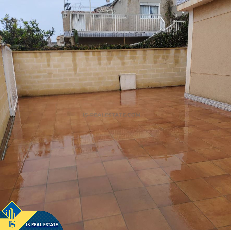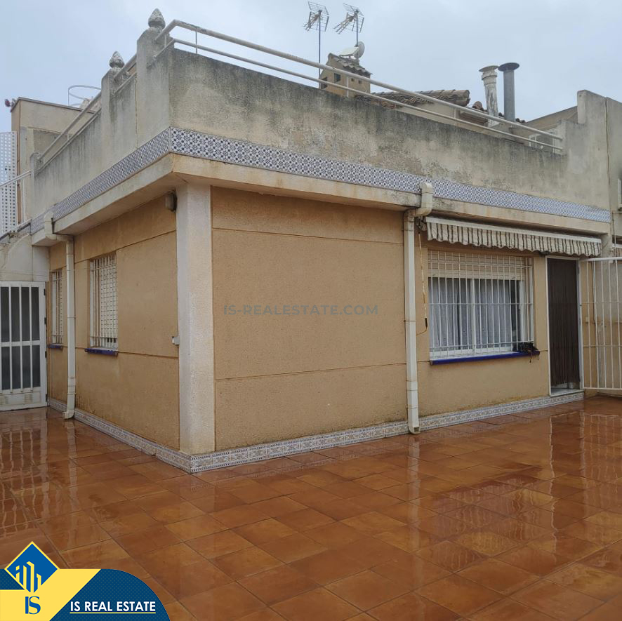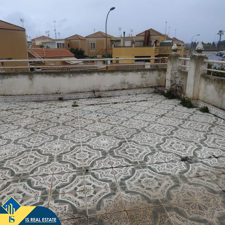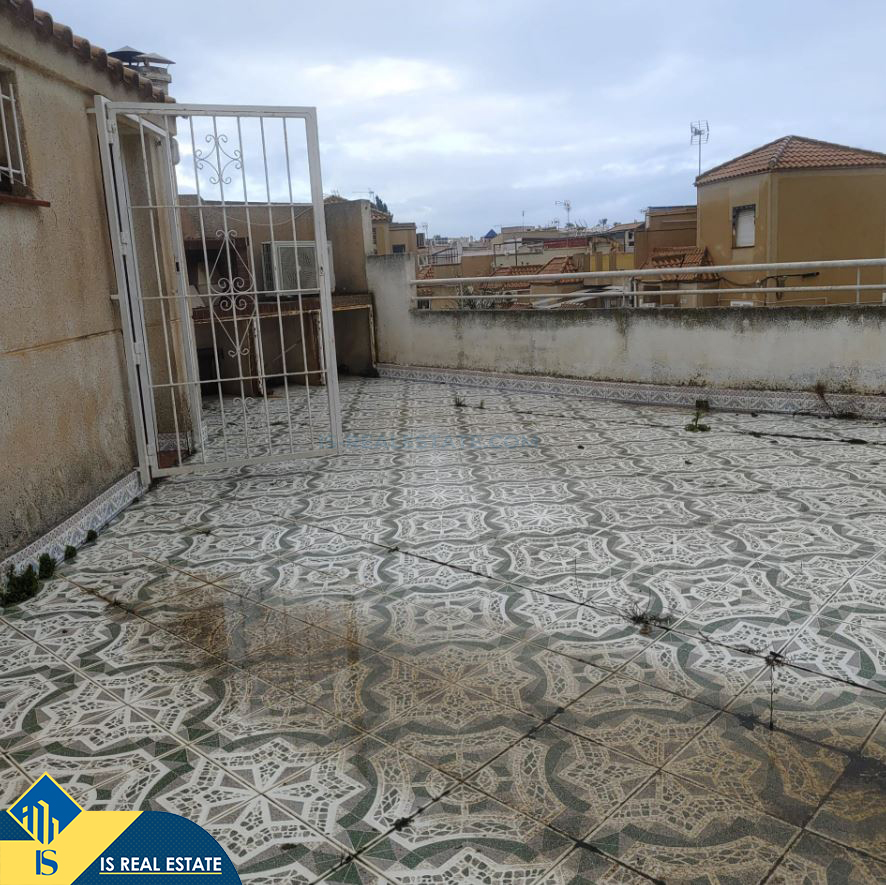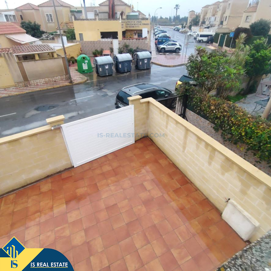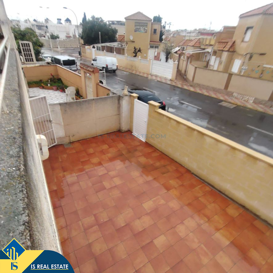 4-ių kambarių namas su terasa, Ispanijoje, Alicante provincijoje, Torrevieja mieste, bendras plotas 76 m², 2.5 kilometro iki jūros, 45 kilometrai iki Alicante oro uosto. Turtui priklauso terasa, privatus kiemas. Netoli turto yra parduotuvės, restoranai, autobusų stotelės, vaikų zonos, degalinės, žalios zonos, kavinės, vaistinės