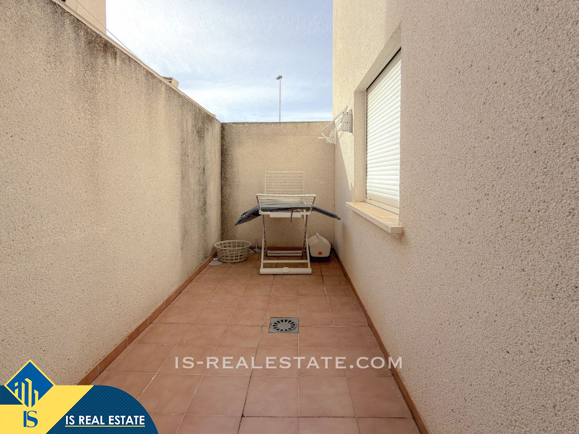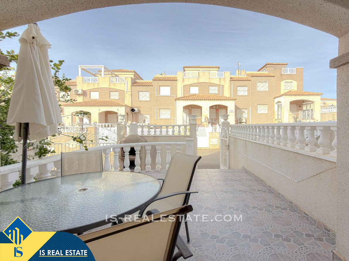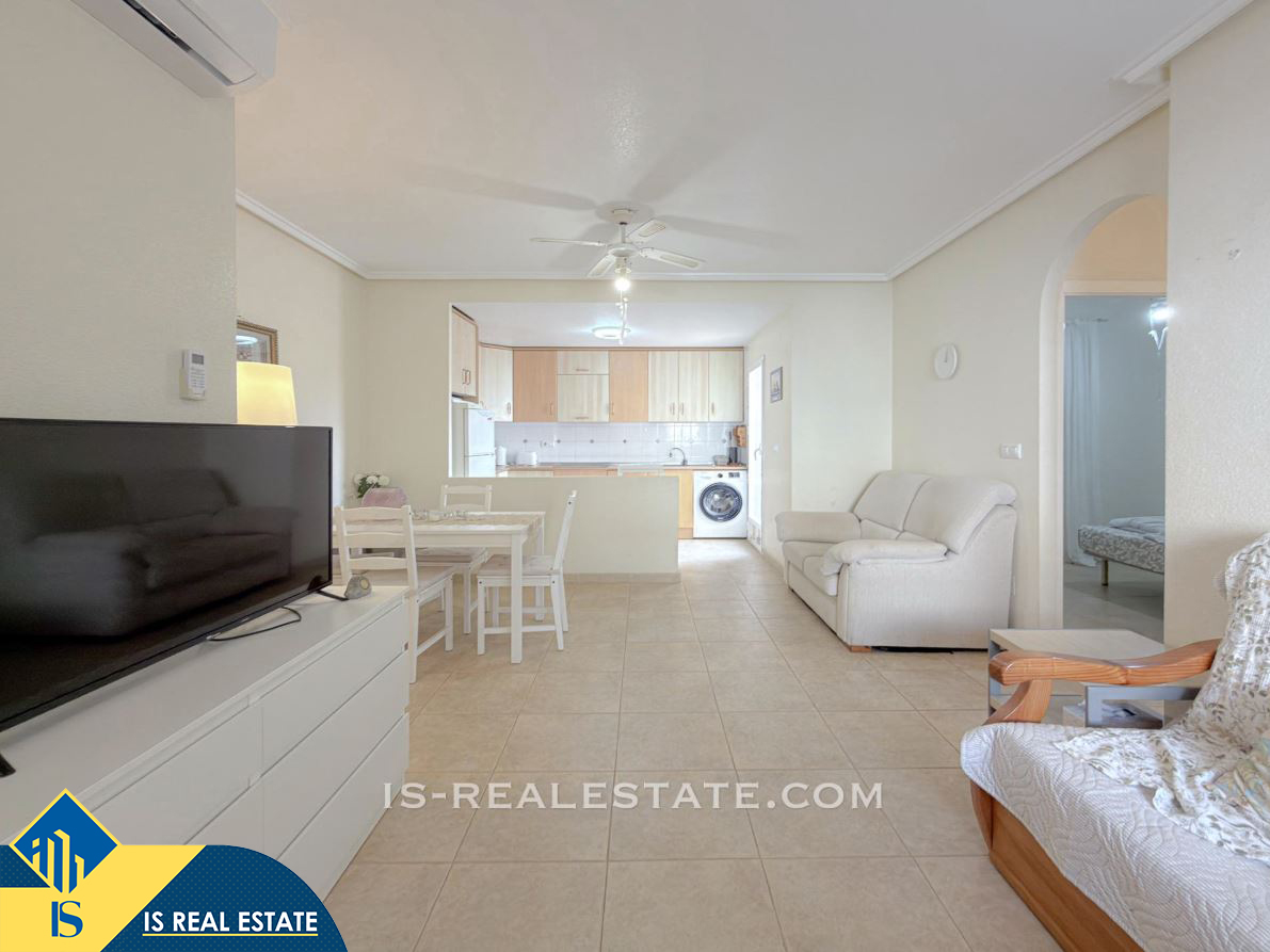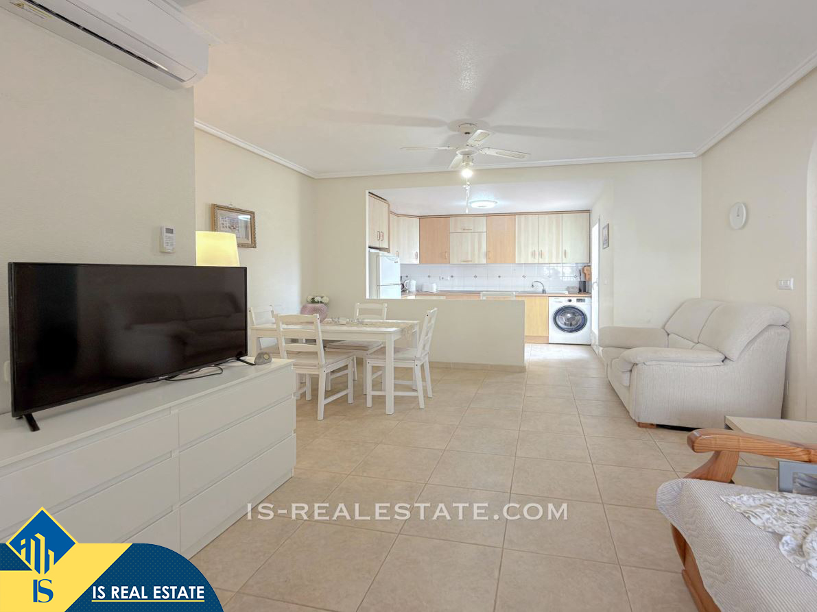 3-jų kambarių bungalas su bendru baseinu, Ispanijoje, Alicante provincijoje, Torrevieja mieste, bendras plotas 65 m², 2.3 kilometro iki jūros, 45 kilometrai iki Alicante oro uosto. Turtui priklauso bendras baseinas, terasa, vieta automobiliui. Netoli turto yra parduotuvės, restoranai, autobusų stotelės, vaikų zonos, degalinės, žalios zonos, kavinės