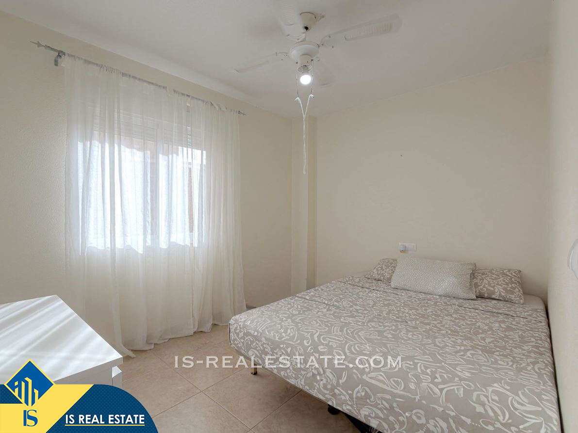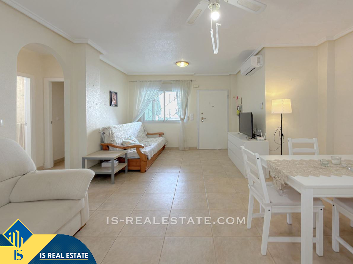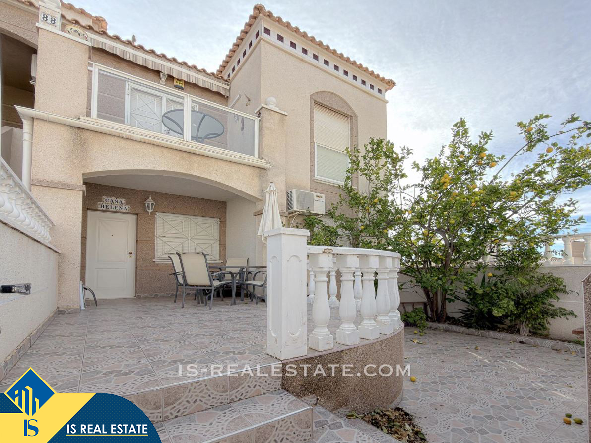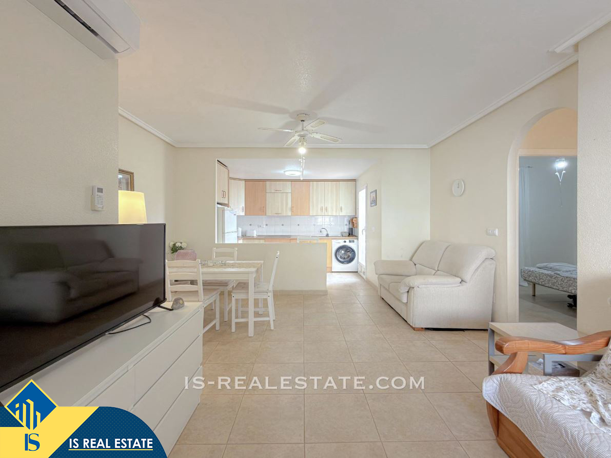 3-jų kambarių bungalas su bendru baseinu, Ispanijoje, Alicante provincijoje, Torrevieja mieste, bendras plotas 65 m², 2.3 kilometro iki jūros, 45 kilometrai iki Alicante oro uosto. Turtui priklauso bendras baseinas, terasa, vieta automobiliui. Netoli turto yra parduotuvės, restoranai, autobusų stotelės, vaikų zonos, degalinės, žalios zonos, kavinės