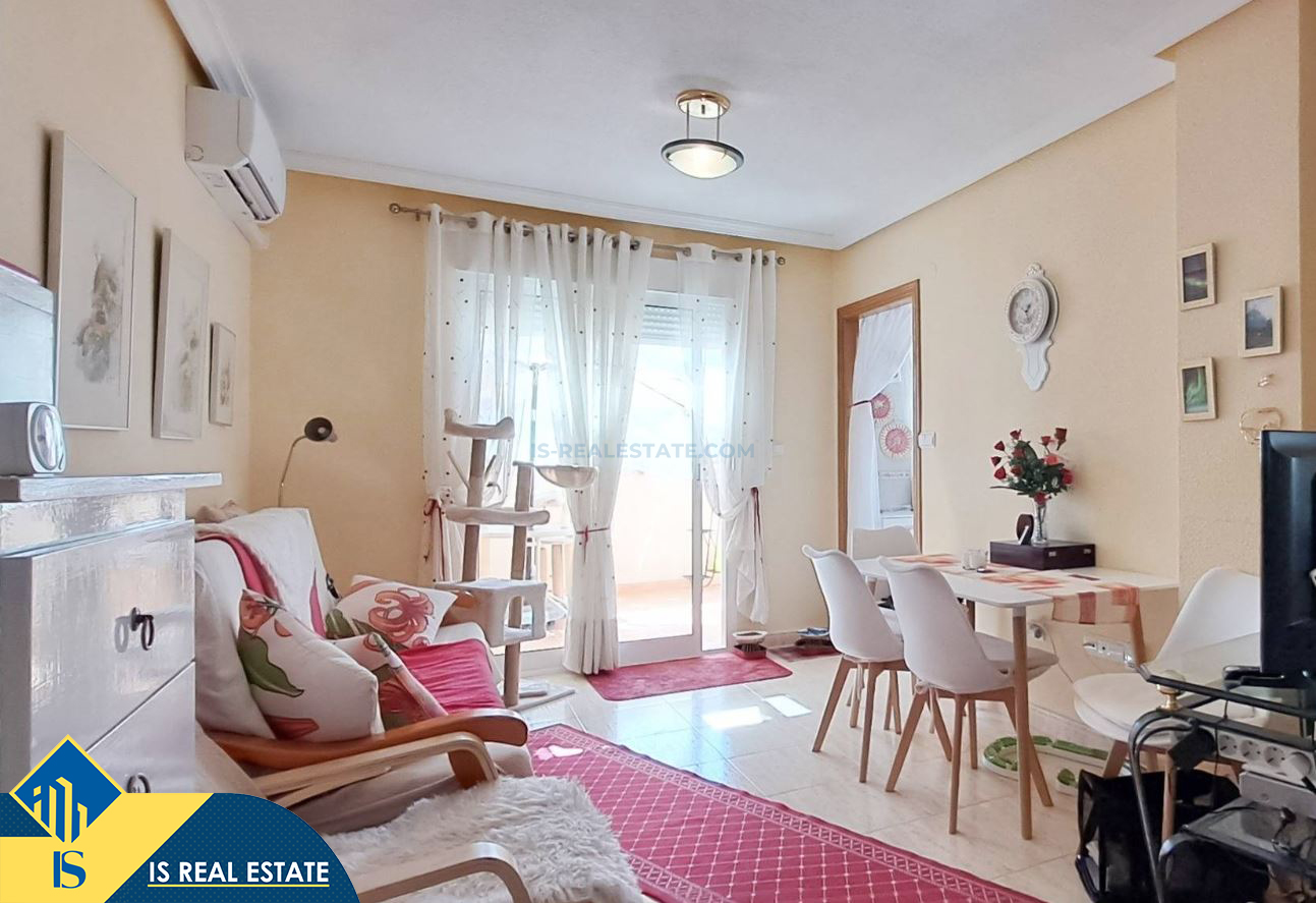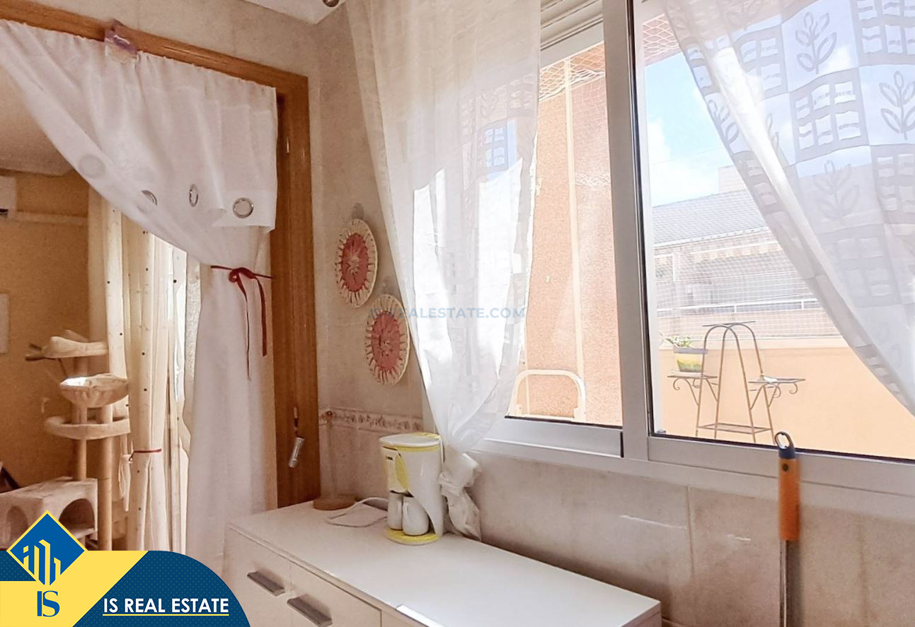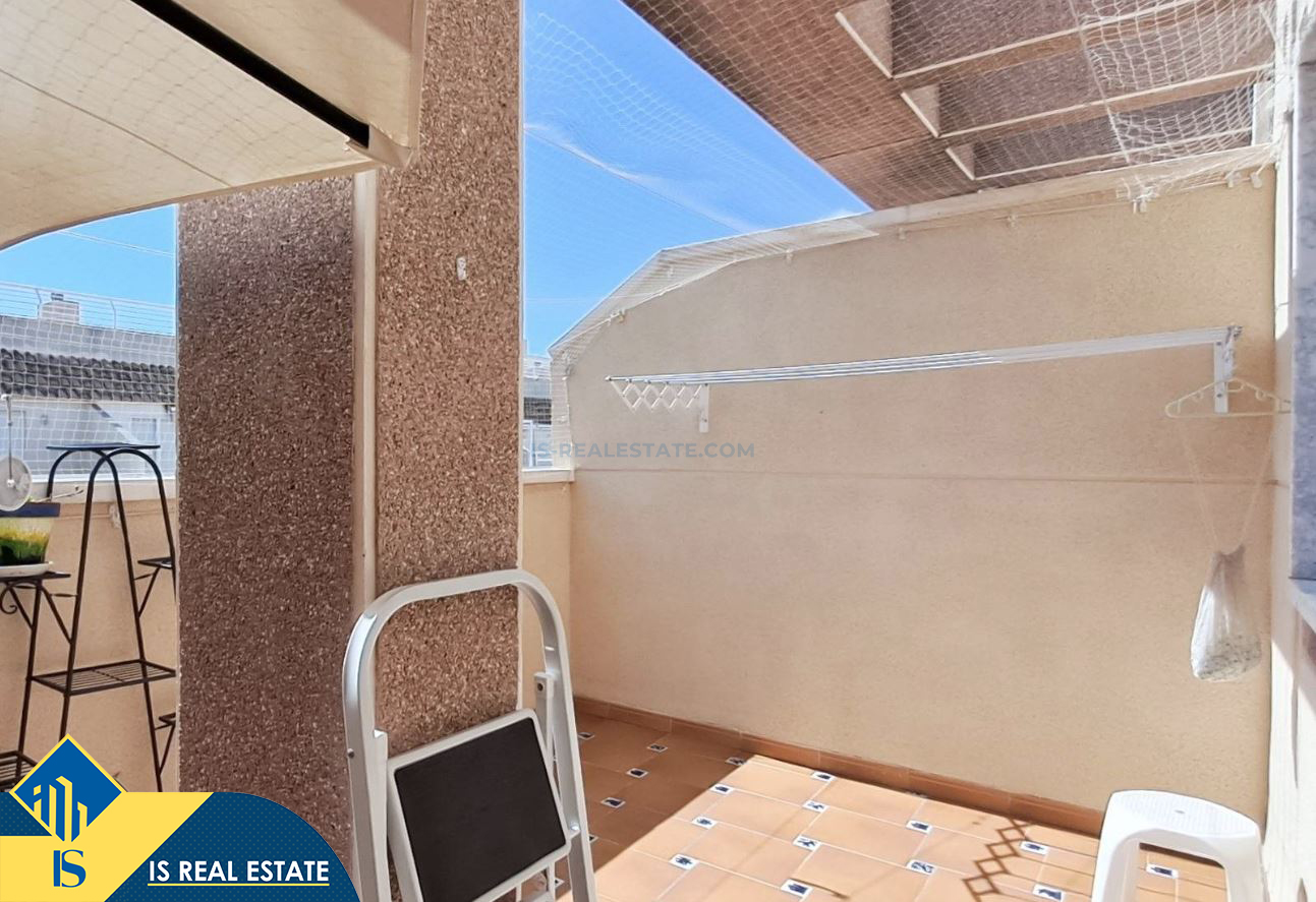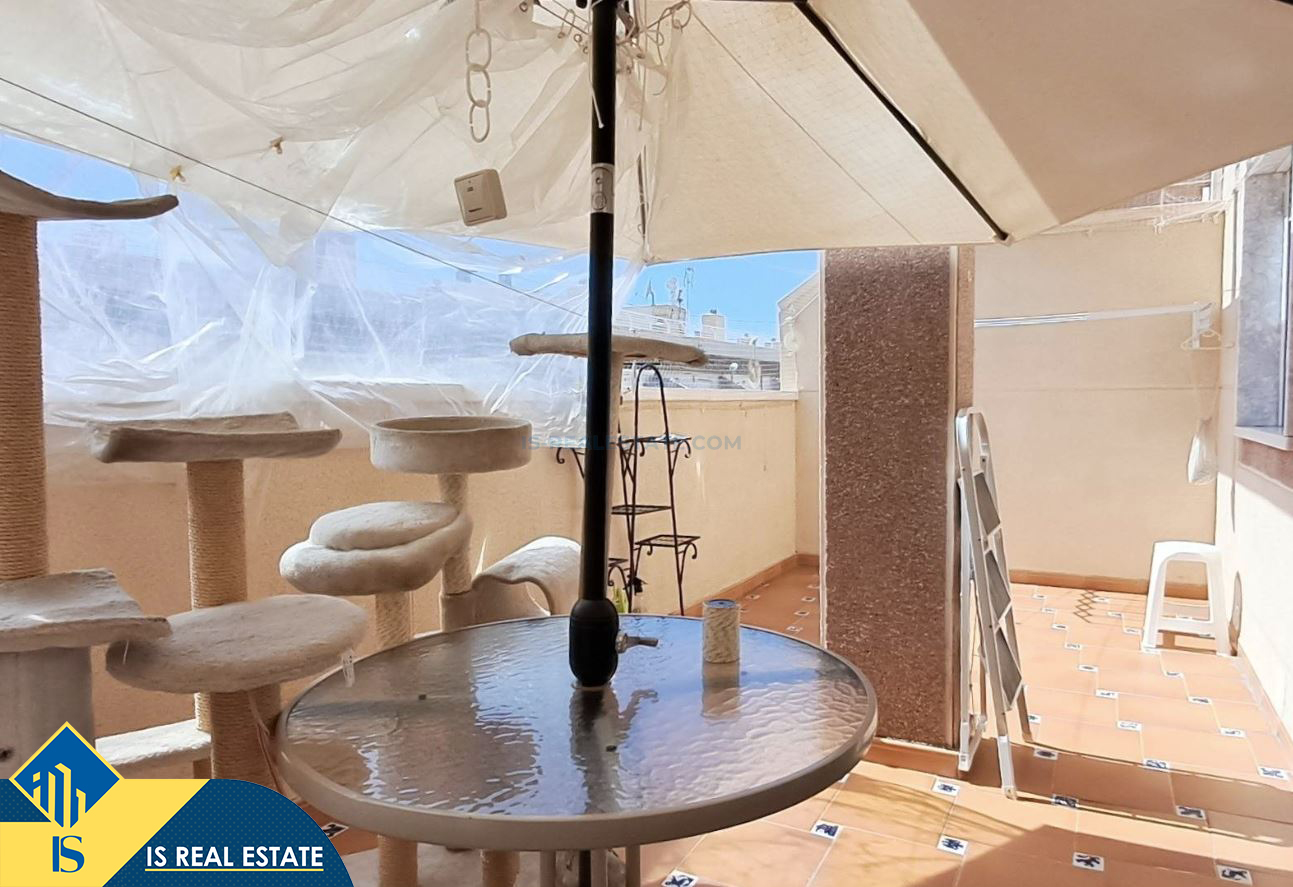3-jų kambarių penthouse apartamentas su terasa, Ispanijoje, Alicante provincijoje, Torrevieja mieste, bendras plotas 49 m², 650 metrų iki jūros, 45 kilometrai iki Alicante oro uosto. Turtui priklauso terasa. Netoli turto yra parduotuvės, restoranai, vaistinės, autobusų stotelės, degalinės, žalios zonos, kavinės
