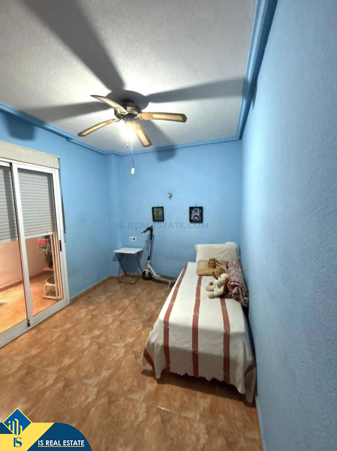 3-jų kambarių apartamentas su terasa, Ispanijoje, Alicante provincijoje, Torrevieja mieste, bendras plotas 65 m², 700 metrų iki jūros, 45 kilometrai iki Alicante oro uosto. Turtui priklauso terasa, liftas. Netoli turto yra parduotuvės, restoranai, vaistinės, autobusų stotelės, degalinės, žalios zonos, kavinės