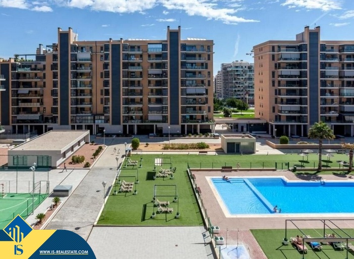 4-ių kambarių apartamentas su bendru baseinu, Ispanijoje, Alicante provincija, Alicante mieste, bendras plotas 96 m², 700 metrų iki jūros, 18 kilometrų iki Alicante miesto oro uosto. Netoli turto yra parduotuvės, restoranai, vaistinės, autobusų stotelės, degalinės, žalios zonos, kavinės