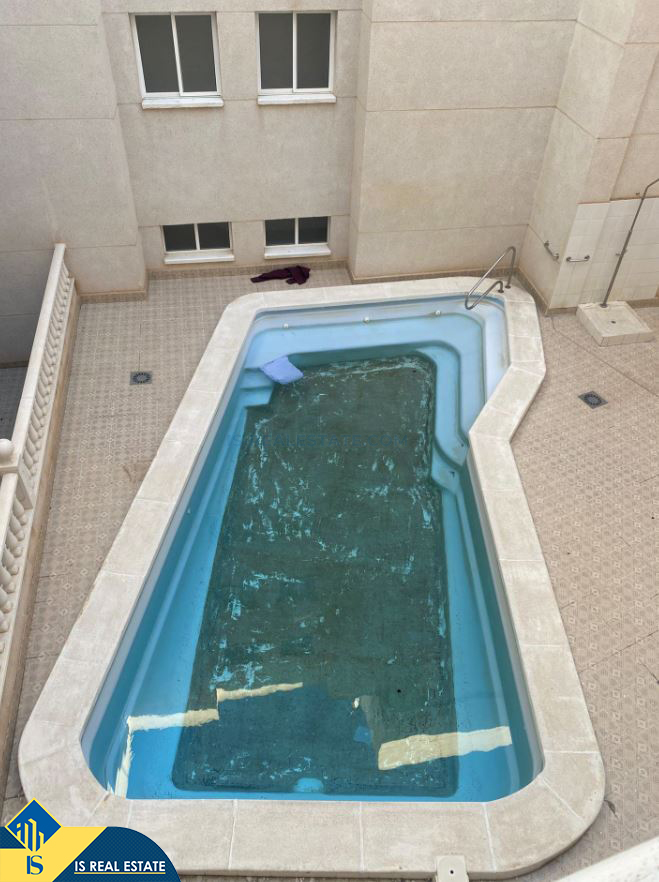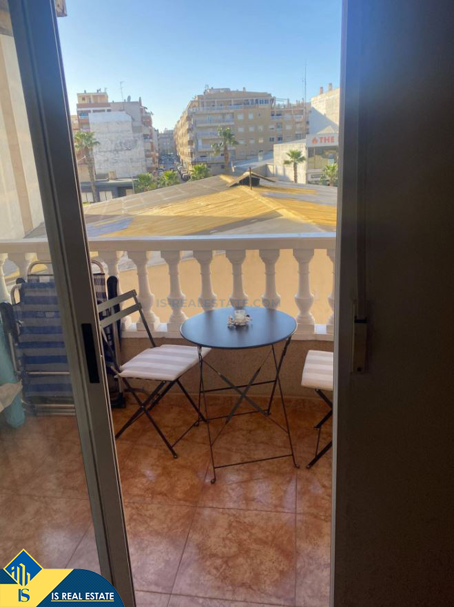 3-jų kambarių apartamentas su bendru baseinu, Ispanijoje, Alicante provincijoje, Torrevieja mieste, bendras plotas 80 m², 1 kilometras iki jūros, 45 kilometrai iki Alicante oro uosto. Turtui priklauso bendras baseinas, terasa, liftas. Netoli turto yra parduotuvės, restoranai, vaistinės, autobusų stotelės, degalinės, žalios zonos, kavinės