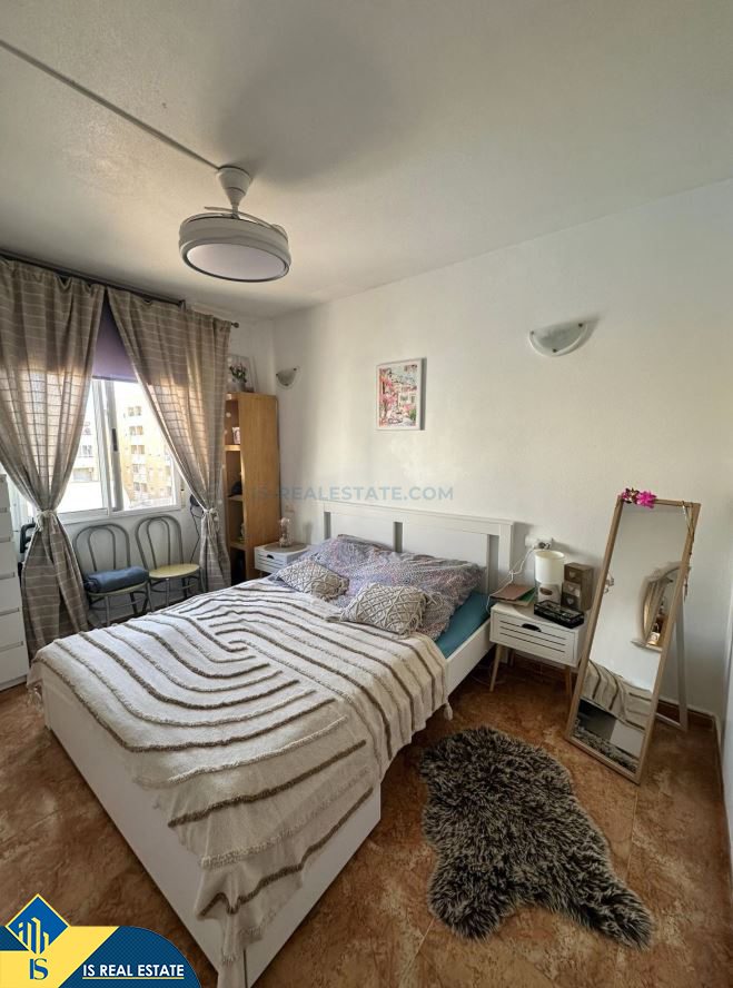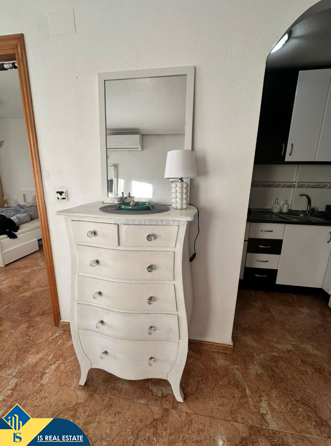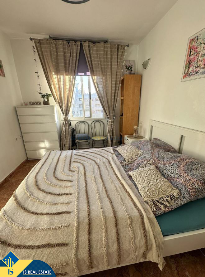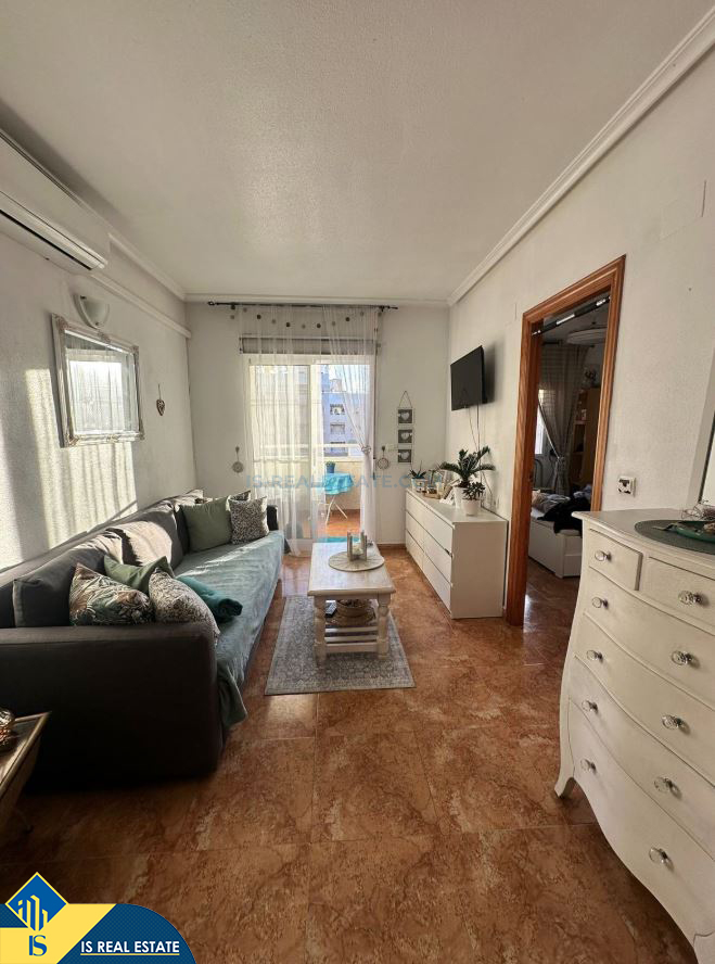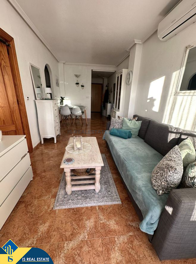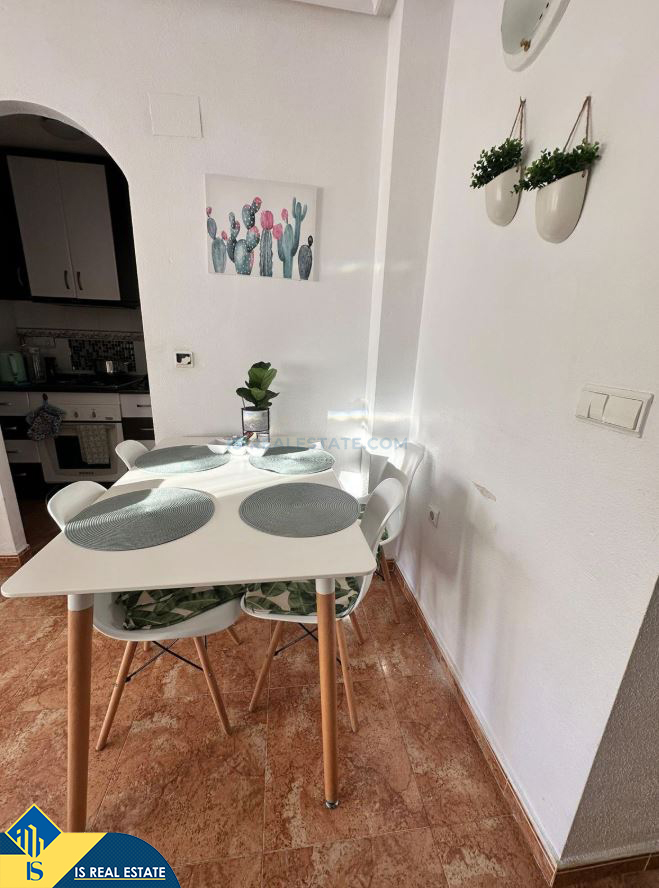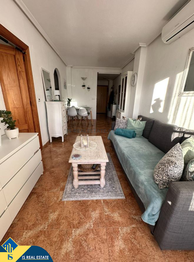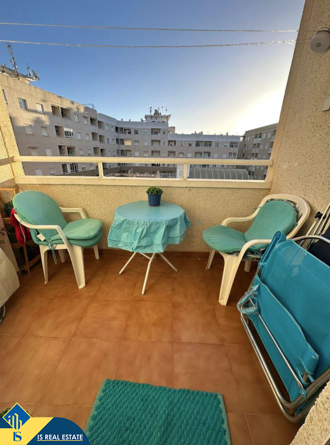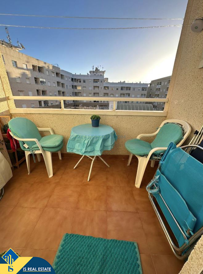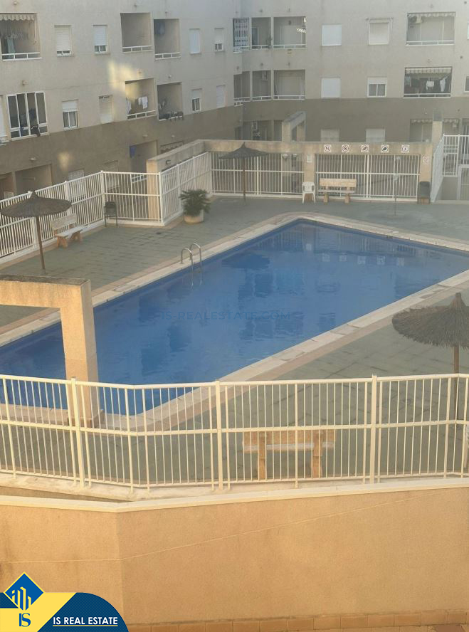 2-jų kambarių apartamentas su bendru baseinu, Ispanijoje, Alicante provincijoje, Torrevieja mieste, bendras plotas 48 m², 1 kilometras iki jūros, 45 kilometrai iki Alicante oro uosto. Turtui priklauso bendras baseinas, terasa. Netoli turto yra parduotuvės, restoranai, vaistinės, autobusų stotelės, degalinės, žalios zonos, kavinės