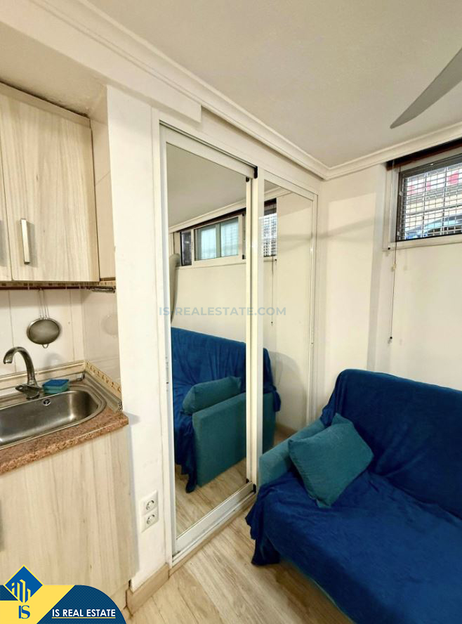 Renovuota studija netoli jūros, Ispanijoje, Alicante provincijoje, Torrevieja mieste, Playa del Cura rajone, bendras plotas 25 m², 500 metrų iki jūros, 45 kilometrai iki Alicante oro uosto. Turtui priklauso liftas. Netoli turto yra parduotuvės, restoranai, vaistinės, autobusų stotelės, degalinės, žalios zonos, kavinės, Habaneras alėja