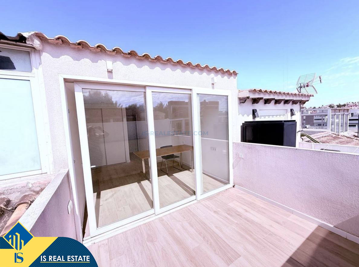 4-ių kambarių renovuotas namas su terasa, Ispanijoje, Alicante provincijoje, Orihuela Costa mieste, bendras plotas 98 m², 5.3 kilometro iki jūros, 57 kilometrai iki Alicante oro uosto. Turtui priklauso terasa, kiemelis. Netoli turto yra parduotuvės, restoranai, autobusų stotelės, vaikų zonos, degalinės, žalios zonos, kavinės, ligoninė