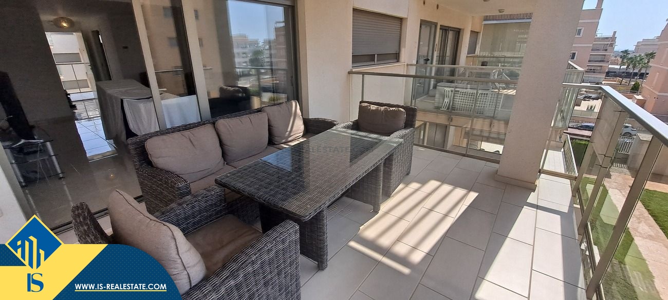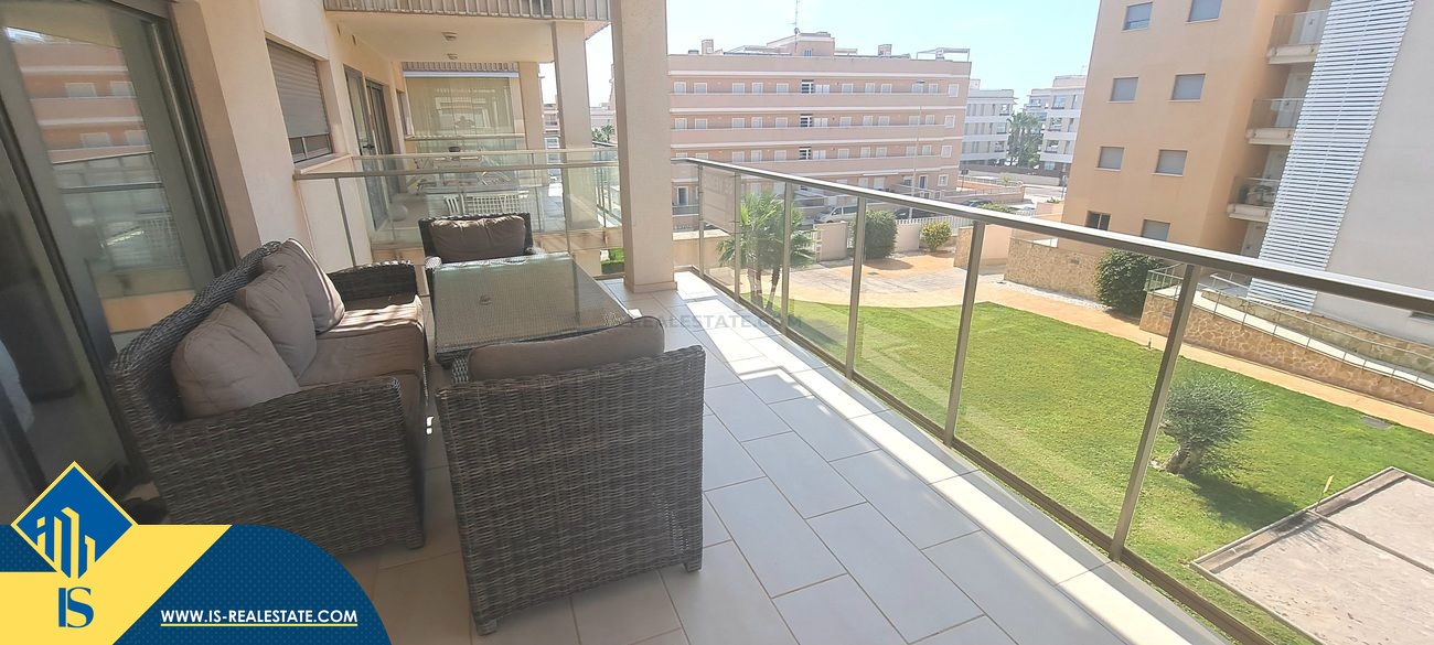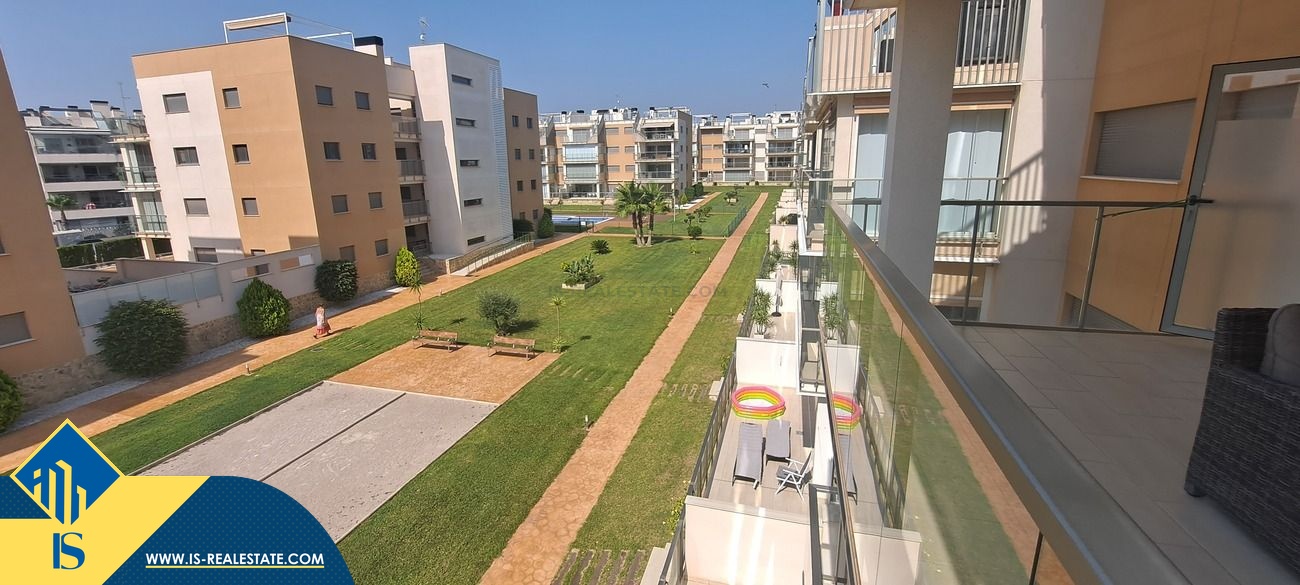 3-jų kambarių apartamentas su bendru baseinu, Ispanijoje, Alicante provincijoje, Orihuela Costa mieste, bendras plotas 83 m², 3 kilometrai iki jūros, 57 kilometrai iki Alicante oro uosto. Turtui priklauso bendras baseinas, terasa, vieta automobiliui. Netoli turto yra parduotuvės, restoranai, autobusų stotelės, vaikų zonos, degalinės, žalios zonos, kavinės, ligoninė