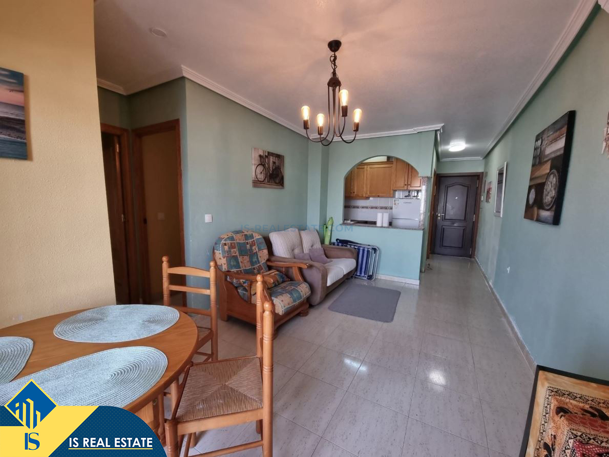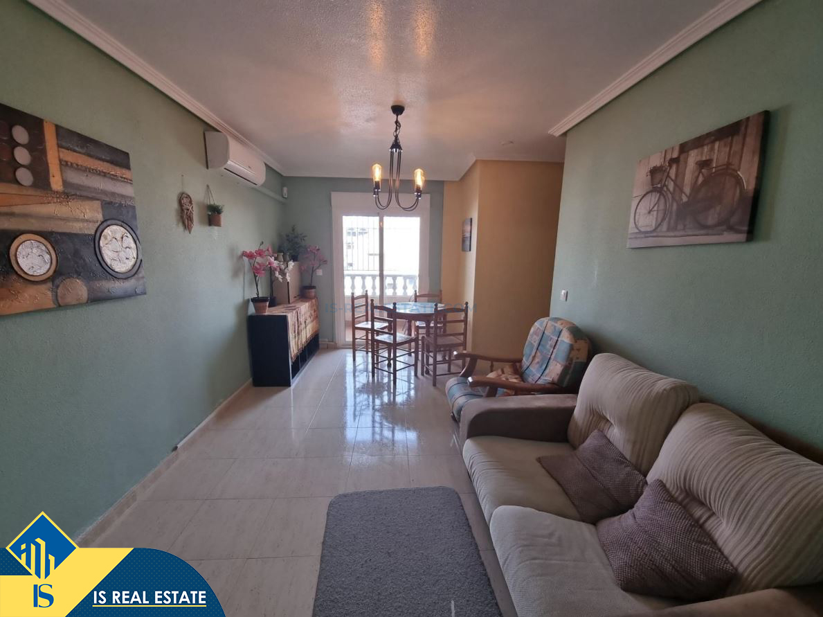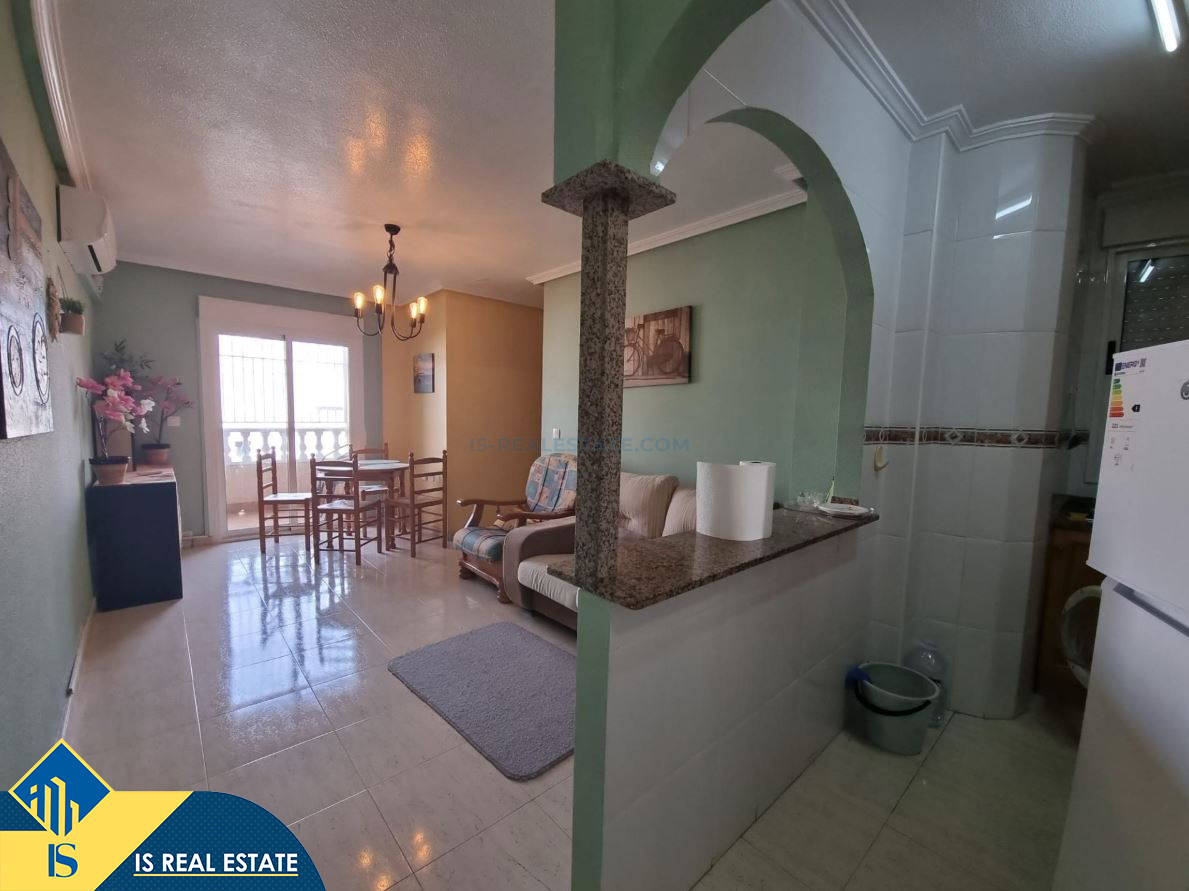3-jų kambarių apartamentas su terasa, Ispanijoje, Alicante provincijoje, Torrevieja mieste, bendras plotas 53 m², 500 metrų iki jūros, 45 kilometrai iki Alicante oro uosto. Turtui priklauso terasa. Netoli turto yra parduotuvės, restoranai, vaistinės, autobusų stotelės, degalinės, žalios zonos, kavinės