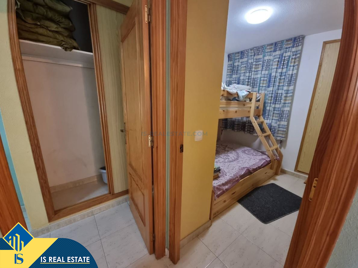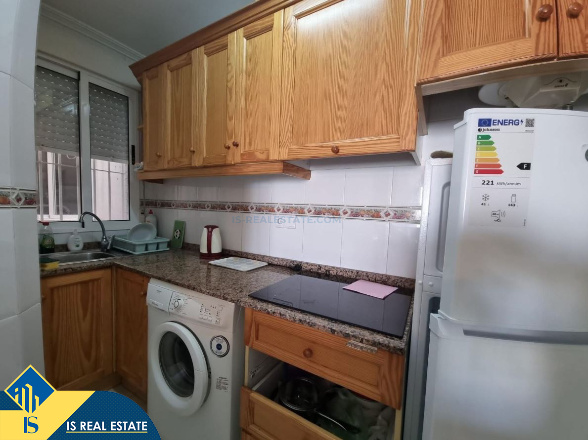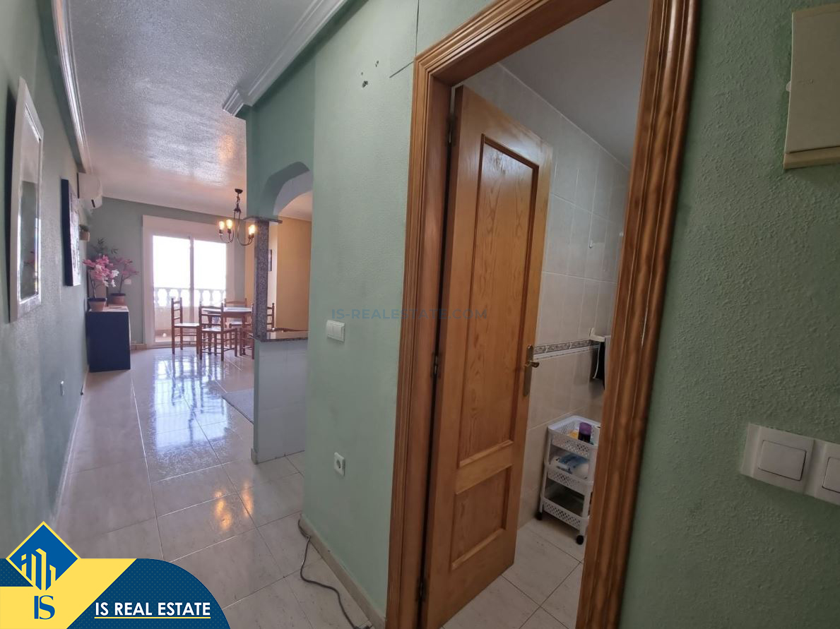 3-jų kambarių apartamentas su terasa, Ispanijoje, Alicante provincijoje, Torrevieja mieste, bendras plotas 53 m², 500 metrų iki jūros, 45 kilometrai iki Alicante oro uosto. Turtui priklauso terasa. Netoli turto yra parduotuvės, restoranai, vaistinės, autobusų stotelės, degalinės, žalios zonos, kavinės
