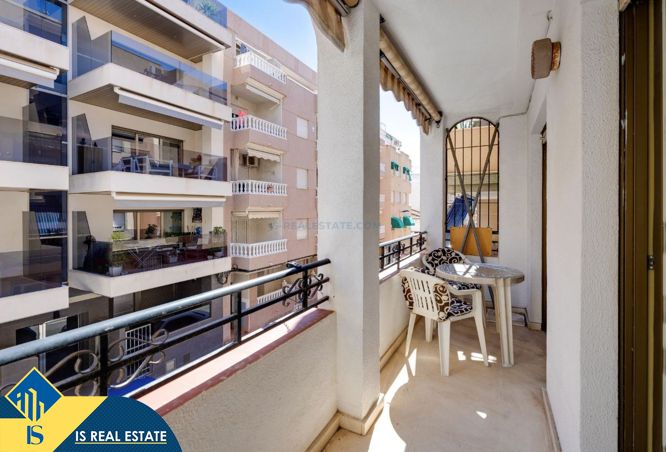 3-jų kambarių apartamentas su terasa, Ispanijoje, Alicante provincijoje, Torrevieja mieste, Playa del Cura rajone, bendras plotas 58 m², 200 metrų iki jūros, 45 kilometrai iki Alicante oro uosto. Turtui priklauso terasa. Netoli turto yra parduotuvės, restoranai, vaistinės, autobusų stotelės, degalinės, žalios zonos, kavinės, Habaneras alėja
