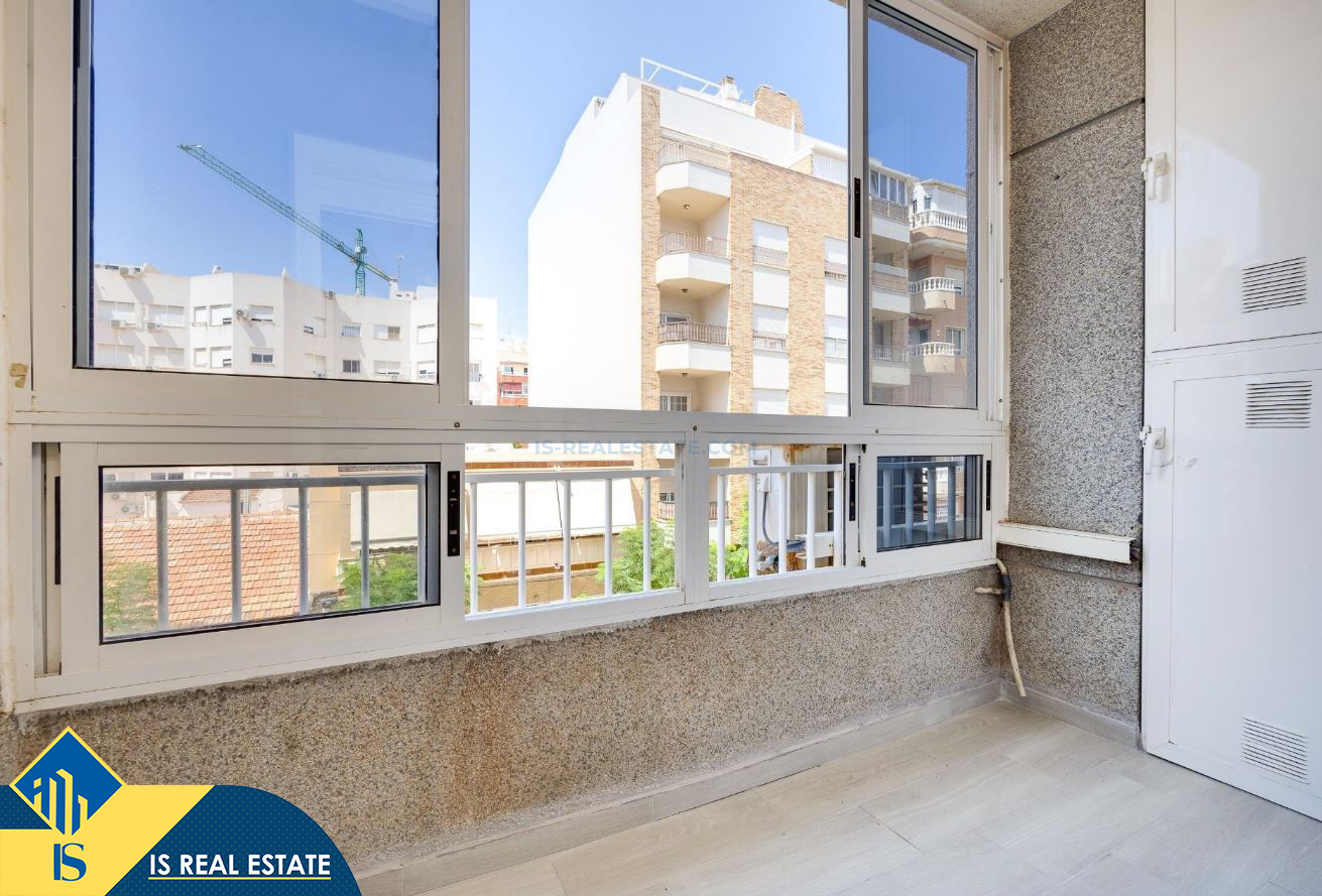 4-ių kambarių apartamentas su terasa, Ispanijoje, Alicante provincijoje, Torrevieja mieste, bendras plotas 93 m², 550 metrų iki jūros, 45 kilometrai iki Alicante oro uosto. Turtui priklauso terasa, liftas, sandėliukas. Netoli turto yra parduotuvės, restoranai, vaistinės, autobusų stotelės, degalinės, žalios zonos, kavinės