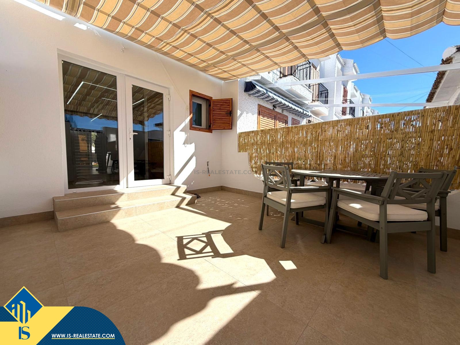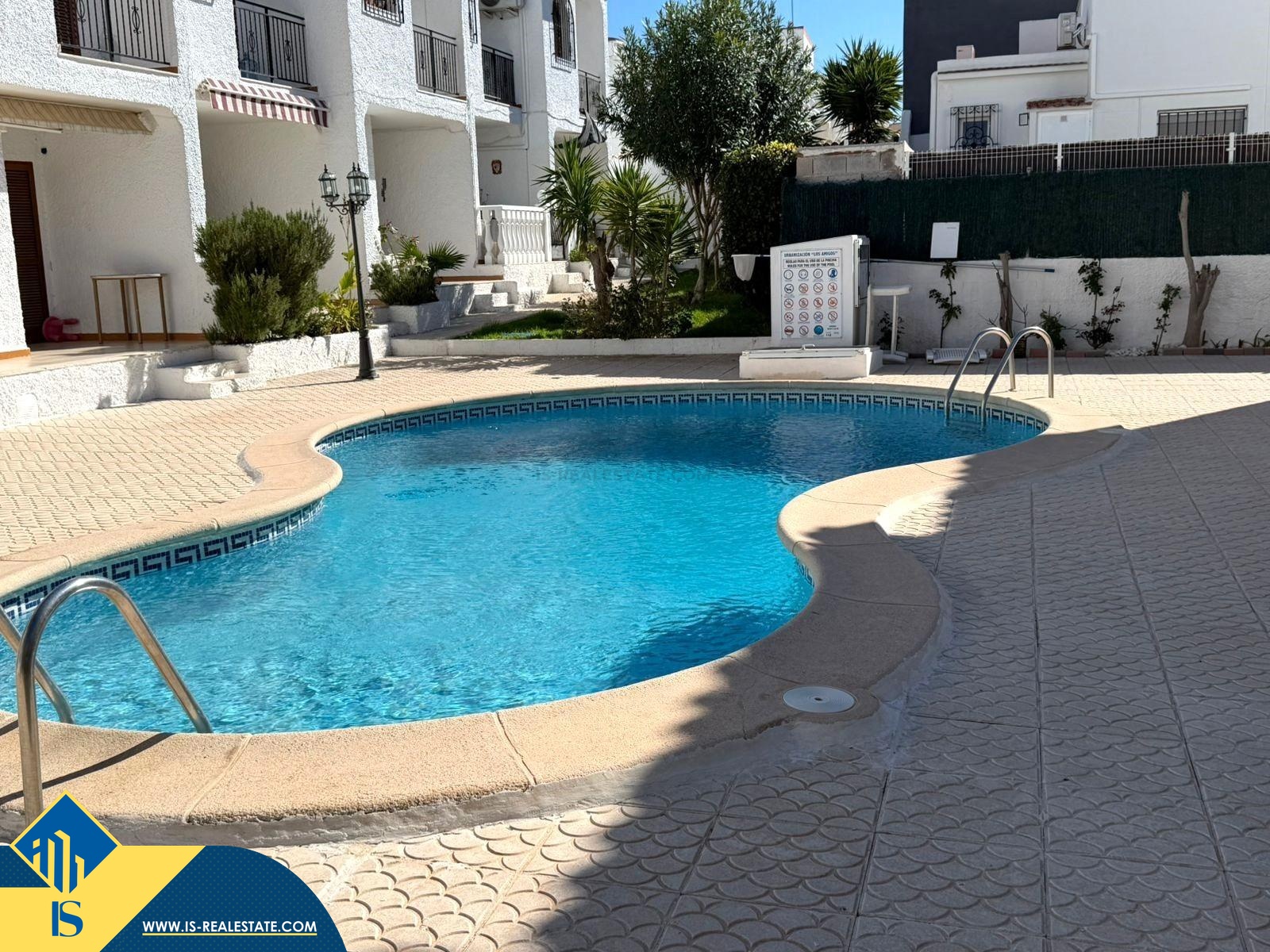 3-jų kambarių renovuotas namas su bendru baseinu, Ispanijoje, Alicante provincijoje, Torrevieja mieste, Playa del Cura rajone, bendras plotas 90 m², 1 kilometras iki jūros, 45 kilometrai iki Alicante oro uosto. Turtui priklauso bendras baseinas, terasa, soliariumas. Netoli turto yra parduotuvės, restoranai, autobusų stotelės, vaikų zonos, degalinės, žalios zonos, kavinės