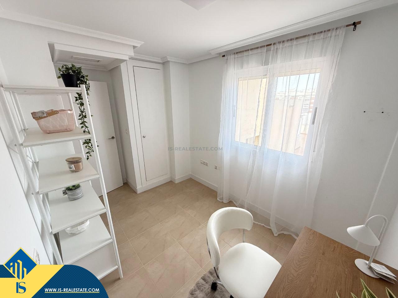 4-ių kambarių apartamentas su terasa, Ispanijoje, Alicante provincijoje, Torrevieja mieste, Playa del Cura rajone, bendras plotas 90 m², 500 metrų iki jūros, 45 kilometrai iki Alicante oro uosto. Turtui priklauso terasa, liftas. Netoli turto yra parduotuvės, restoranai, vaistinės, autobusų stotelės, degalinės, žalios zonos, kavinės, Habaneras alėja