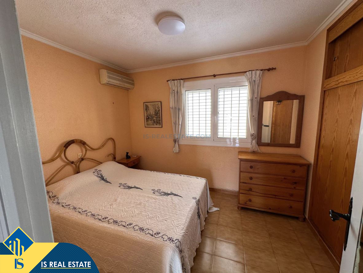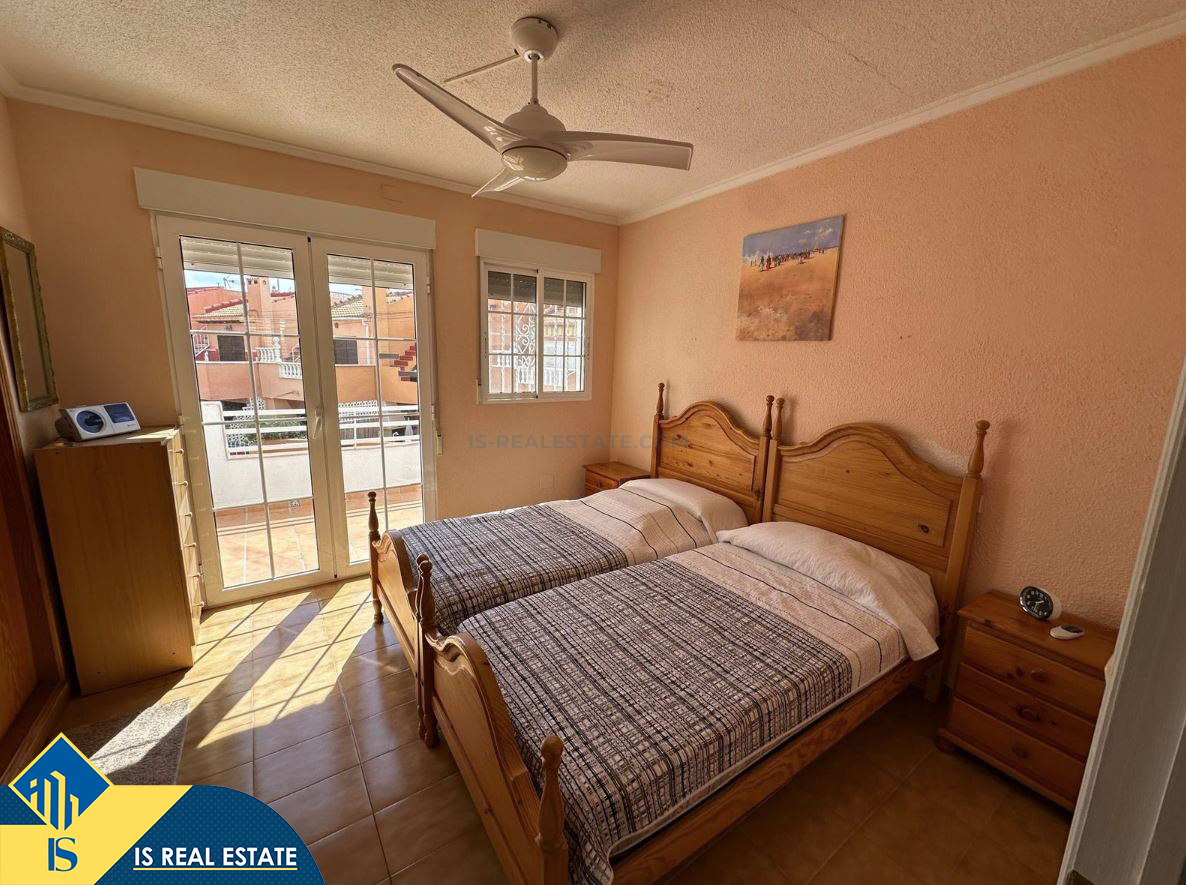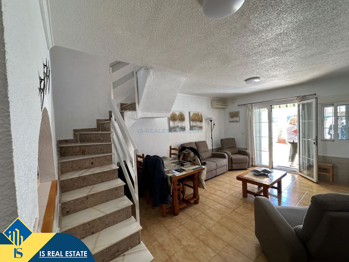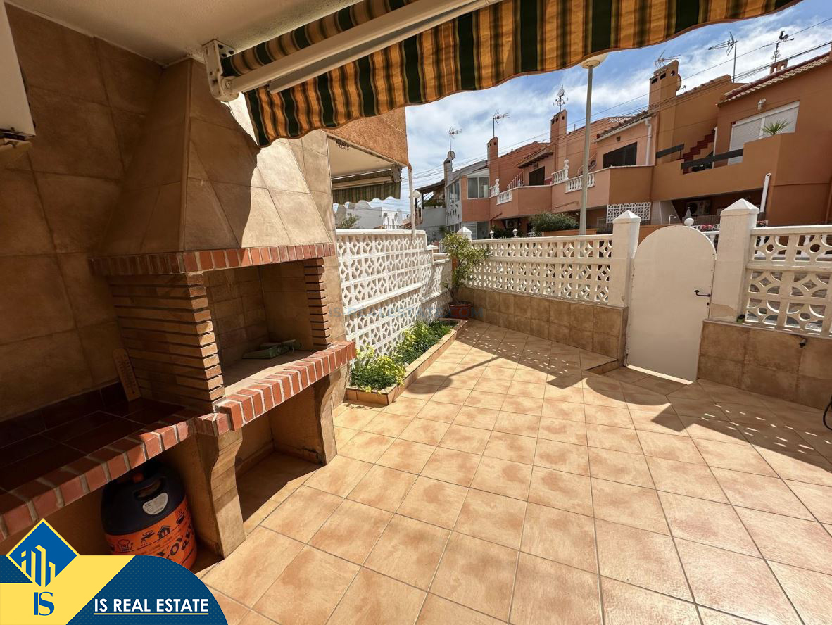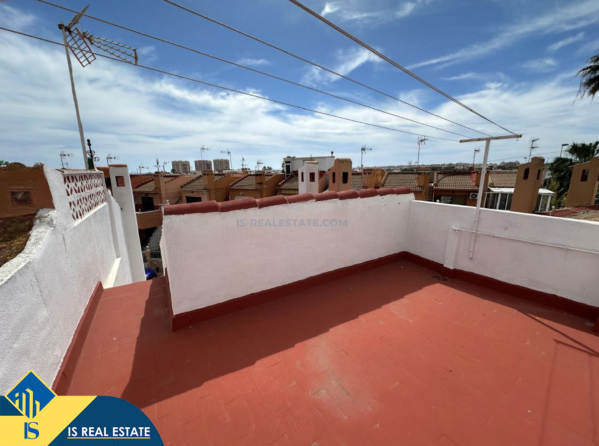 3-jų kambarių namas su terasa, Ispanijoje, Alicante provincijoje, Torrevieja mieste, bendras plotas 72 m², 1 kilometras iki jūros, 45 kilometrai iki Alicante oro uosto. Turtui priklauso terasa, soliariumas, privatus kiemas. Netoli turto yra parduotuvės, restoranai, autobusų stotelės, vaikų zonos, degalinės, žalios zonos, kavinės, vaistinės