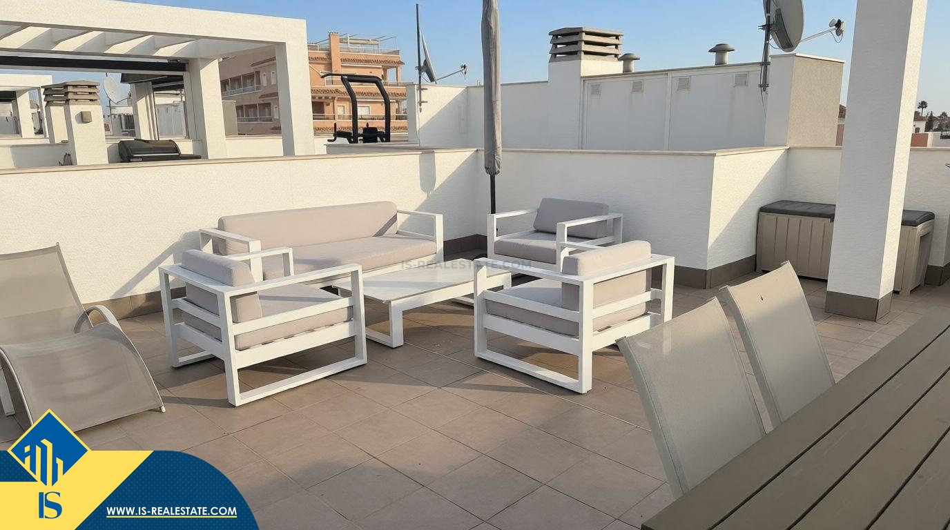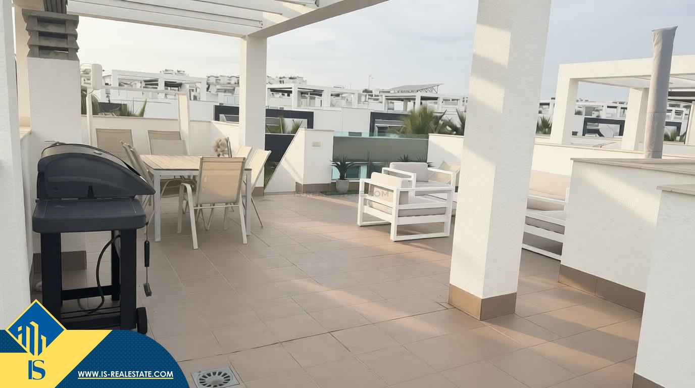 3-jų kambarių penthouse apartamentas, Ispanijoje, Alicante provincija, Torrevieja mieste, Los Balcones, bendras plotas 70 m², 1.5 kilometras iki jūros, 45 kilometrai iki Alicante miesto oro uosto. Netoli turto yra parduotuvės, restoranai, vaistinės, autobusų stotelės, degalinės, žalios zonos, kavinės, Habaneras alėja, pagrindinė promenada