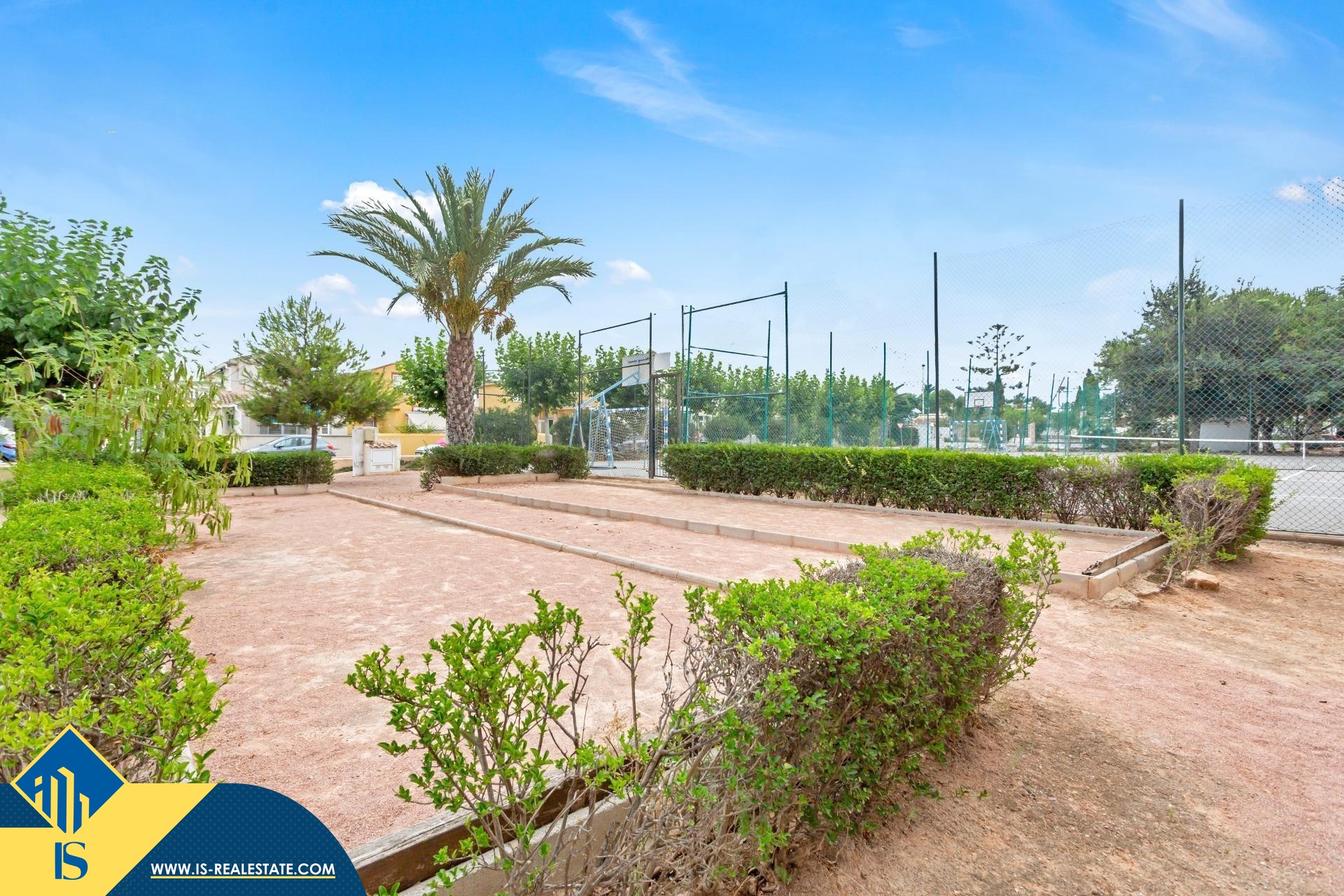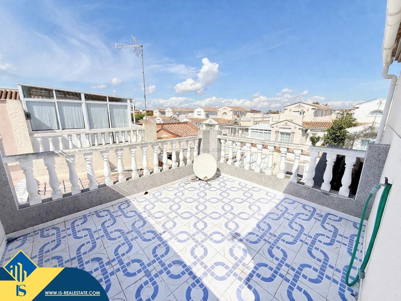 4-ių kambarių namas su bendru baseinu, Ispanijoje, Alicante provincijoje, Torrevieja mieste, Torreta rajone, bendras plotas 65 m², 2 kilometrai iki jūros, 45 kilometrai iki Alicante miesto oro uosto. Turtui priklauso bendras baseinas, terasa, privatus kiemas. Netoli turto yra parduotuvės, restoranai, autobusų stotelės, vaikų zonos, degalinės, žalios zonos, kavinės, vaistinės