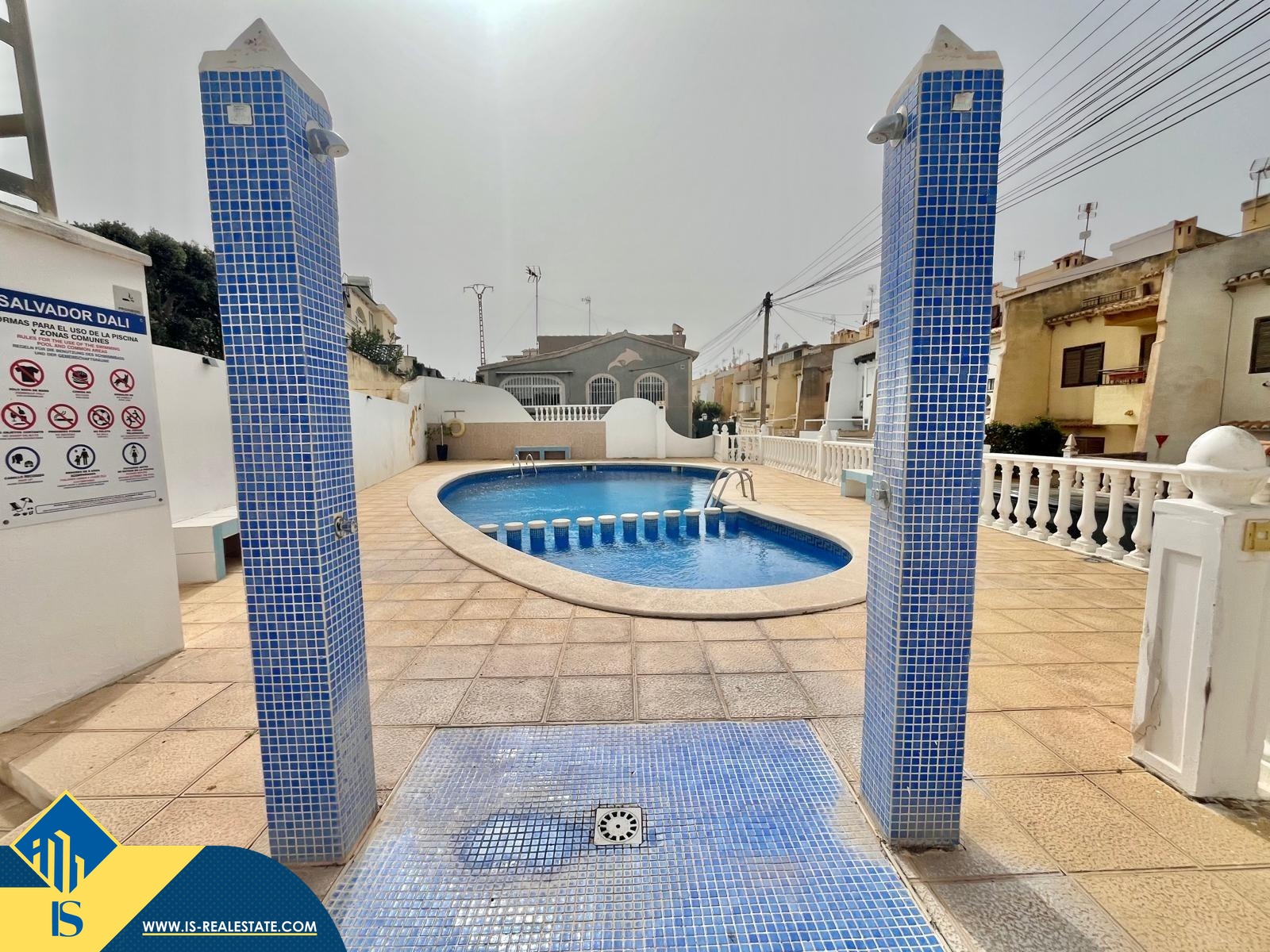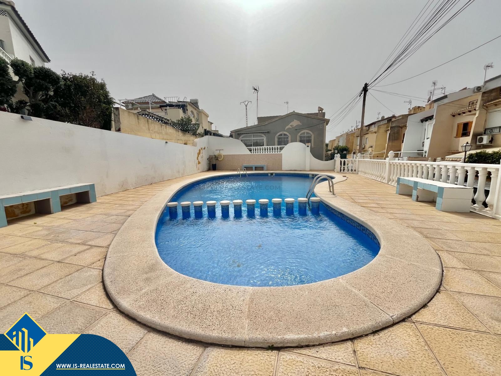 3-jų kambarių namas su bendru baseinu, Ispanijoje, Alicante provincijoje, Torrevieja mieste, Los Balcones rajone, bendras plotas 120 m², 1.5 kilometro iki jūros, 45 kilometrai iki Alicante oro uosto. Turtui priklauso bendras baseinas, terasa, vieta automobiliui. Netoli turto yra parduotuvės, restoranai, autobusų stotelės, vaikų zonos, degalinės, žalios zonos, kavinės
