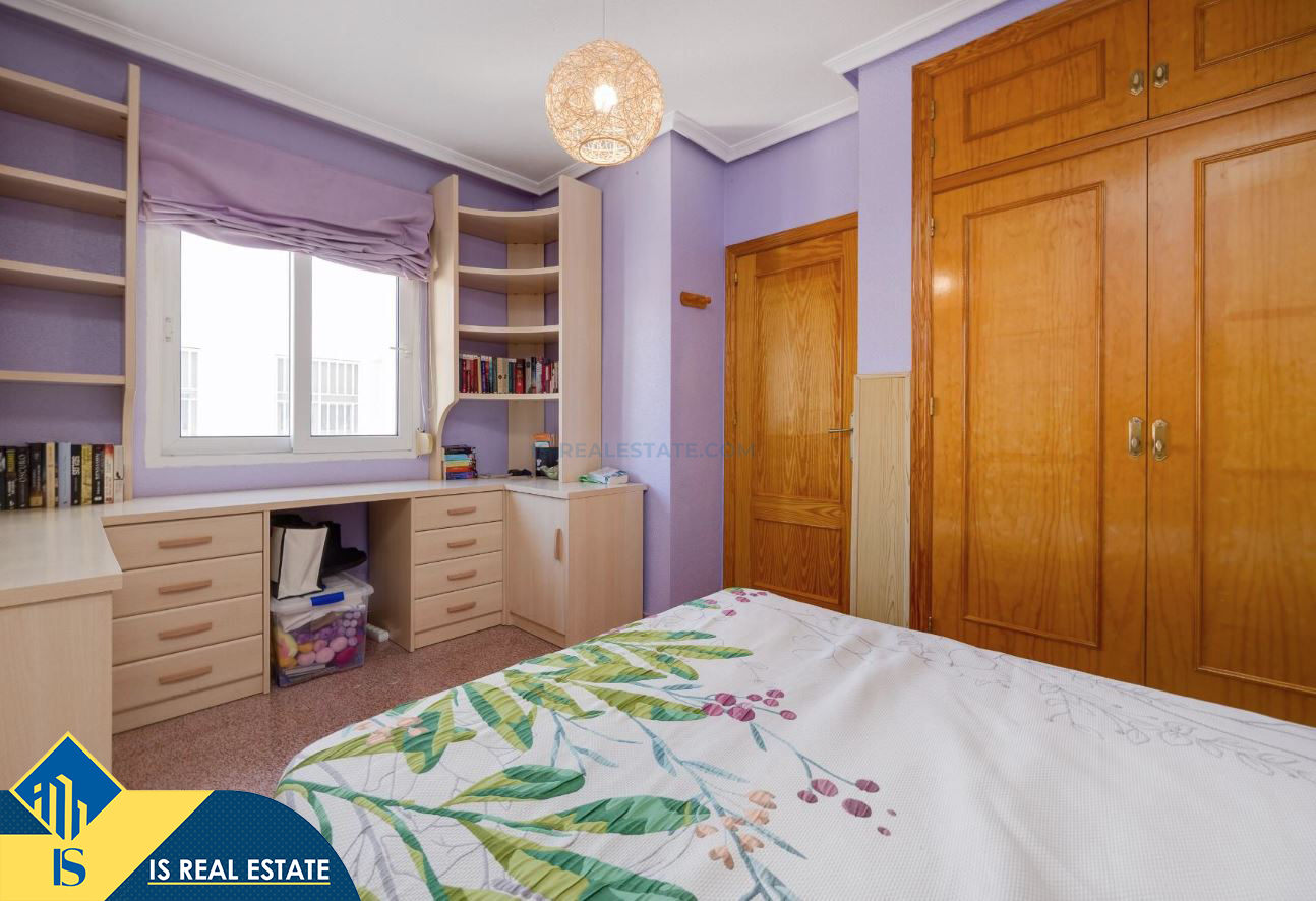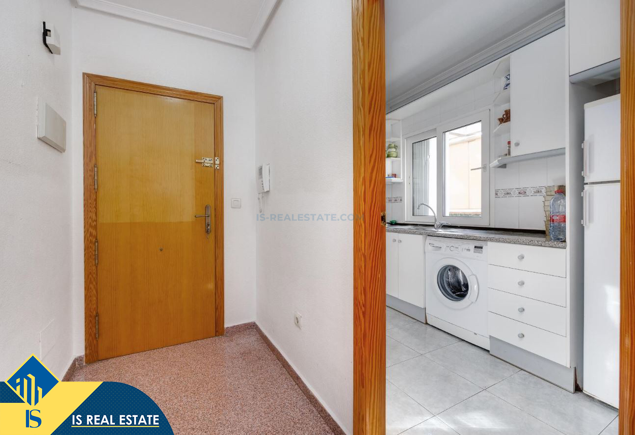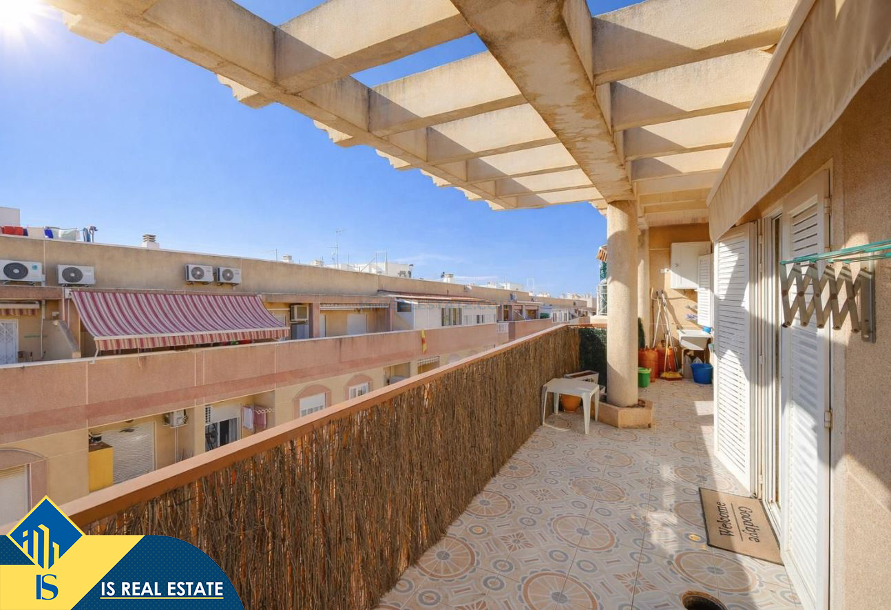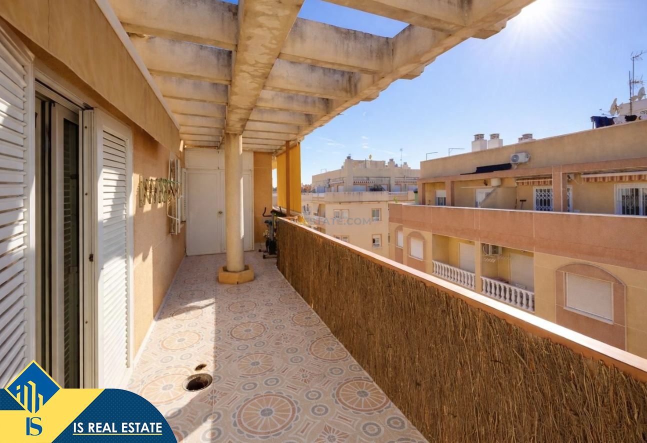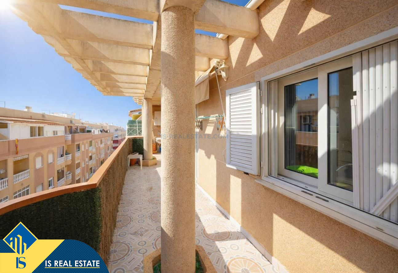 3-jų kambarių apartamentas su terasa, Ispanijoje, Alicante provincijoje, Torrevieja mieste, bendras plotas 80 m², 620 metrų iki jūros, 45 kilometrai iki Alicante oro uosto. Turtui priklauso terasa, liftas. Netoli turto yra parduotuvės, restoranai, vaistinės, autobusų stotelės, degalinės, žalios zonos, kavinės