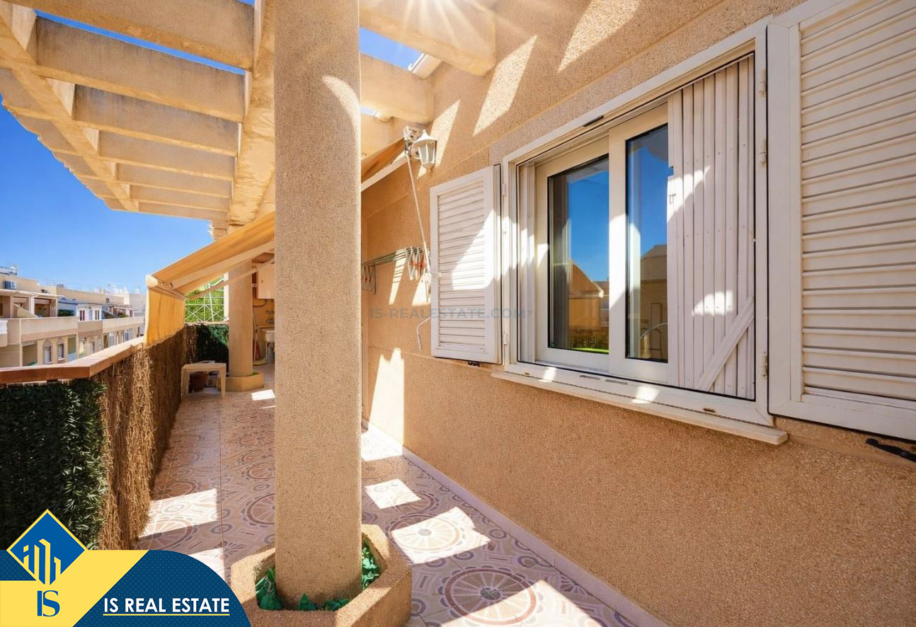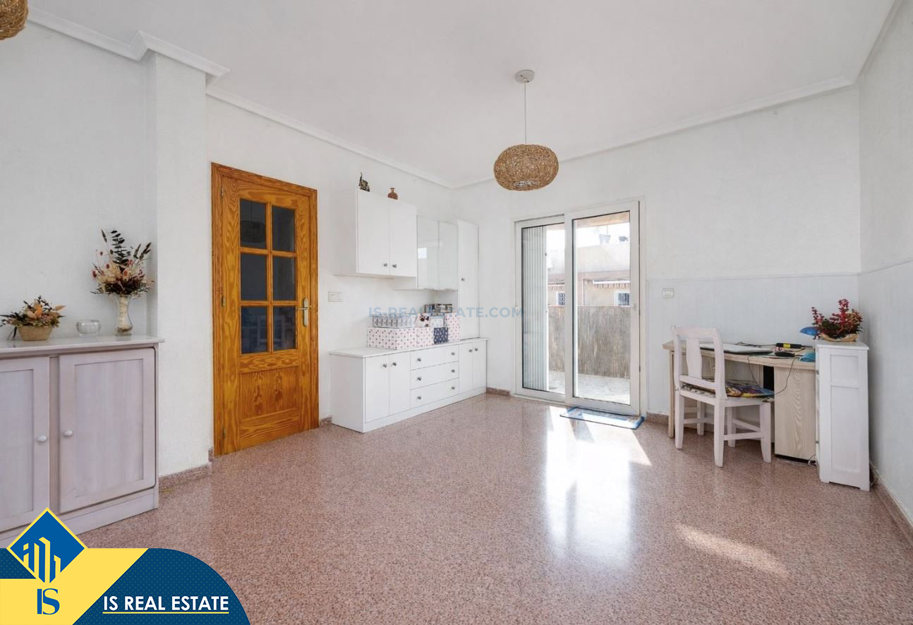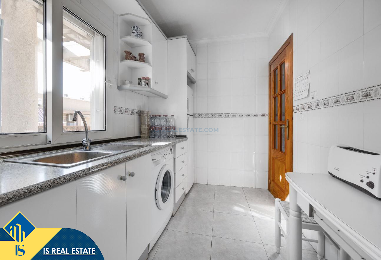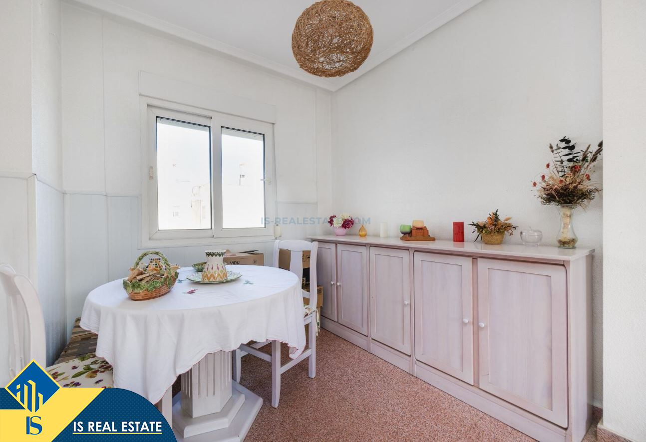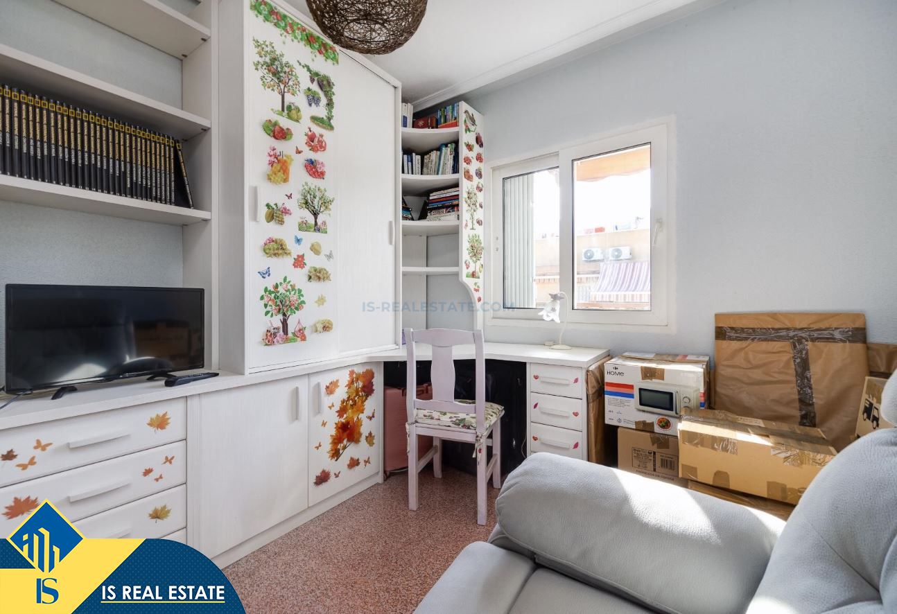 3-jų kambarių apartamentas su terasa, Ispanijoje, Alicante provincijoje, Torrevieja mieste, bendras plotas 80 m², 620 metrų iki jūros, 45 kilometrai iki Alicante oro uosto. Turtui priklauso terasa, liftas. Netoli turto yra parduotuvės, restoranai, vaistinės, autobusų stotelės, degalinės, žalios zonos, kavinės
