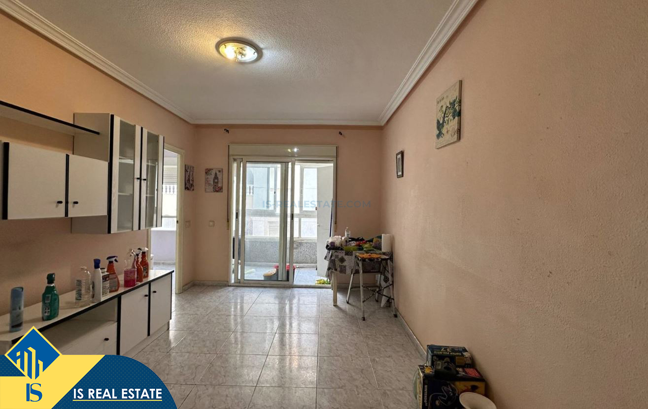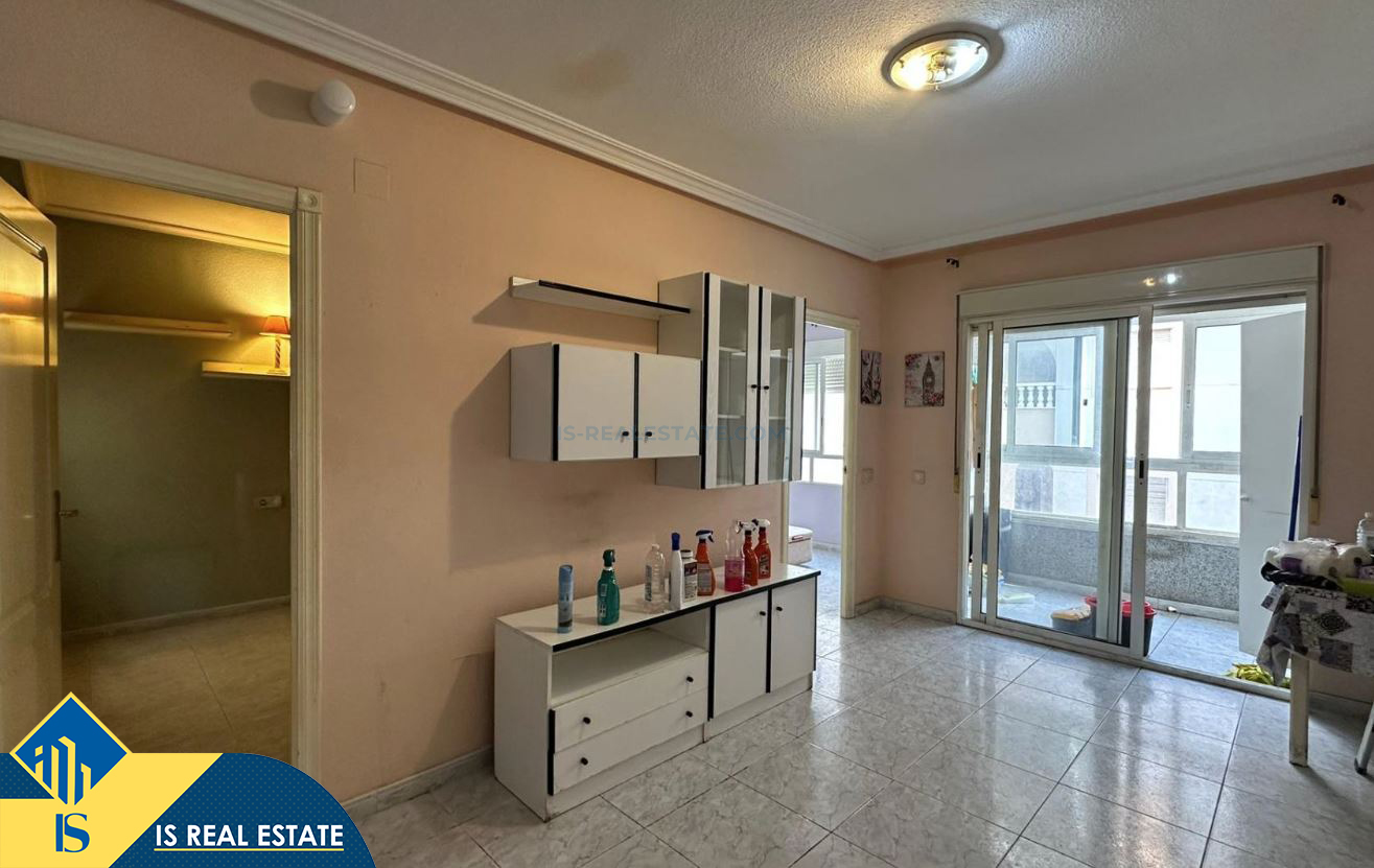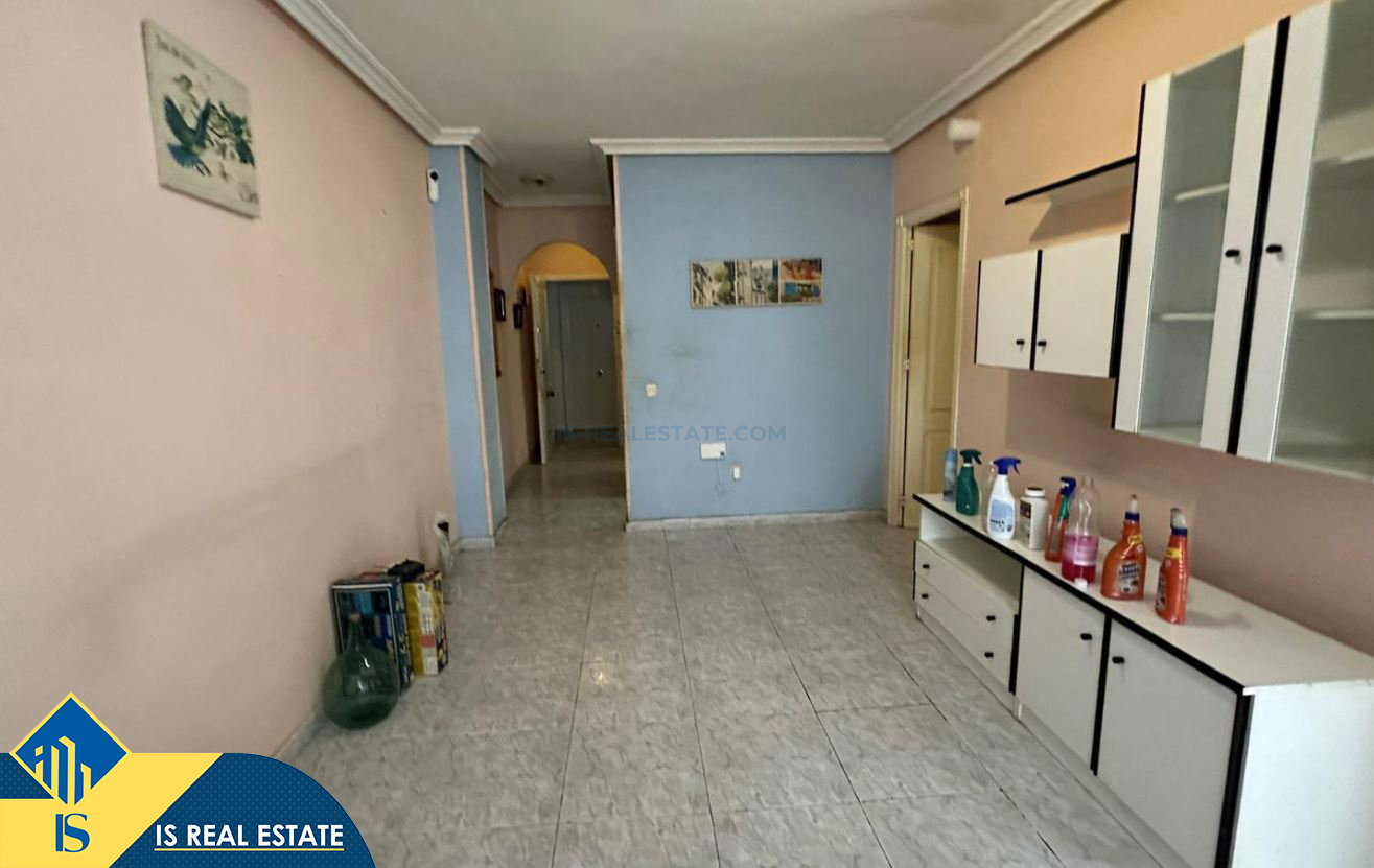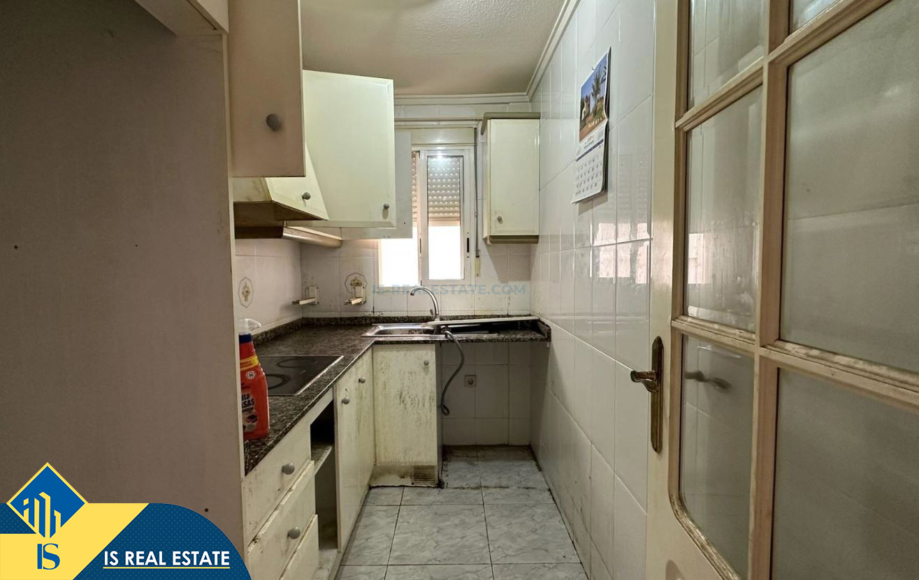 3-jų kambarių apartamentas skirtas renovacijai, Ispanijoje, Alicante provincijoje, Torrevieja mieste, bendras plotas 61 m², 900 metrų iki jūros, 45 kilometrai iki Alicante oro uosto. Turtui priklauso terasa, liftas. Netoli turto yra parduotuvės, restoranai, autobusų stotelės, degalinės, žalios zonos, kavinės, vaistinės