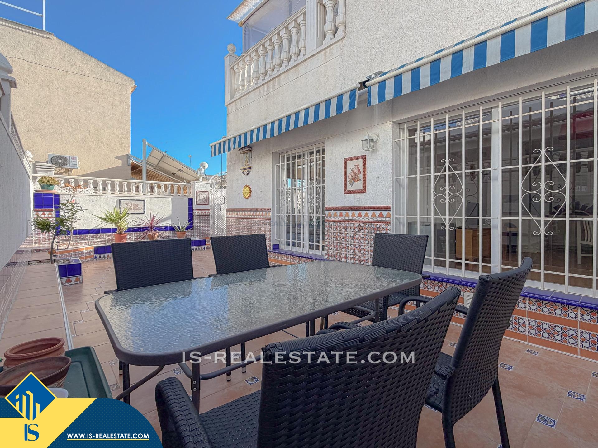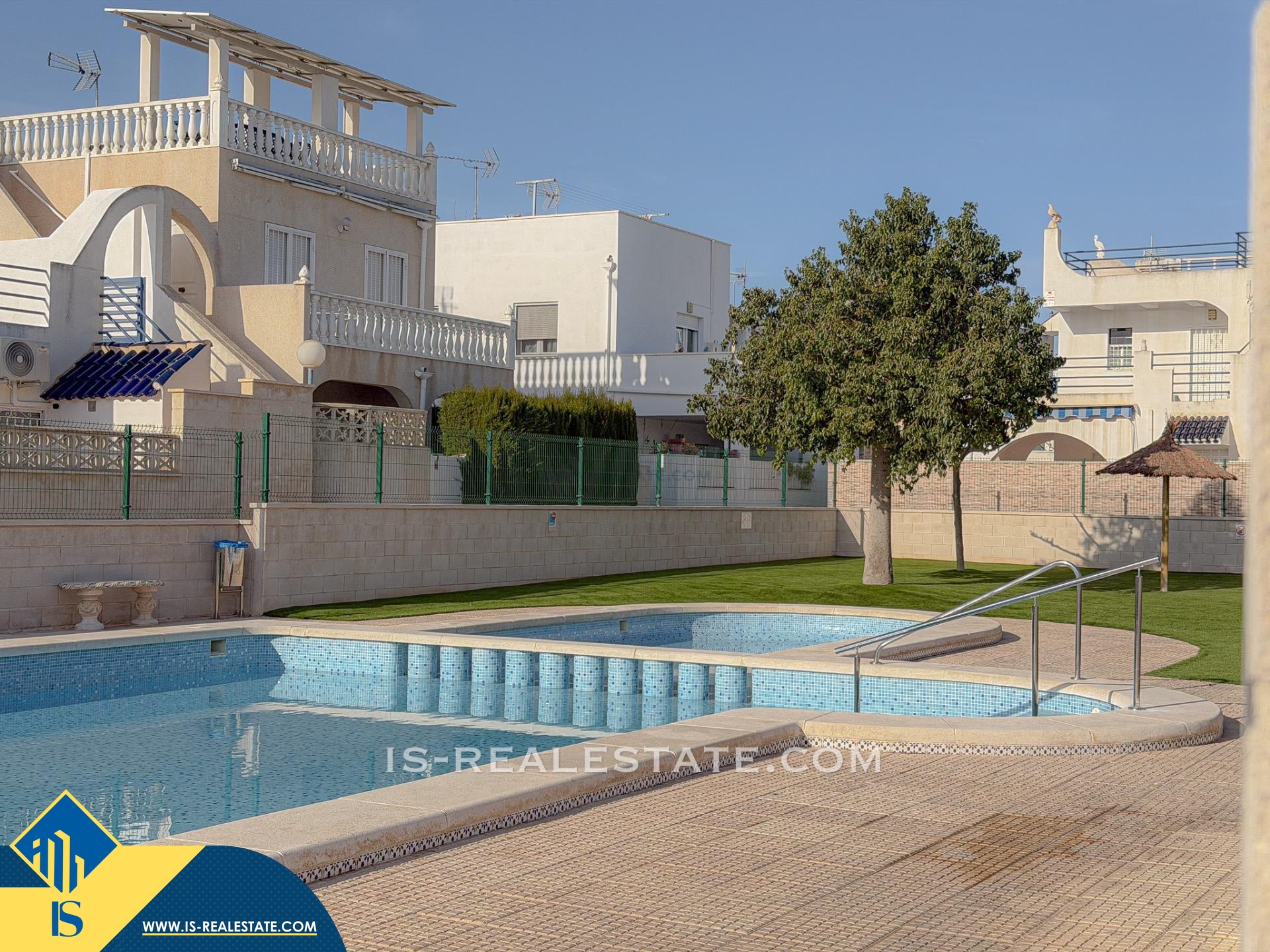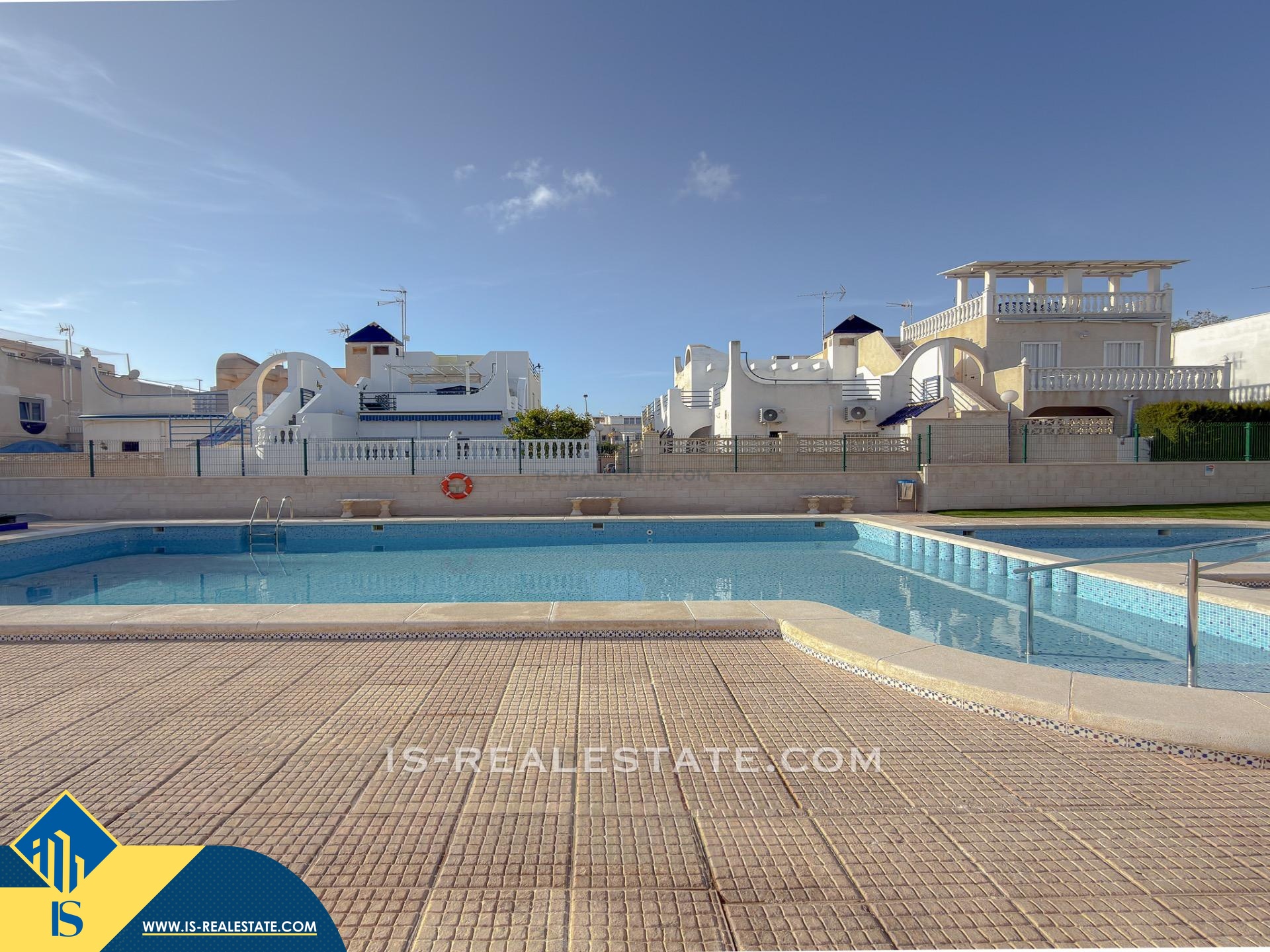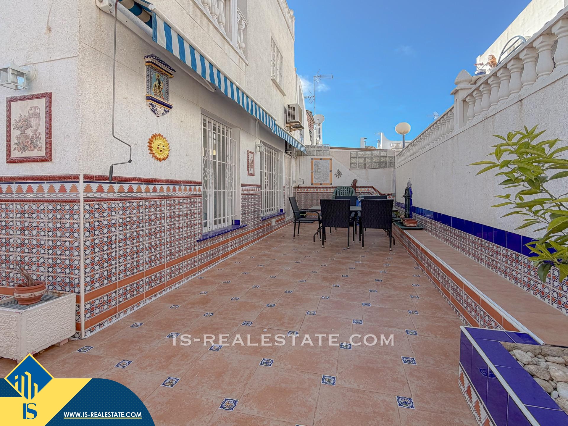 4-ių kambarių namas su bendru baseinu, Ispanijoje, Alicante provincijoje, Torrevieja mieste, Torreta rajone, bendras plotas 70 m², 2.5 kilometrai iki jūros, 45 kilometrai iki Alicante miesto oro uosto. Turtui priklauso bendras baseinas, terasa, privatus kiemas. Netoli turto yra parduotuvės, restoranai, autobusų stotelės, vaikų zonos, degalinės, žalios zonos, kavinės, vaistinės