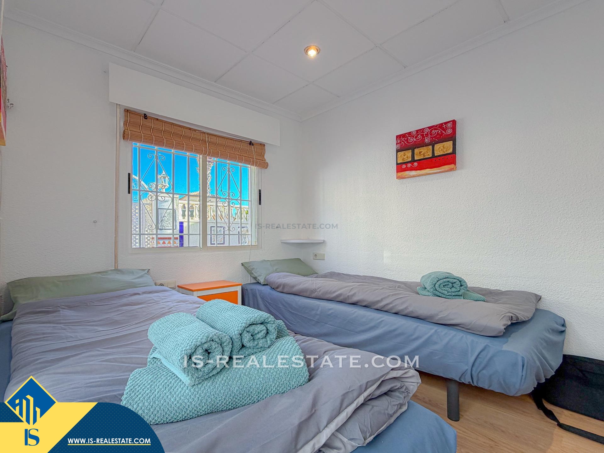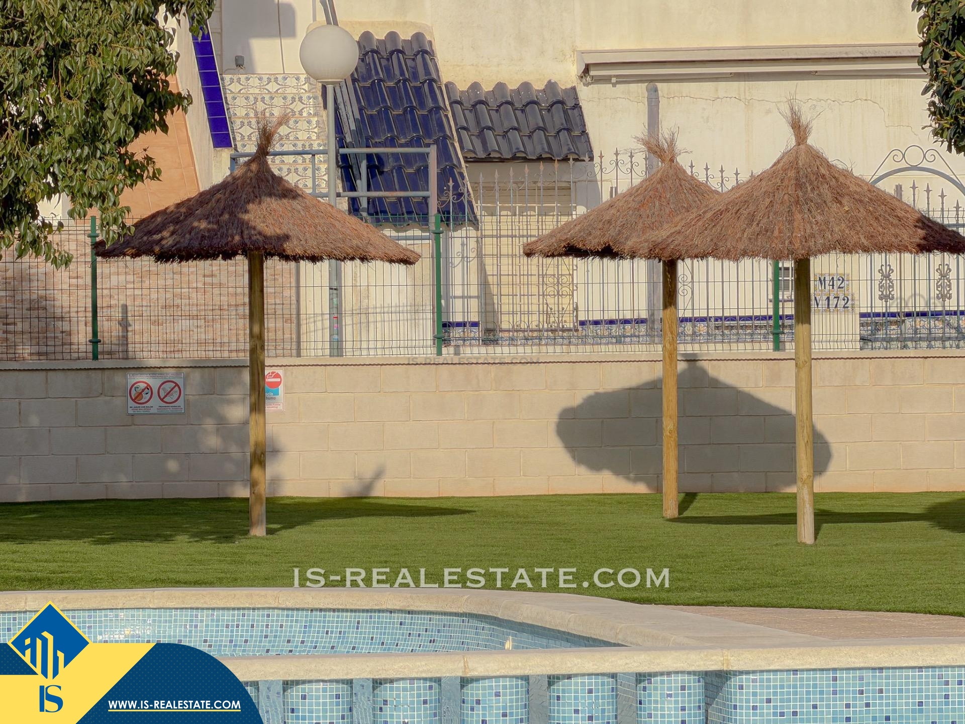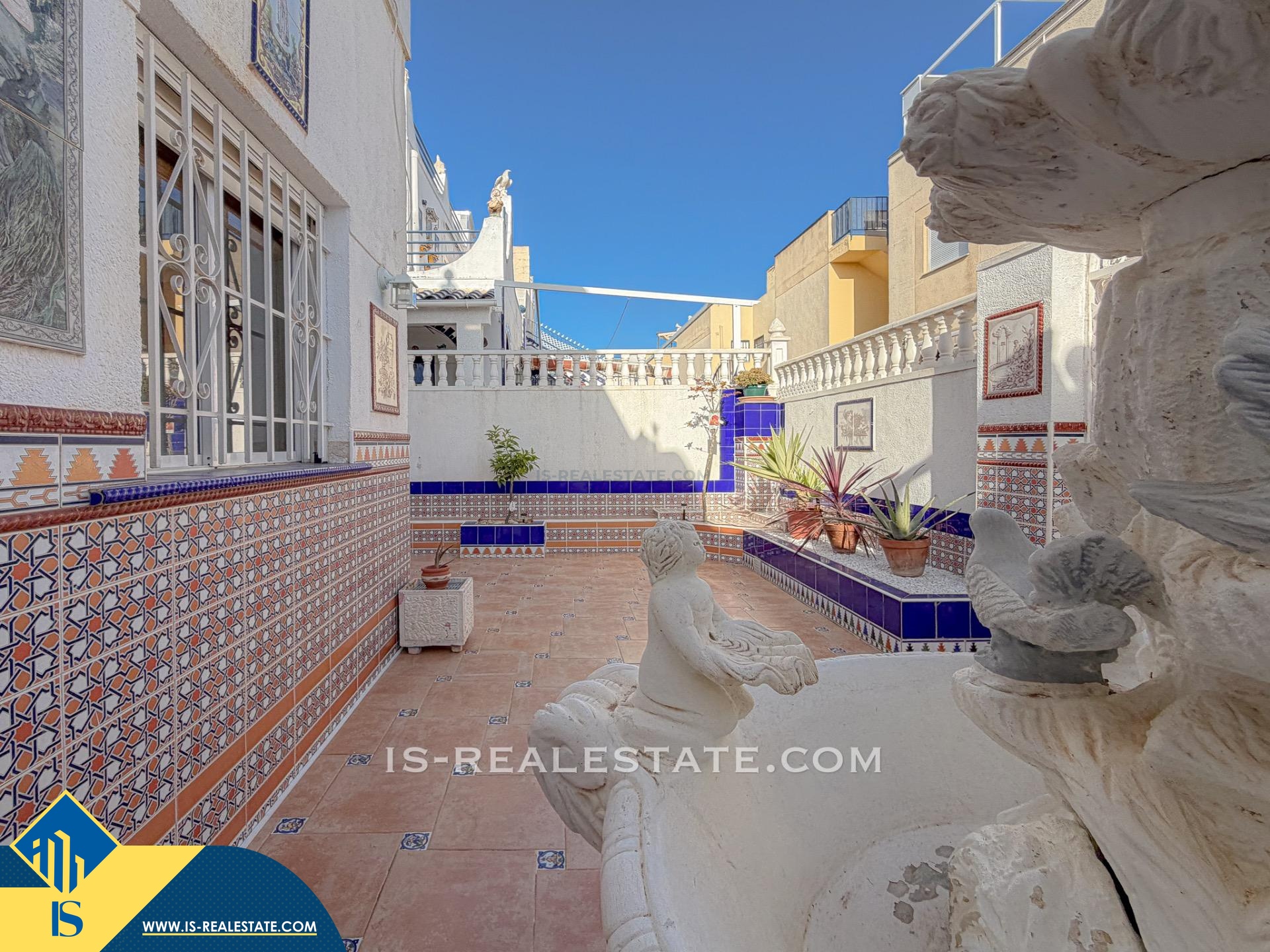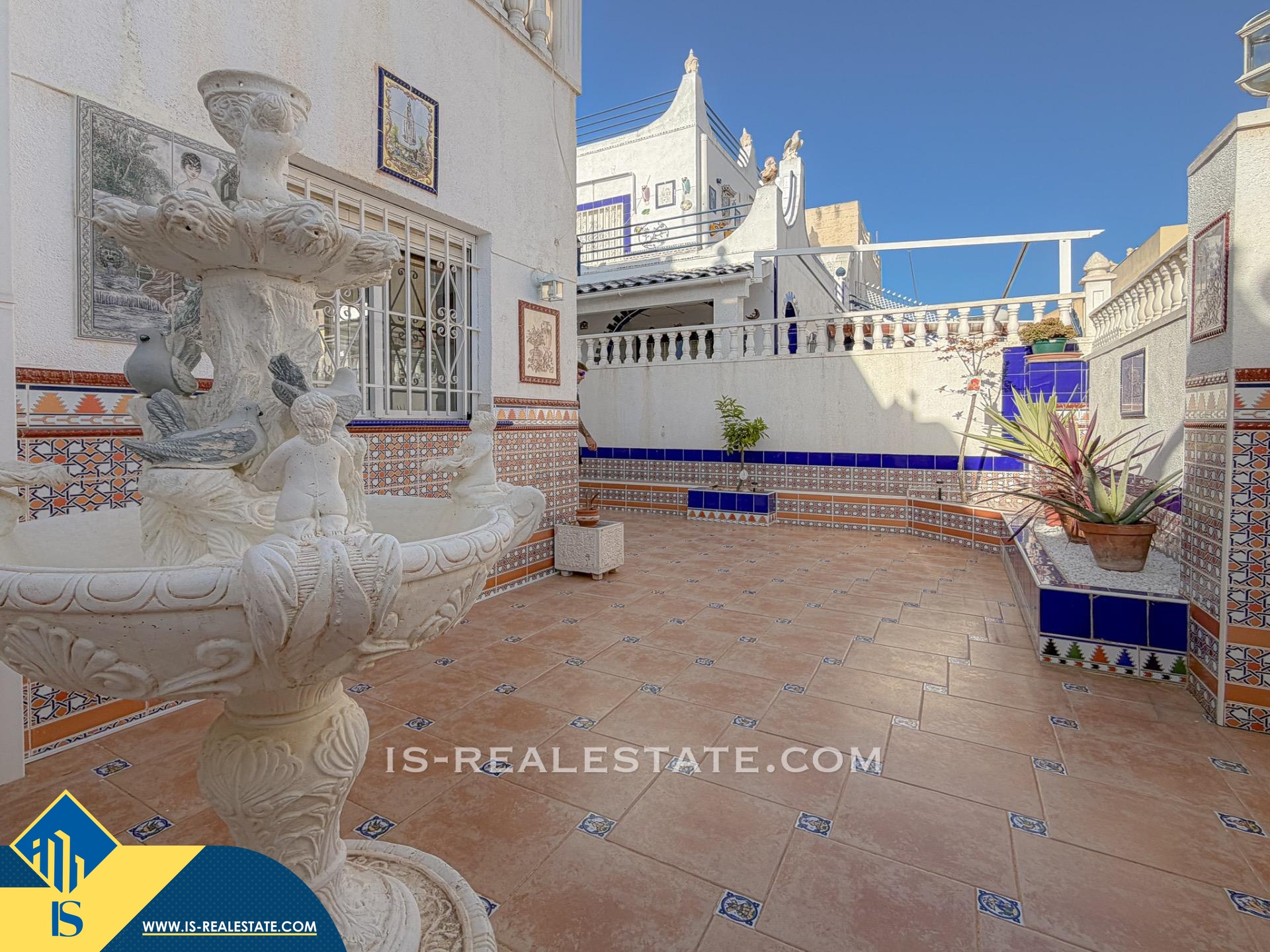 4-ių kambarių namas su bendru baseinu, Ispanijoje, Alicante provincijoje, Torrevieja mieste, Torreta rajone, bendras plotas 70 m², 2.5 kilometrai iki jūros, 45 kilometrai iki Alicante miesto oro uosto. Turtui priklauso bendras baseinas, terasa, privatus kiemas. Netoli turto yra parduotuvės, restoranai, autobusų stotelės, vaikų zonos, degalinės, žalios zonos, kavinės, vaistinės