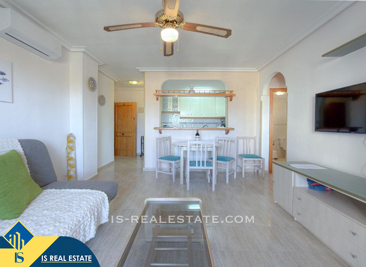 2-jų kambarių apartamentas su bendru baseinu, Ispanijoje, Alicante provincijoje, Torrevieja mieste, La Mata rajone, bendras plotas 53 m², 550 metrų iki jūros, 38 kilometrai iki Alicante oro uosto. Turtui priklauso bendras baseinas, terasa, liftas, garažas, sandėliukas. Netoli turto yra parduotuvės, restoranai, autobusų stotelės, degalinės, žalios zonos, kavinės, vaistinės
