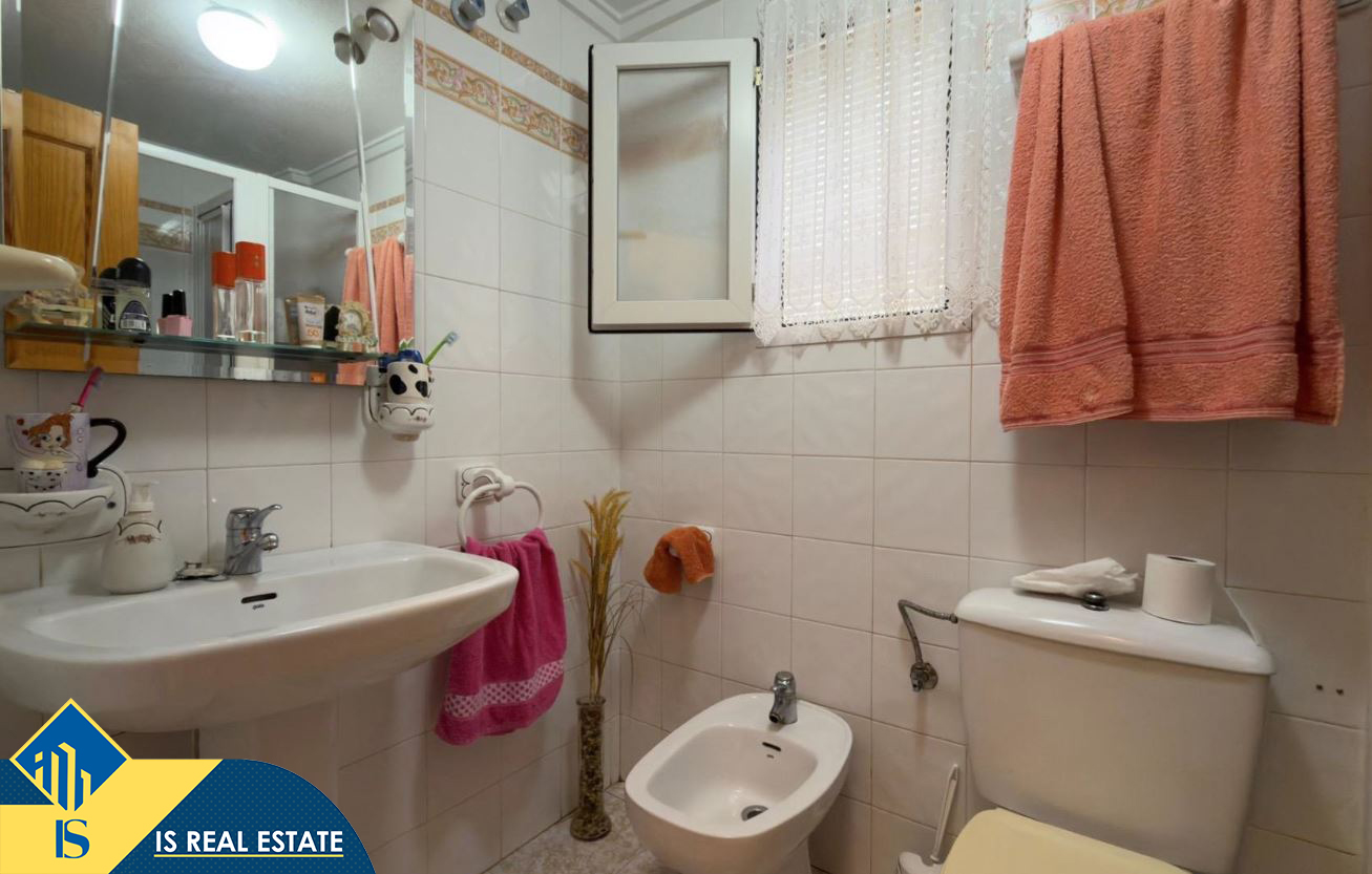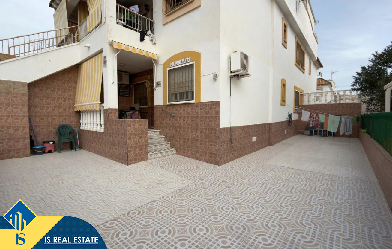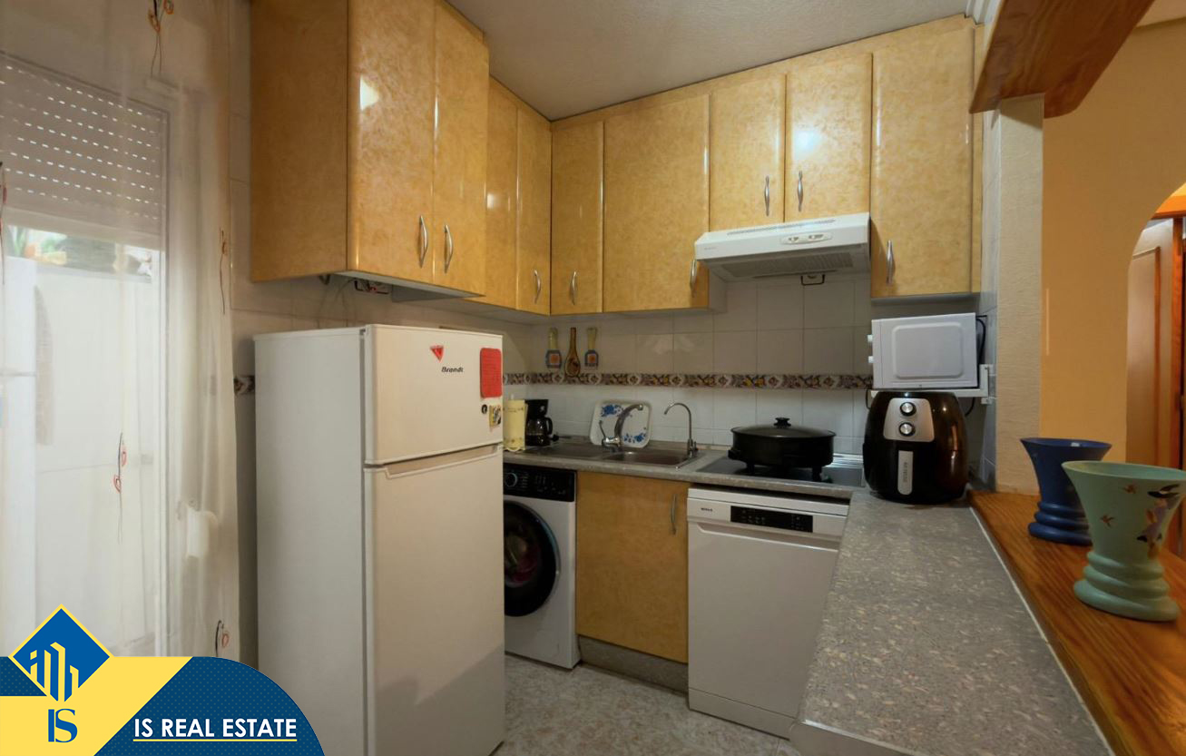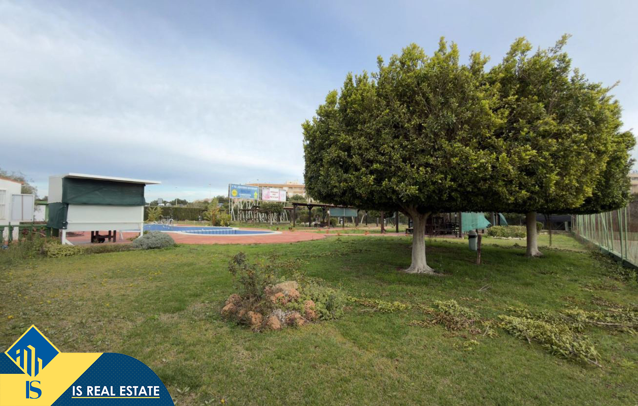 3-jų kambarių bungalas su bendru baseinu, Ispanijoje, Alicante provincijoje, Torrevieja mieste, bendras plotas 90 m², 1 kilometras iki jūros, 45 kilometrai iki Alicante oro uosto. Turtui priklauso bendras baseinas, terasa, vieta automobiliui. Netoli turto yra parduotuvės, restoranai, autobusų stotelės, vaikų zonos, degalinės, žalios zonos, kavinės