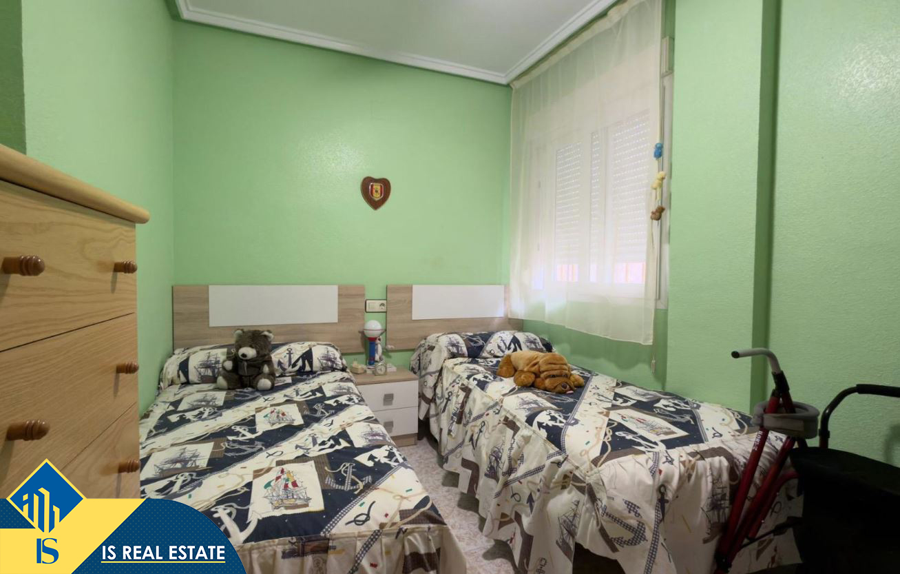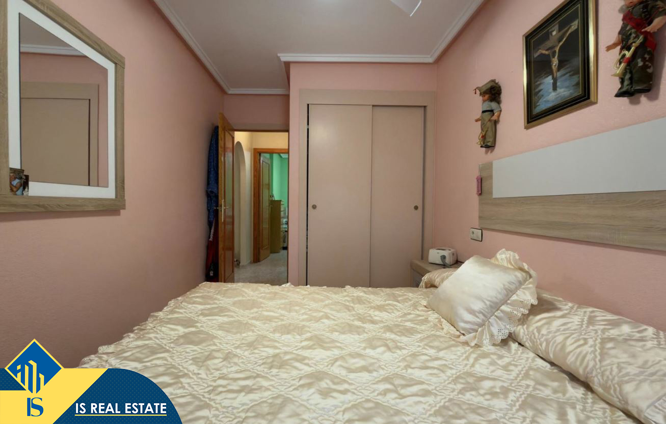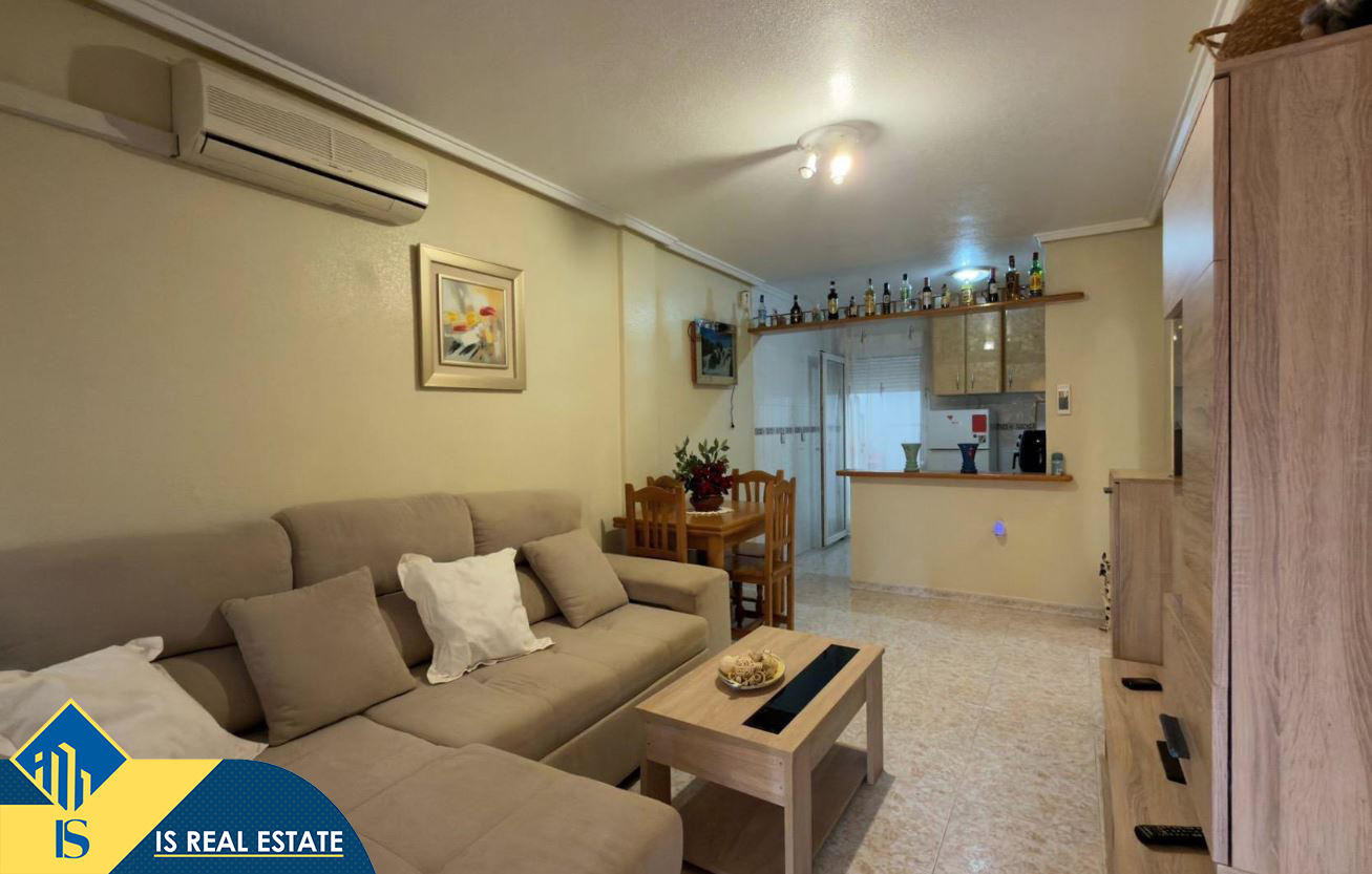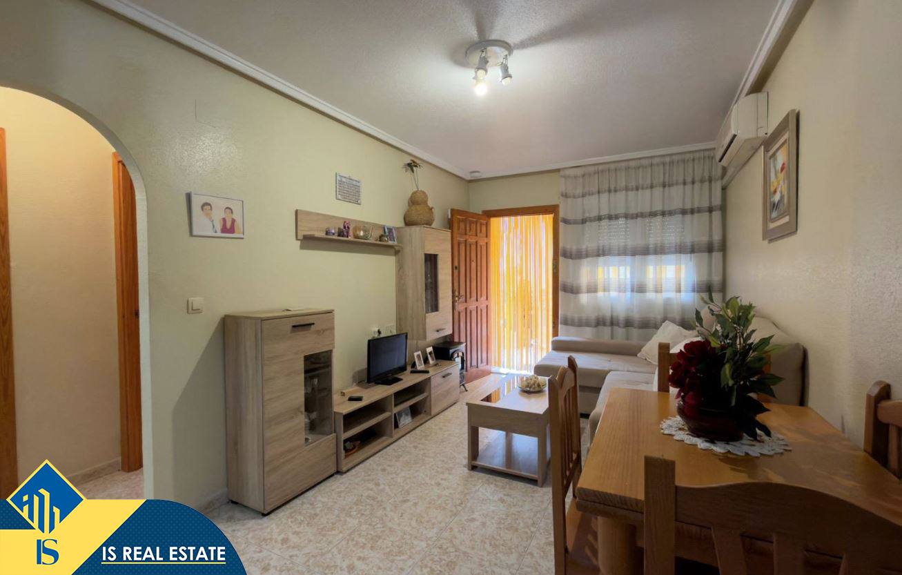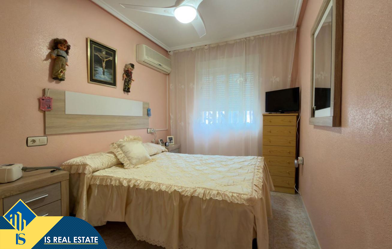 3-jų kambarių bungalas su bendru baseinu, Ispanijoje, Alicante provincijoje, Torrevieja mieste, bendras plotas 90 m², 1 kilometras iki jūros, 45 kilometrai iki Alicante oro uosto. Turtui priklauso bendras baseinas, terasa, vieta automobiliui. Netoli turto yra parduotuvės, restoranai, autobusų stotelės, vaikų zonos, degalinės, žalios zonos, kavinės