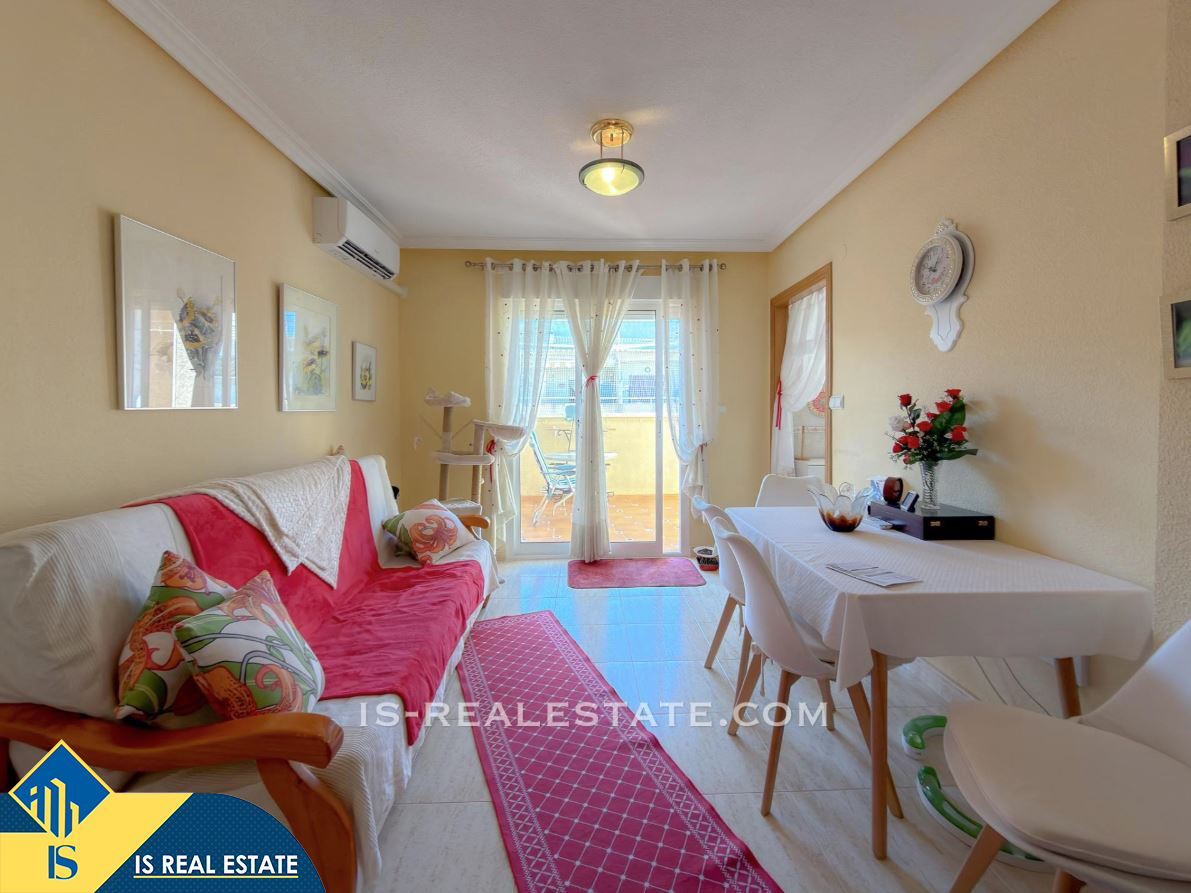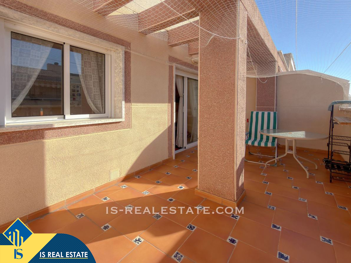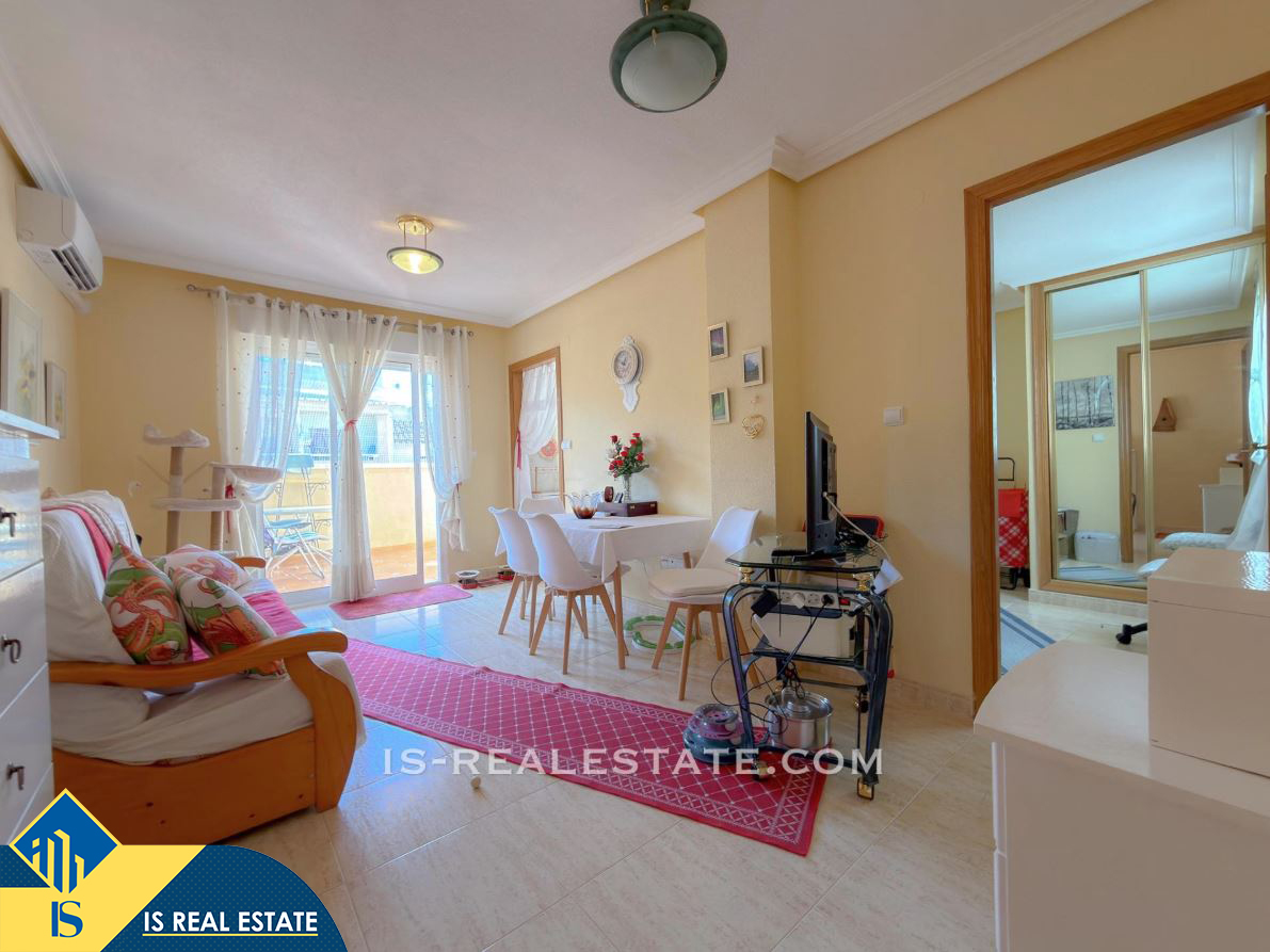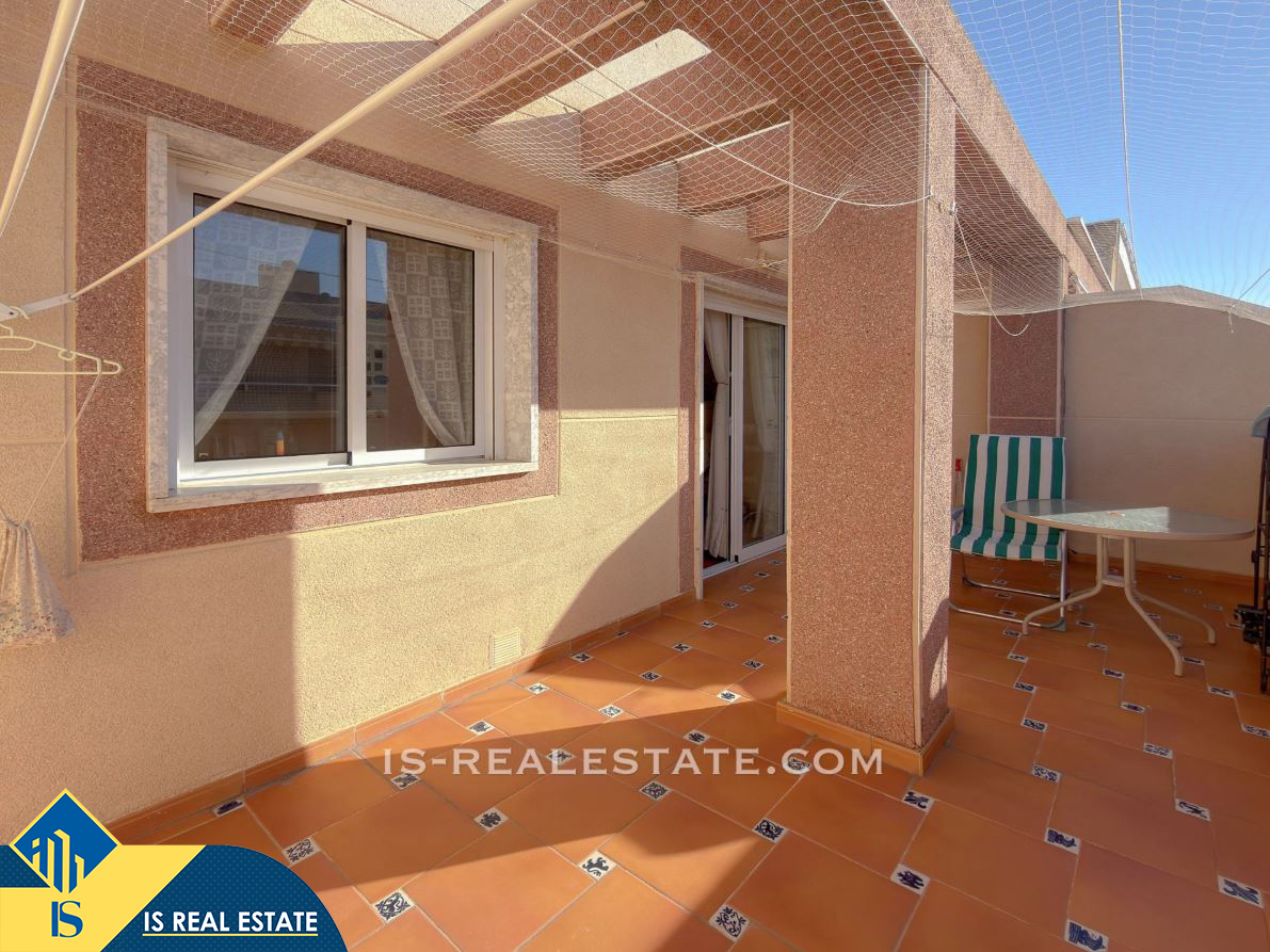 3-jų kambarių penthouse apartamentas su terasa, Ispanijoje, Alicante provincijoje, Torrevieja mieste, bendras plotas 61 m², 700 metrų iki jūros, 45 kilometrai iki Alicante oro uosto. Turtui priklauso terasa, liftas. Netoli turto yra parduotuvės, restoranai, vaistinės, autobusų stotelės, degalinės, žalios zonos, kavinės