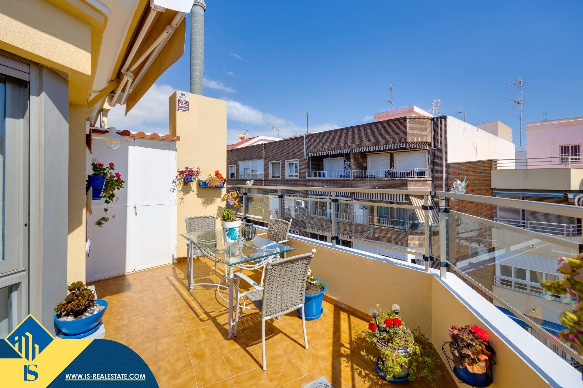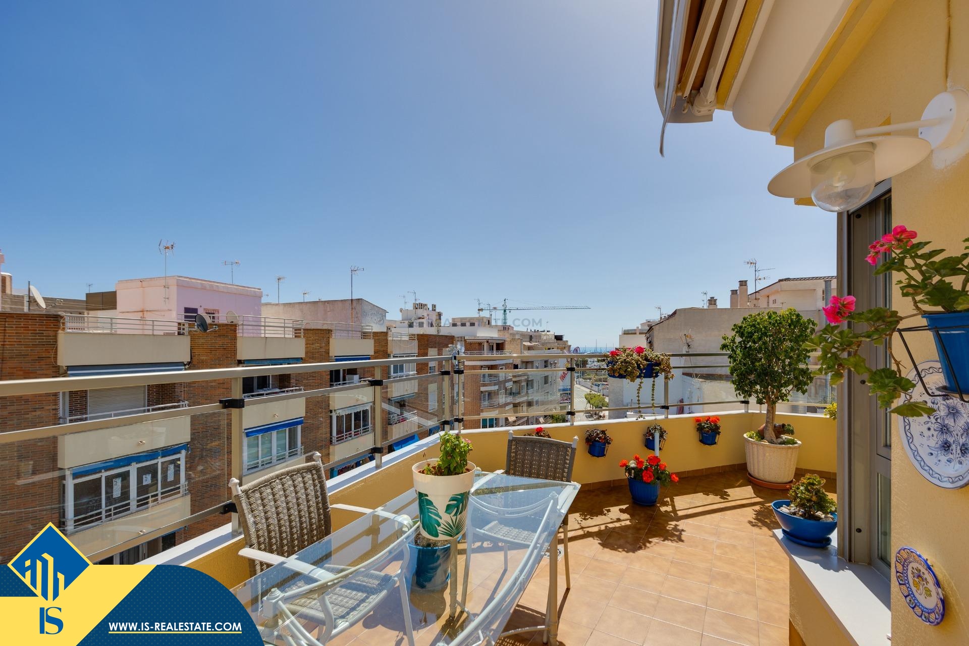 3-jų kambarių penthouse apartamentas su terasa, Ispanijoje, Alicante provincijoje, Torrevieja mieste, Playa del Cura rajone, bendras plotas 82 m², 300 metrų iki jūros, 45 kilometrai iki Alicante oro uosto. Turtui priklauso terasa, soliariumas. Netoli turto yra parduotuvės, restoranai, autobusų stotelės, degalinės, žalios zonos, kavinės, vaistinės