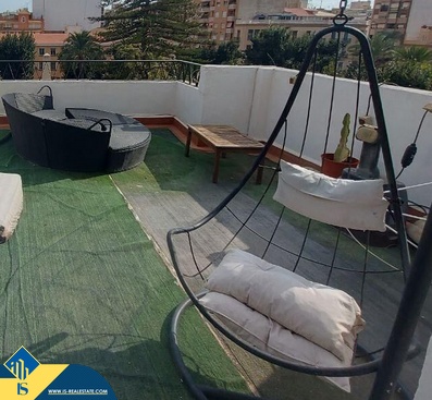 4-ių kambarių penthouse apartamentas su terasa, Ispanijoje, Alicante provincijoje, Alicante mieste, bendras plotas 156 m², 800 metrų iki jūros, 18 kilometrų iki Alicante oro uosto. Turtui priklauso terasa, liftas, vieta automobiliui, soliariumas. Netoli turto yra parduotuvės, restoranai, vaistinės, autobusų stotelės, degalinės, žalios zonos, kavinės