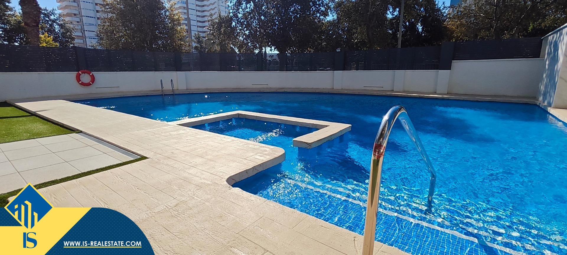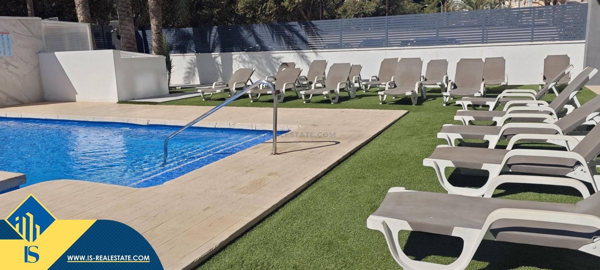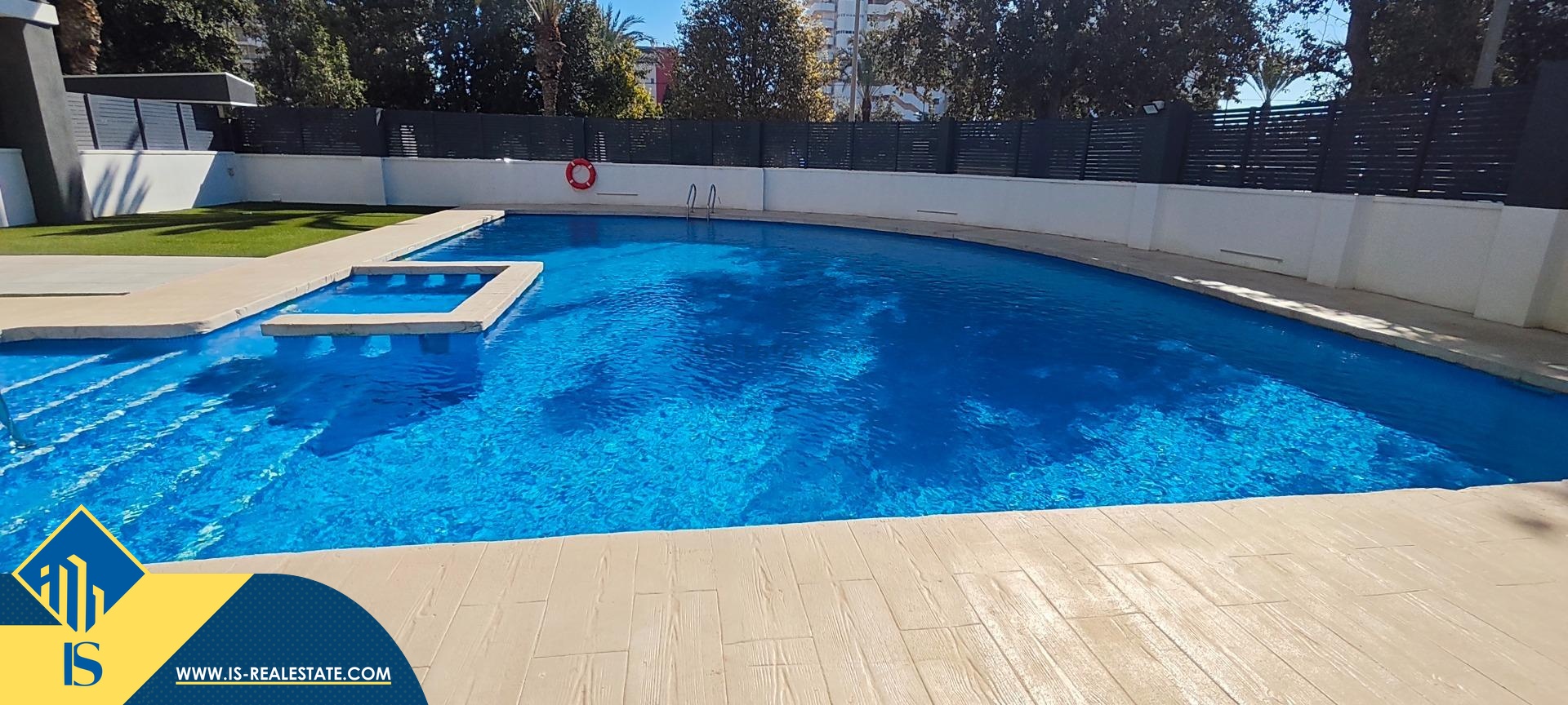 3-jų kambarių renovuotas apartamentas su bendru baseinu, Ispanijoje, Alicante provincijoje, Alicante mieste, bendras plotas 55 m², 600 metrų iki jūros, 7 kilometrai iki Alicante oro uosto. Turtui priklauso bendras baseinas, terasa, liftas. Netoli turto yra parduotuvės, restoranai, vaistinės, autobusų stotelės, degalinės, žalios zonos, kavinės