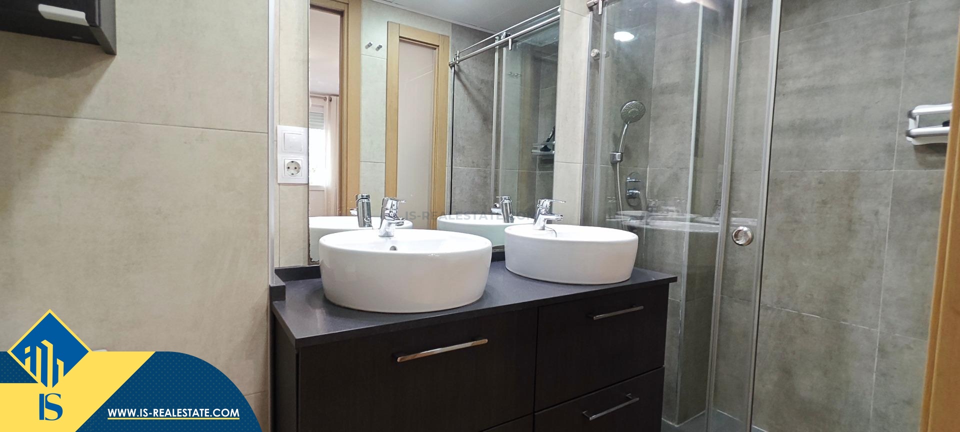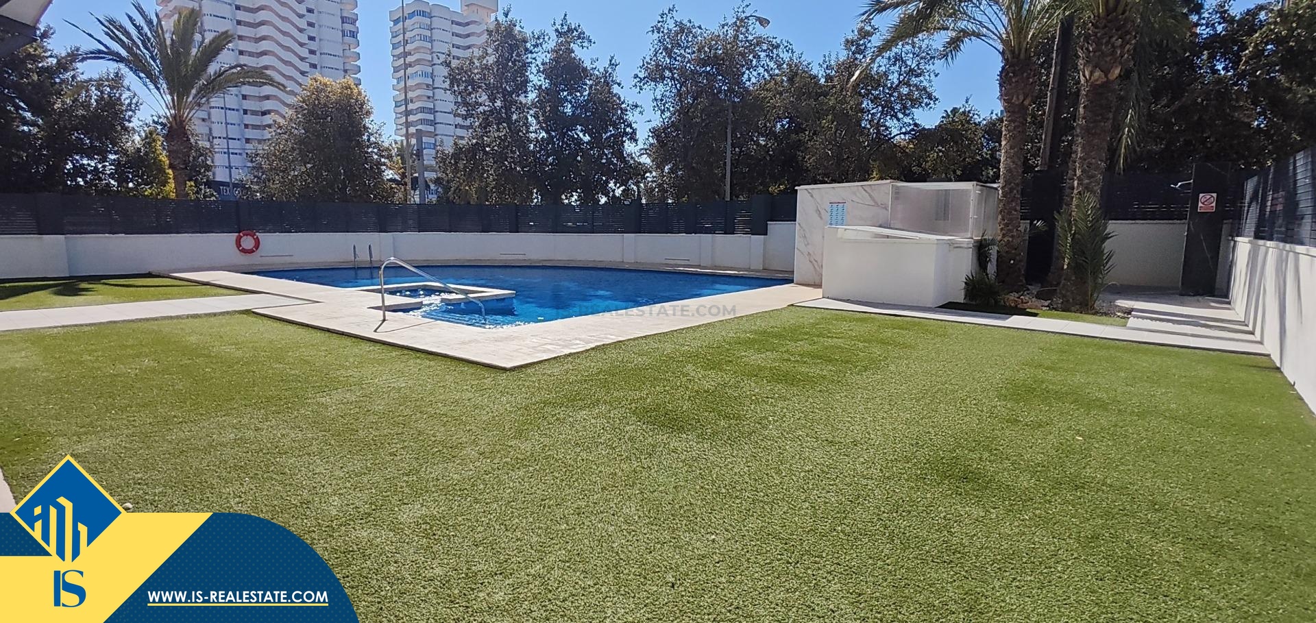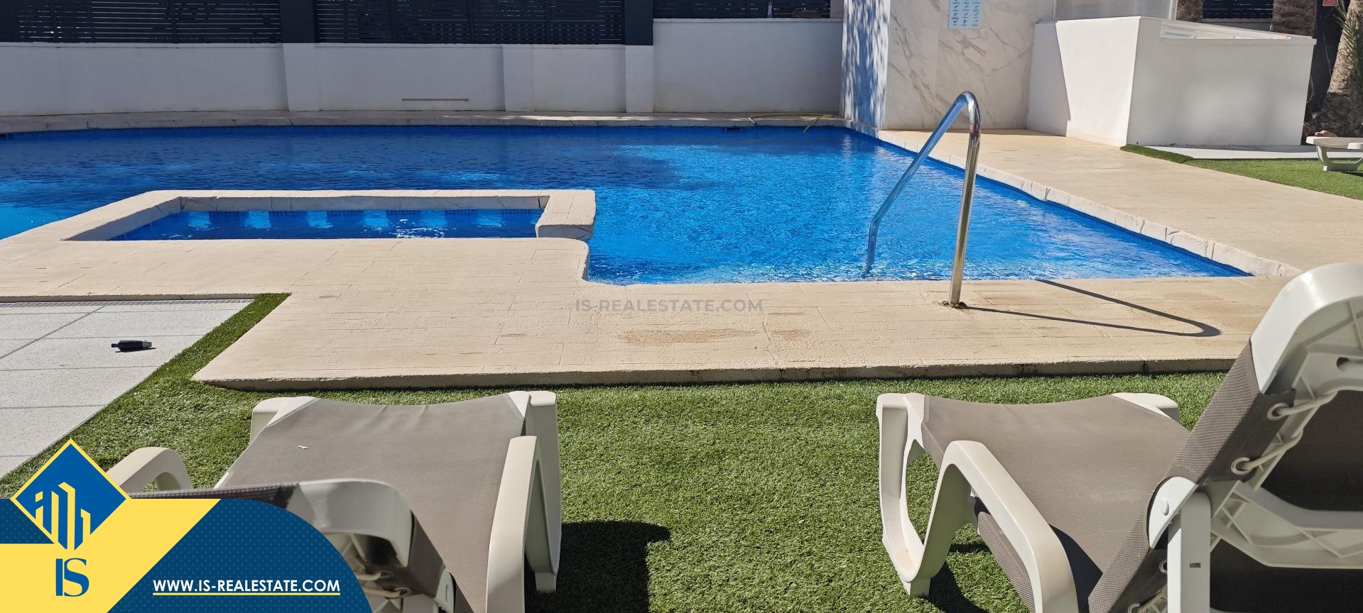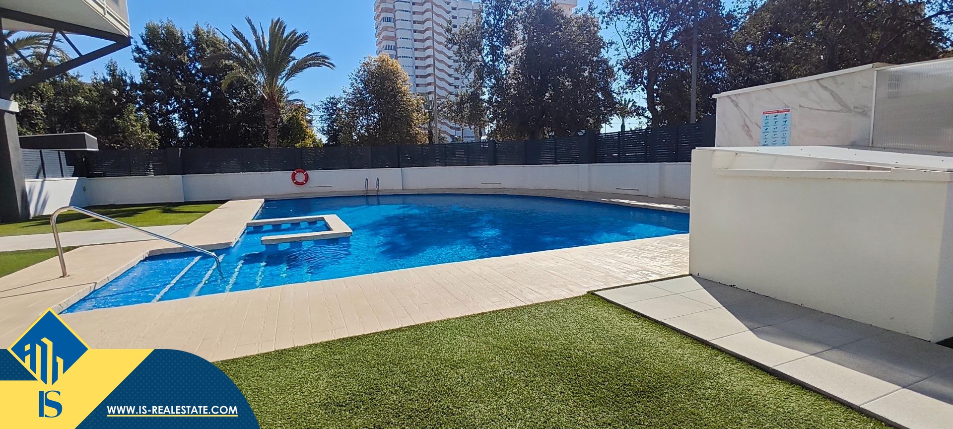 3-jų kambarių renovuotas apartamentas su bendru baseinu, Ispanijoje, Alicante provincijoje, Alicante mieste, bendras plotas 55 m², 600 metrų iki jūros, 7 kilometrai iki Alicante oro uosto. Turtui priklauso bendras baseinas, terasa, liftas. Netoli turto yra parduotuvės, restoranai, vaistinės, autobusų stotelės, degalinės, žalios zonos, kavinės
