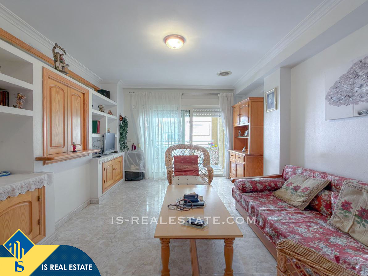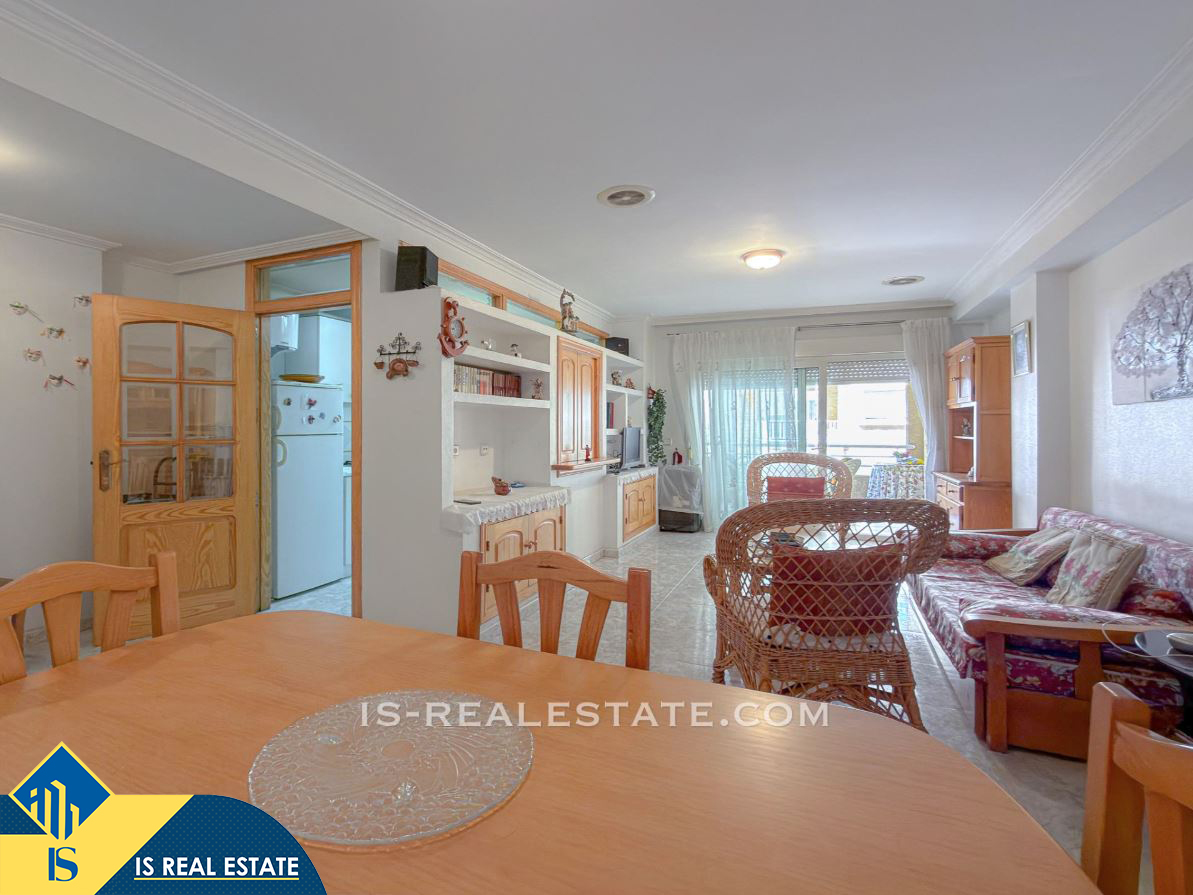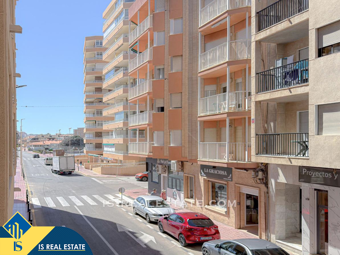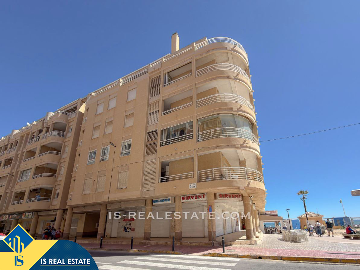 3-jų kambarių apartamentas su terasa, Ispanijoje, Alicante provincijoje, Torrevieja mieste, La Mata rajone, bendras plotas 77 m², 50 metrų iki jūros, 38 kilometrai iki Alicante oro uosto. Turtui priklauso terasa, liftas. Netoli turto yra parduotuvės, restoranai, autobusų stotelės, degalinės, žalios zonos, kavinės, vaistinės