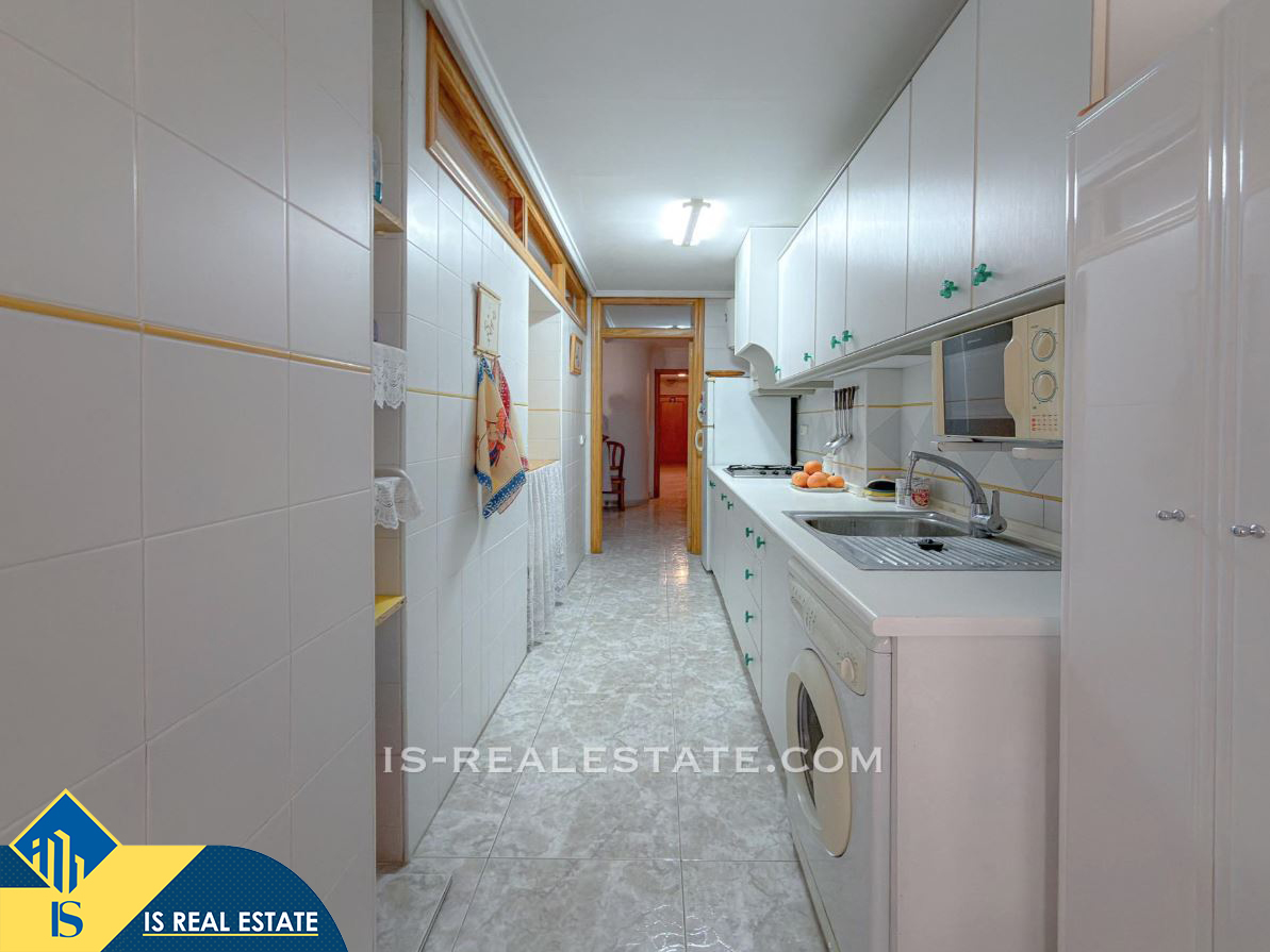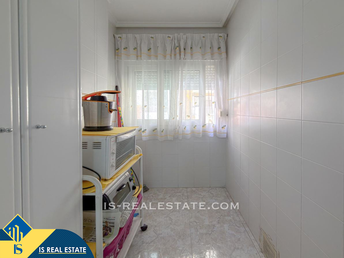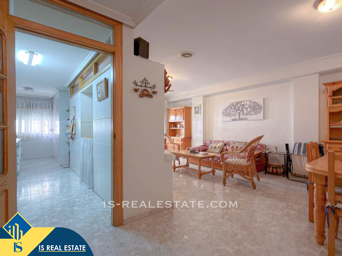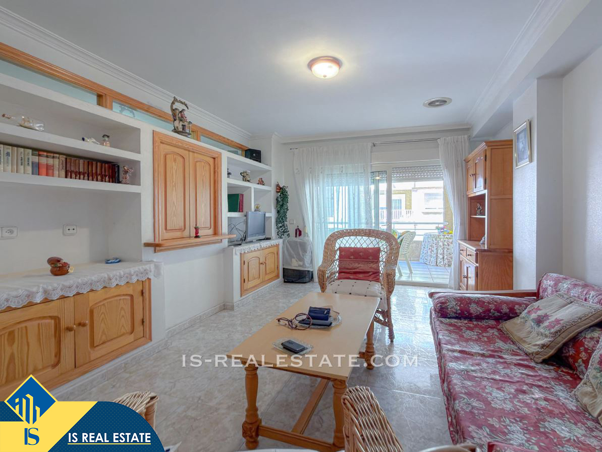3-jų kambarių apartamentas su terasa, Ispanijoje, Alicante provincijoje, Torrevieja mieste, La Mata rajone, bendras plotas 77 m², 50 metrų iki jūros, 38 kilometrai iki Alicante oro uosto. Turtui priklauso terasa, liftas. Netoli turto yra parduotuvės, restoranai, autobusų stotelės, degalinės, žalios zonos, kavinės, vaistinės