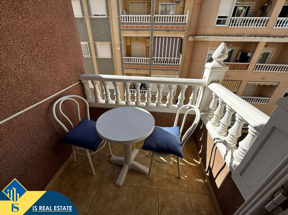3-jų kambarių apartamentas su terasa, Ispanijoje, Alicante provincijoje, Torrevieja mieste, Playa del Cura rajone, bendras plotas 55 m², 750 metrų iki jūros, 45 kilometrai iki Alicante oro uosto. Turtui priklauso terasa, garažas, sandėliukas. Netoli turto yra parduotuvės, restoranai, vaistinės, autobusų stotelės, degalinės, žalios zonos, kavinės, Habaneras alėja