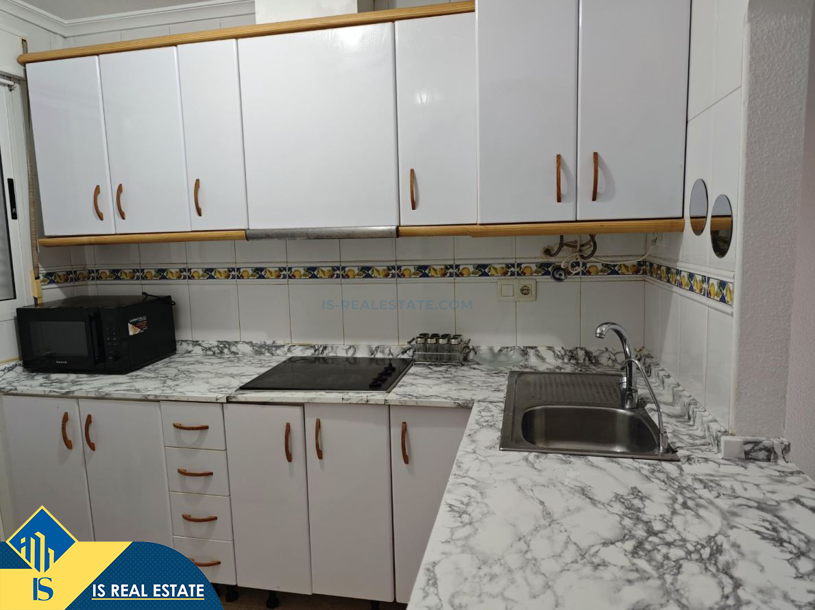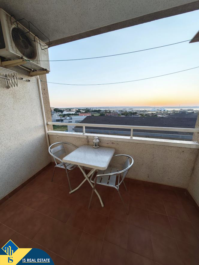 3-jų kambarių apartamentas su terasa, Ispanijoje, Alicante provincijoje, Torrevieja mieste, bendras plotas 65 m², 600 metrų iki jūros, 45 kilometrai iki Alicante oro uosto. Turtui priklauso terasa, liftas. Netoli turto yra parduotuvės, restoranai, vaistinės, autobusų stotelės, degalinės, žalios zonos, kavinės
